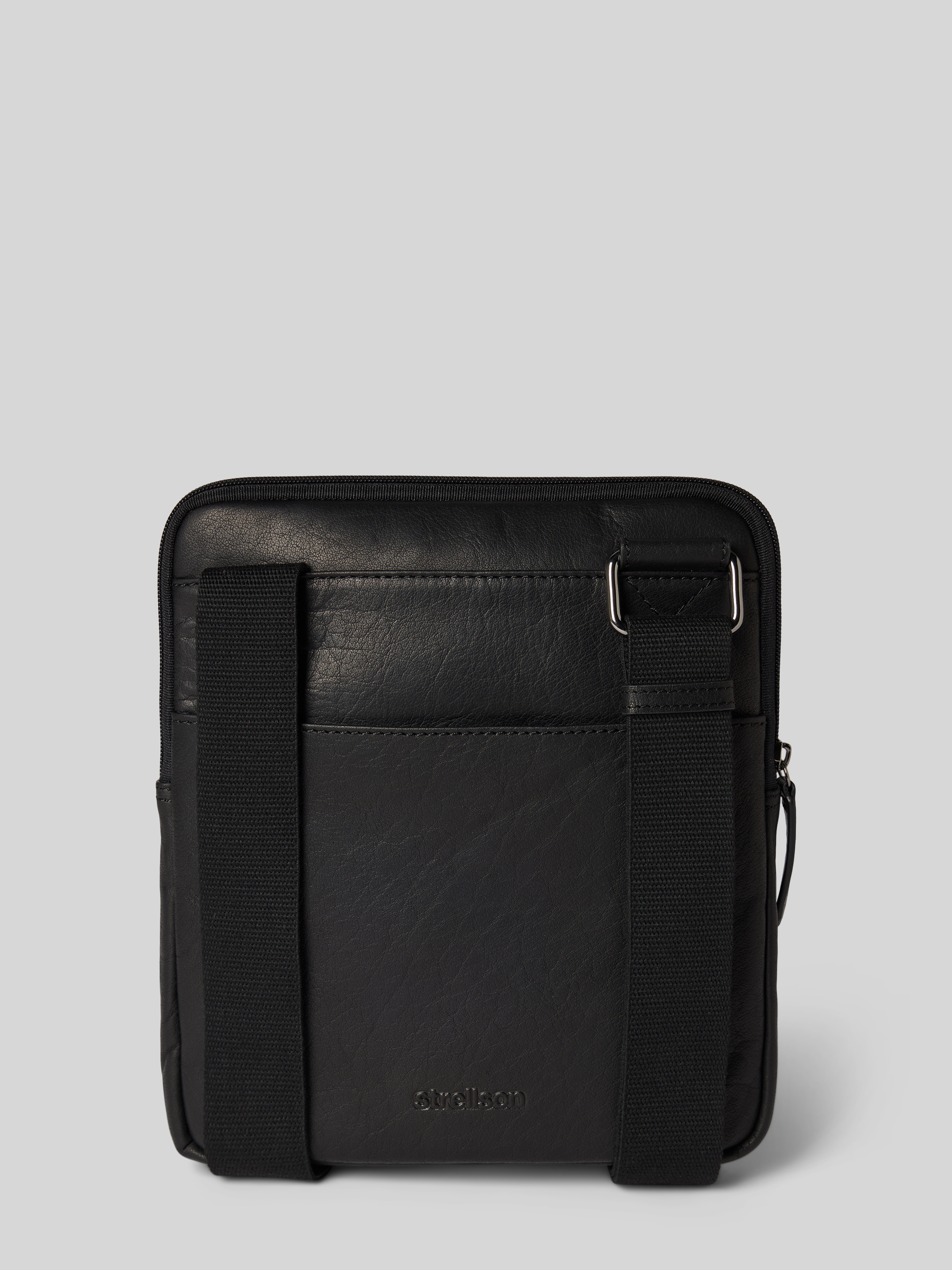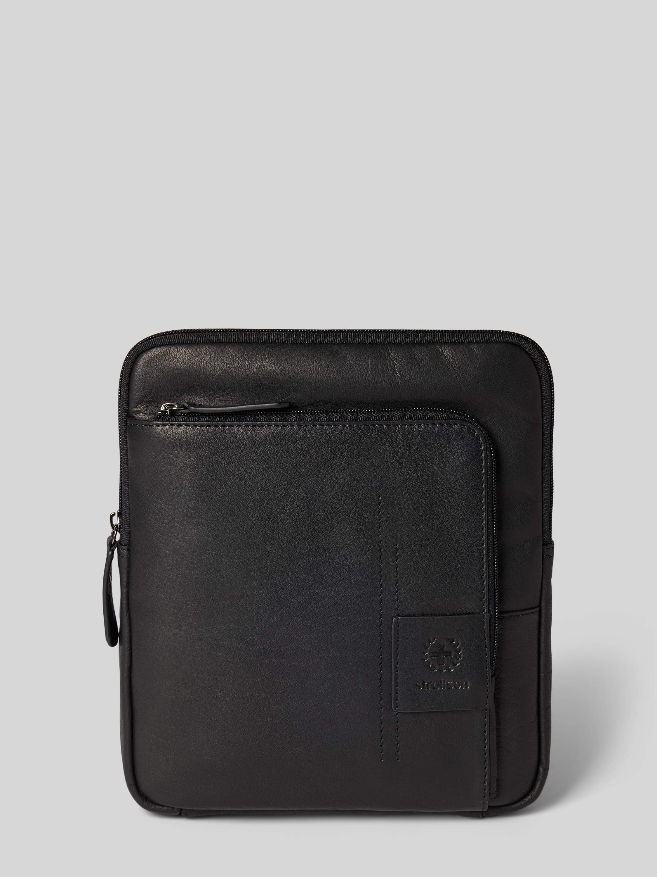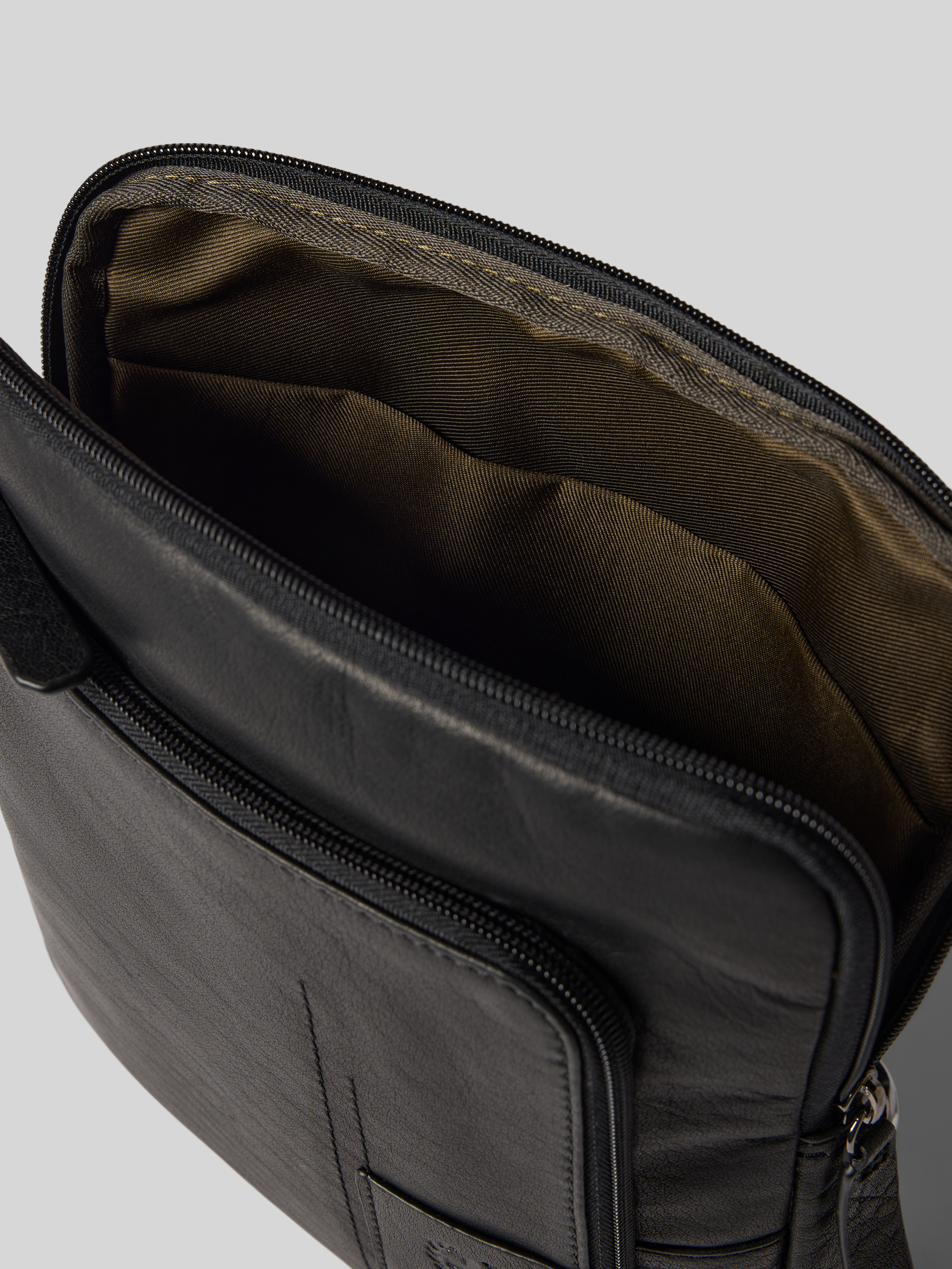 Schoudertas van echt leer, model 'BRIAN' in zwart
