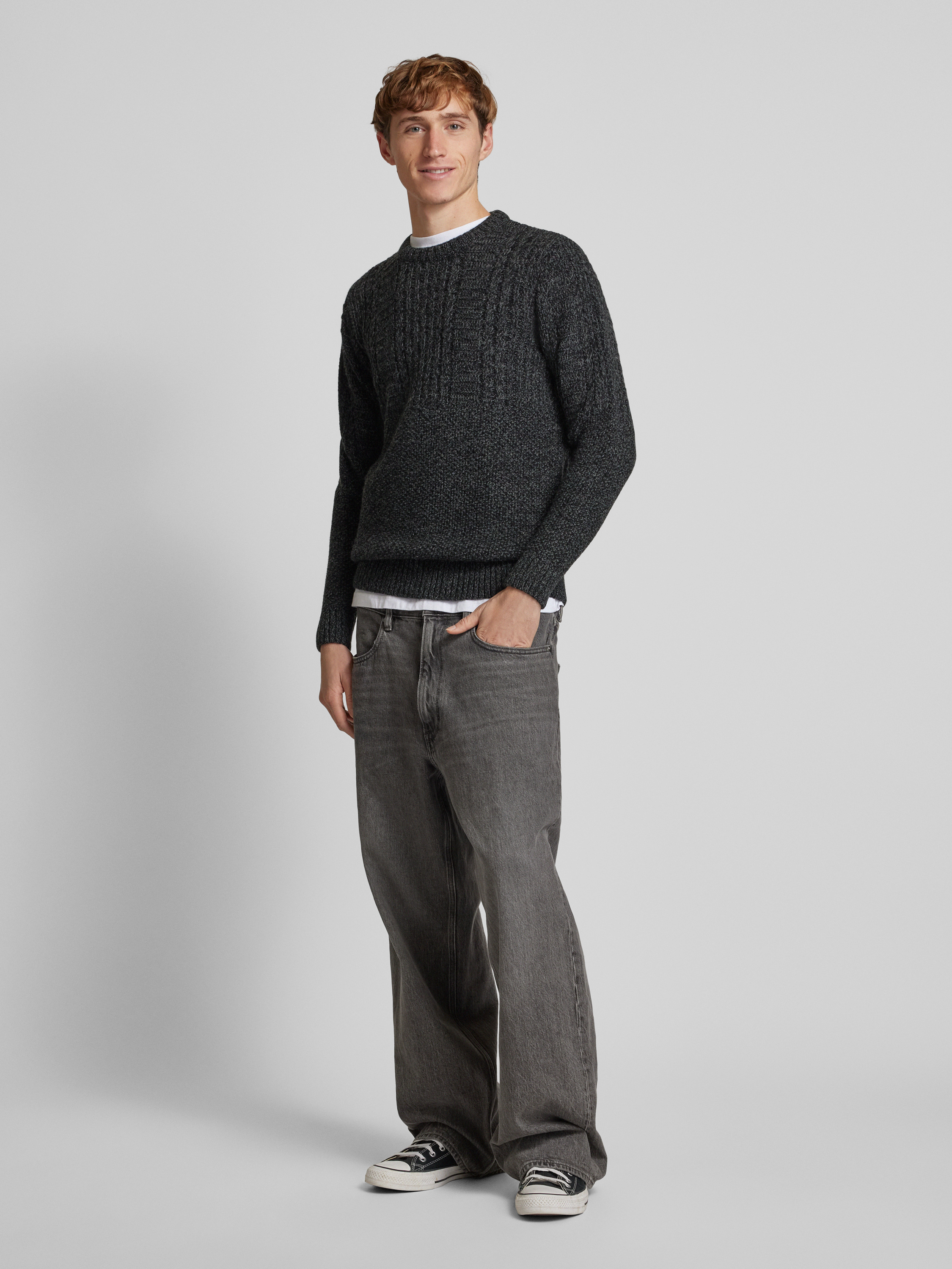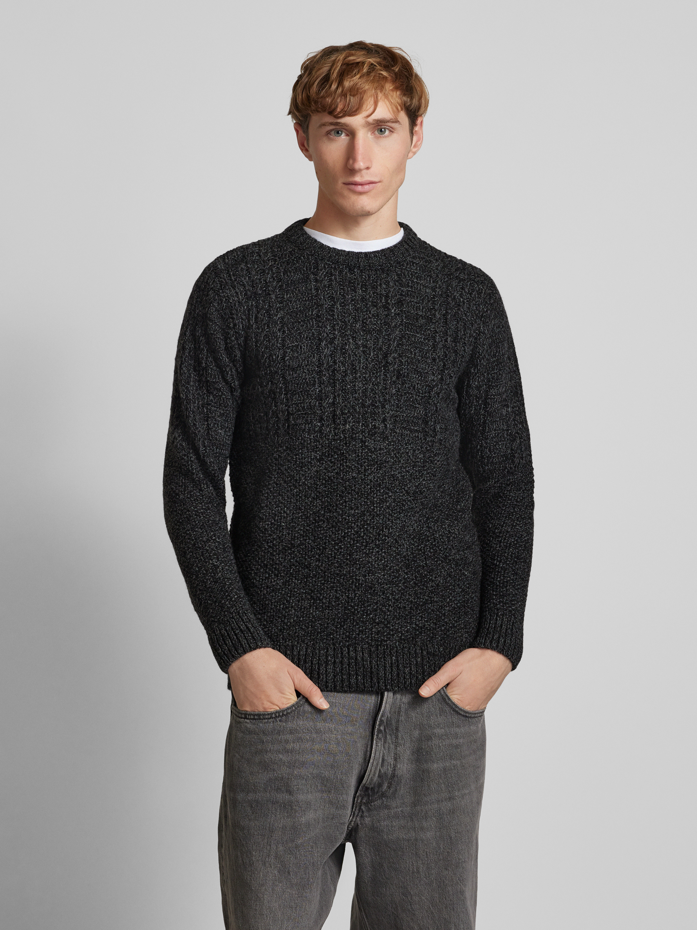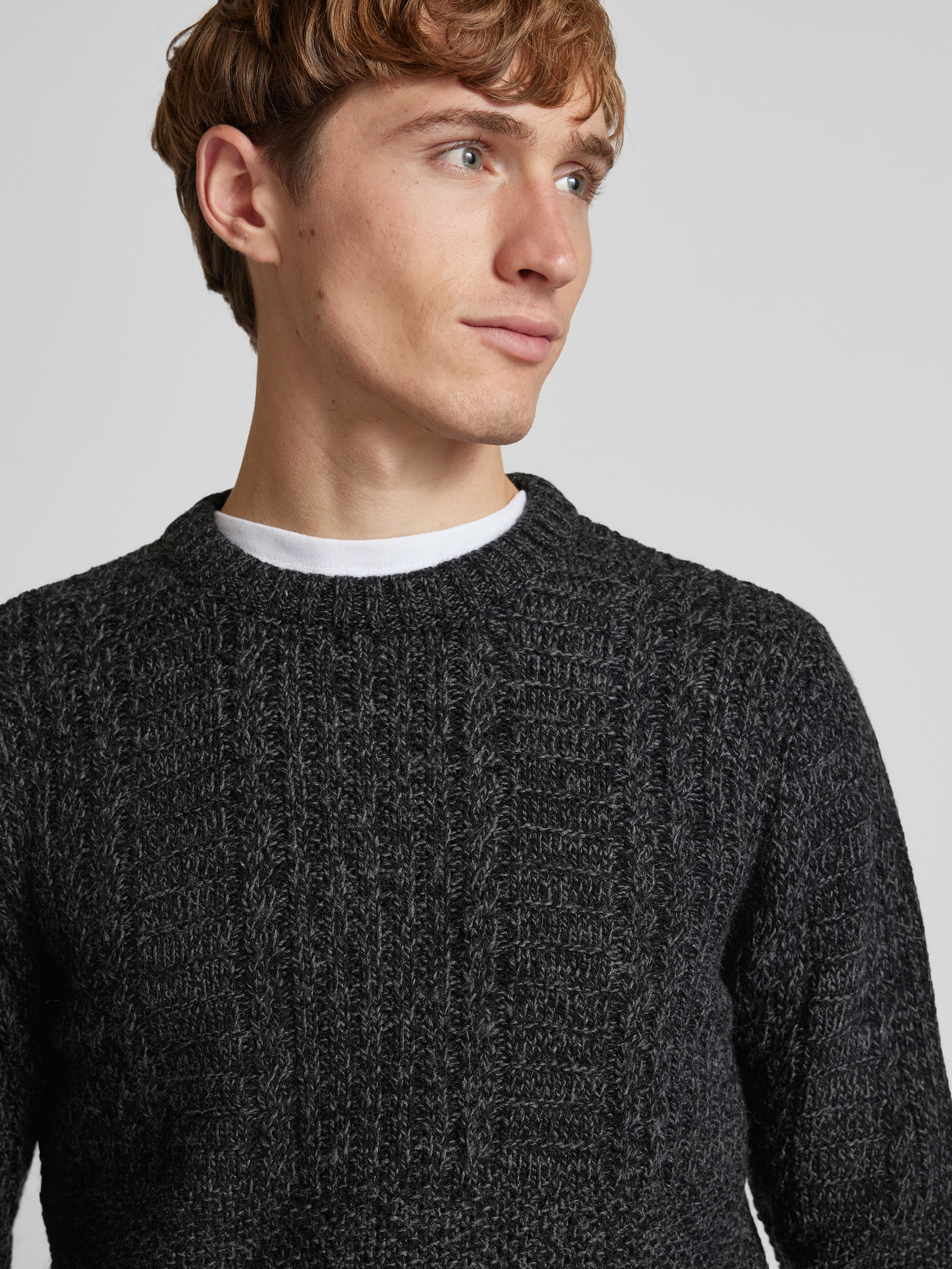 Gebreide pullover met kabelpatroon, model 'Jacob' in antraciet