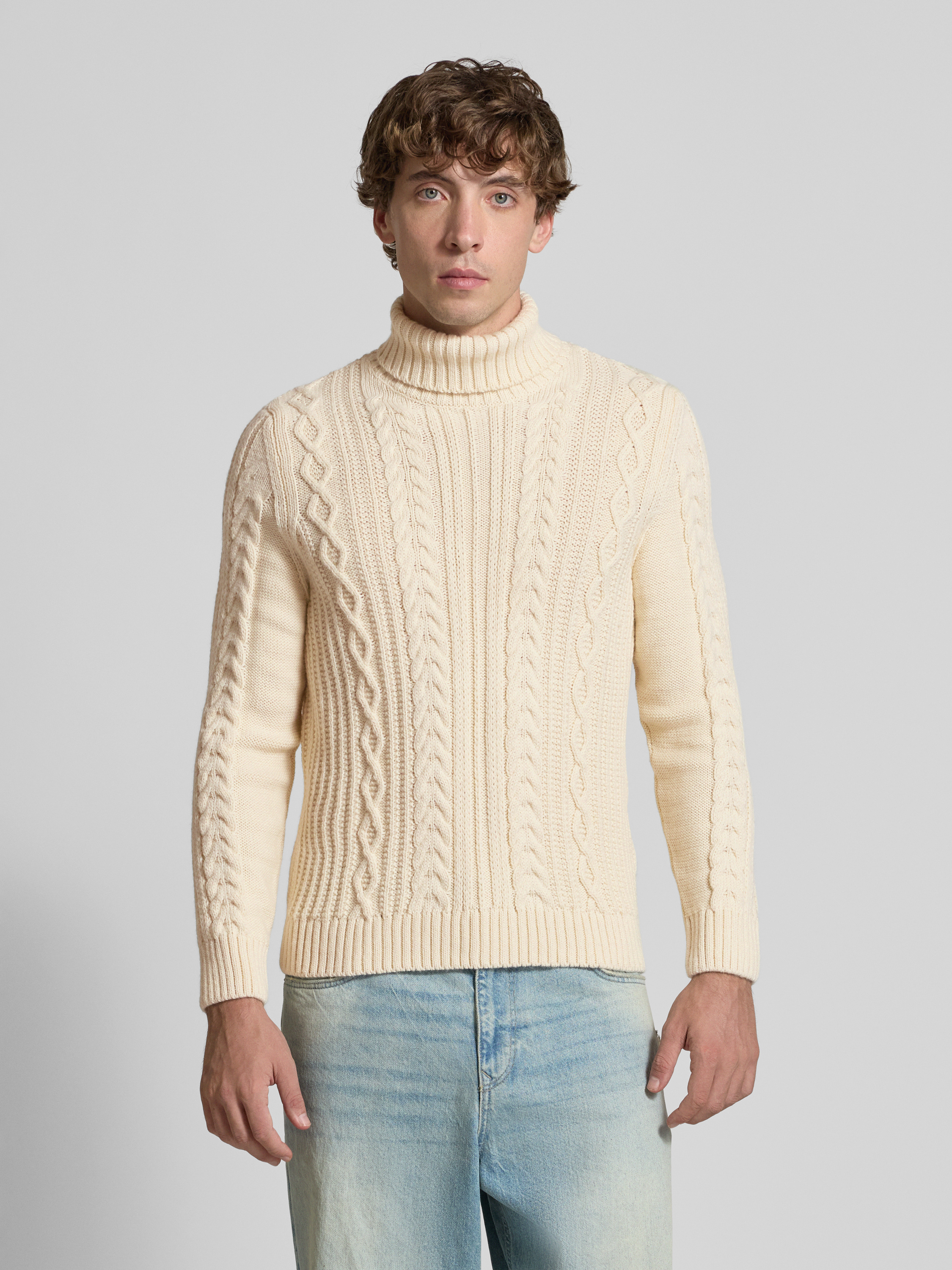 Gebreide pullover met kabelpatroon, model 'Jacob' in offwhite