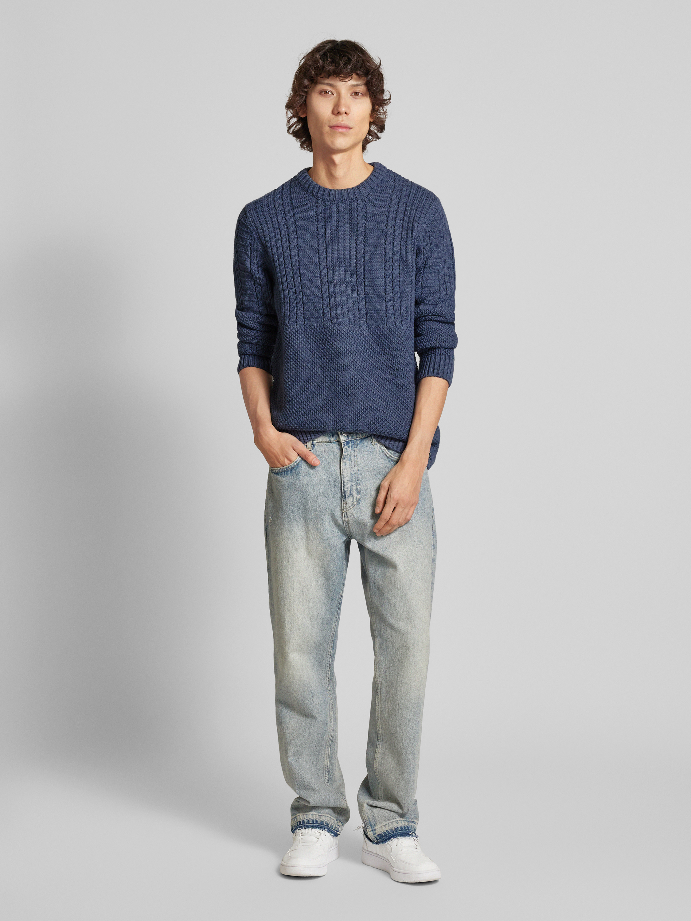 Gebreide pullover met kabelpatroon, model 'Jacob' in zwart