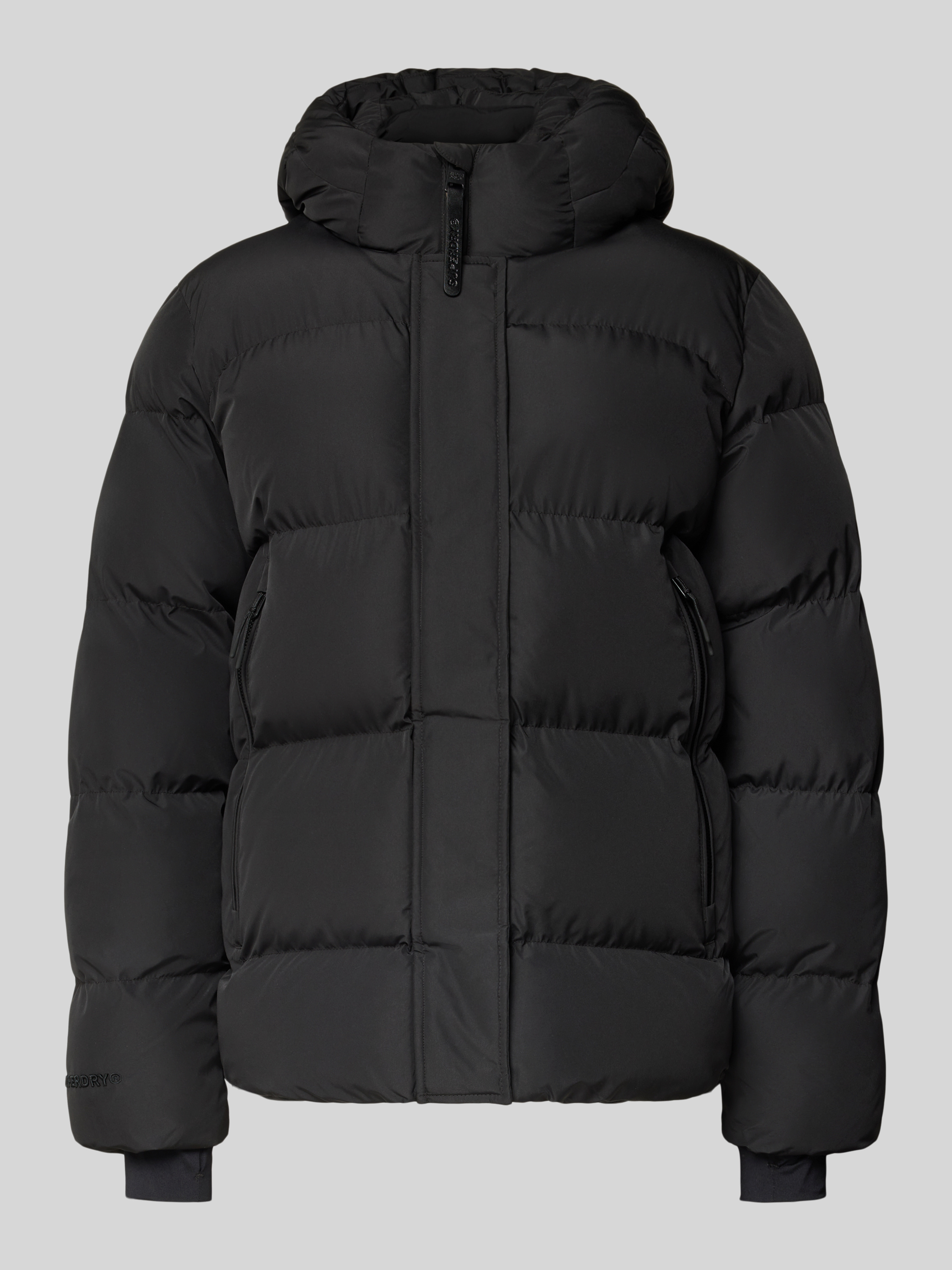 Gewatteerd jack met blinde ritssluiting en capuchon in zwart