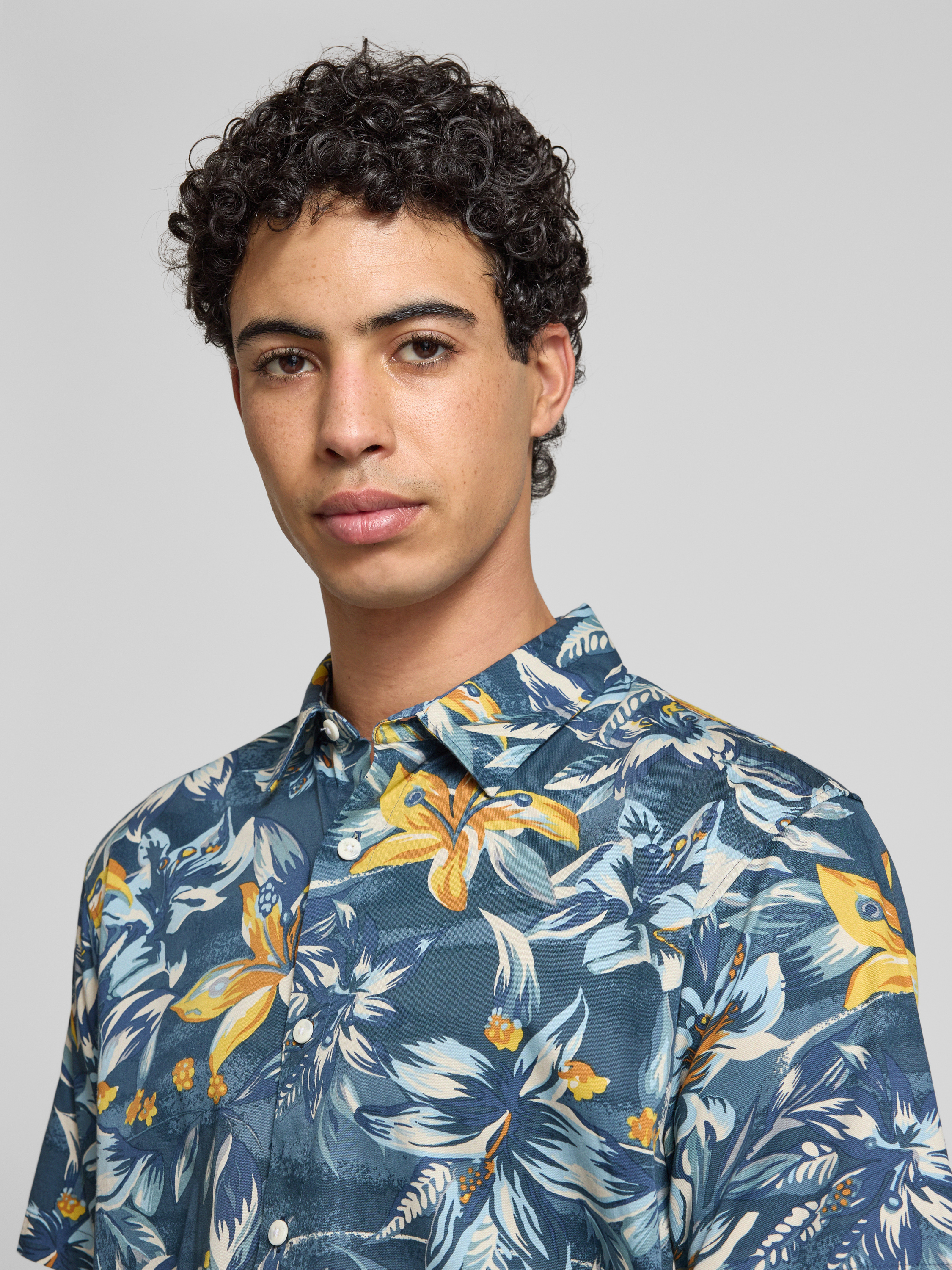 Vrijetijdsoverhemd met kentkraag in rookblauw