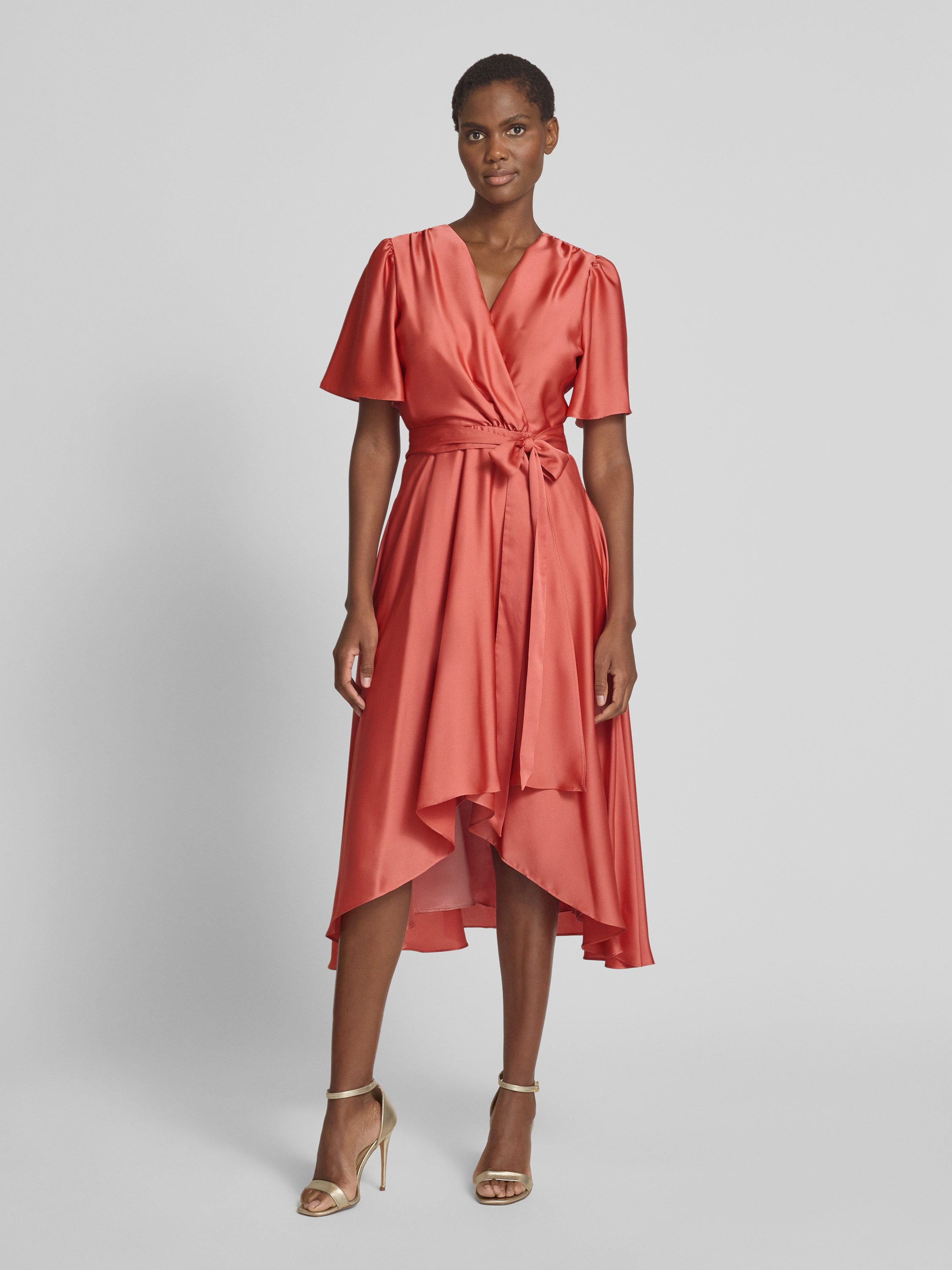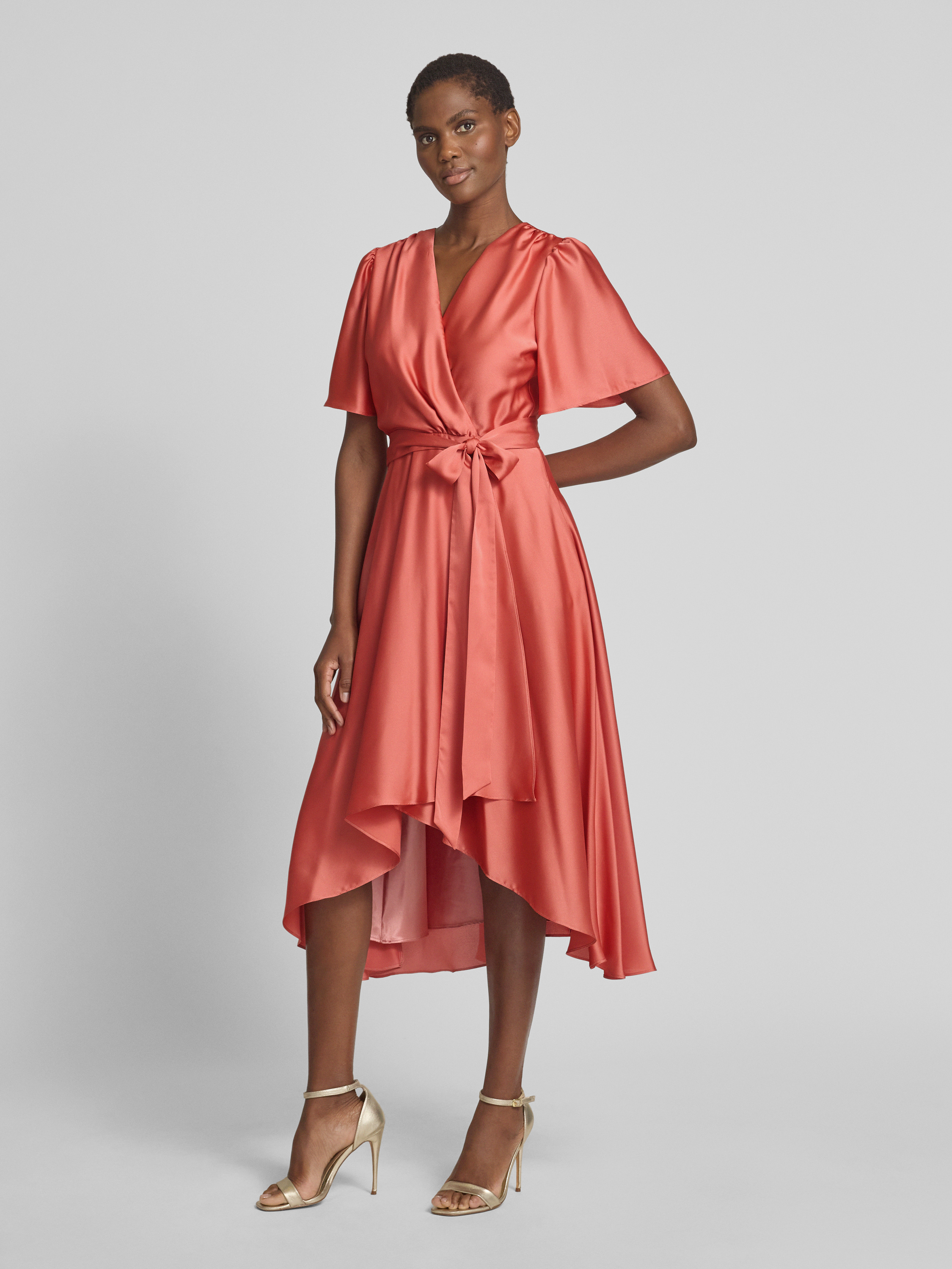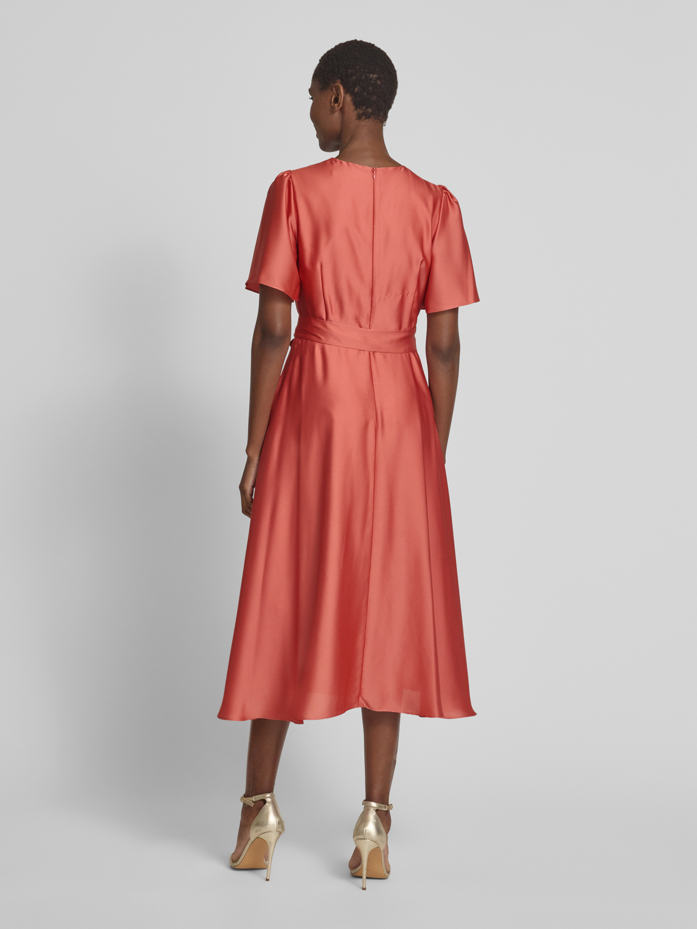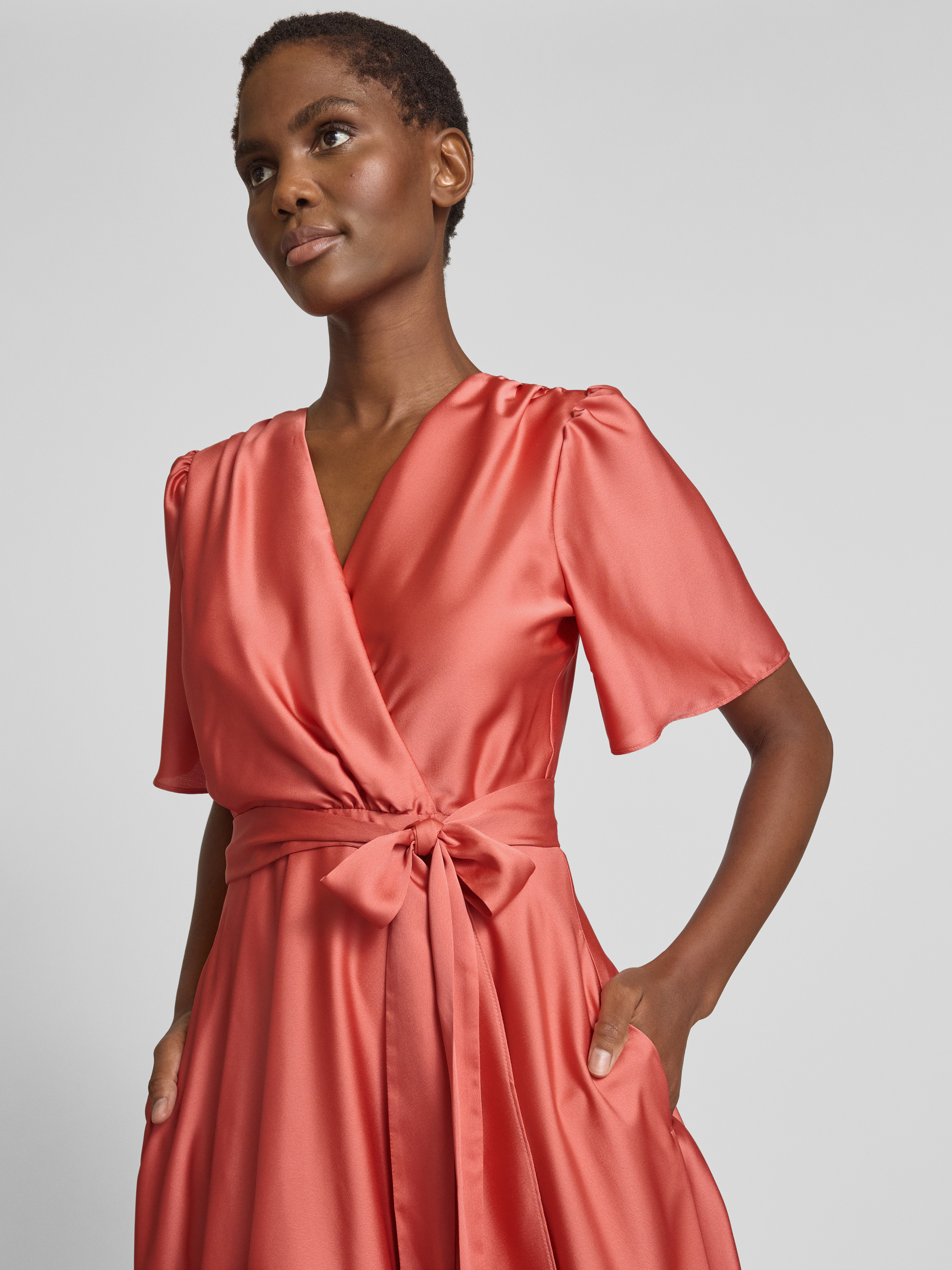 Cocktailjurk met strikceintuur in oudroze