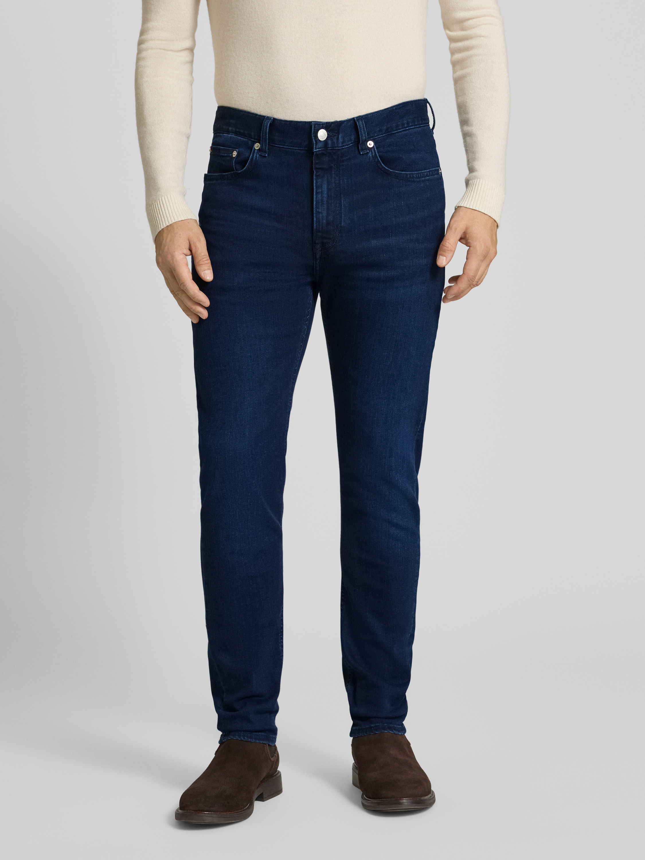 Slim fit jeans van katoenmix, model 'BLEECKER' in donkerblauw
