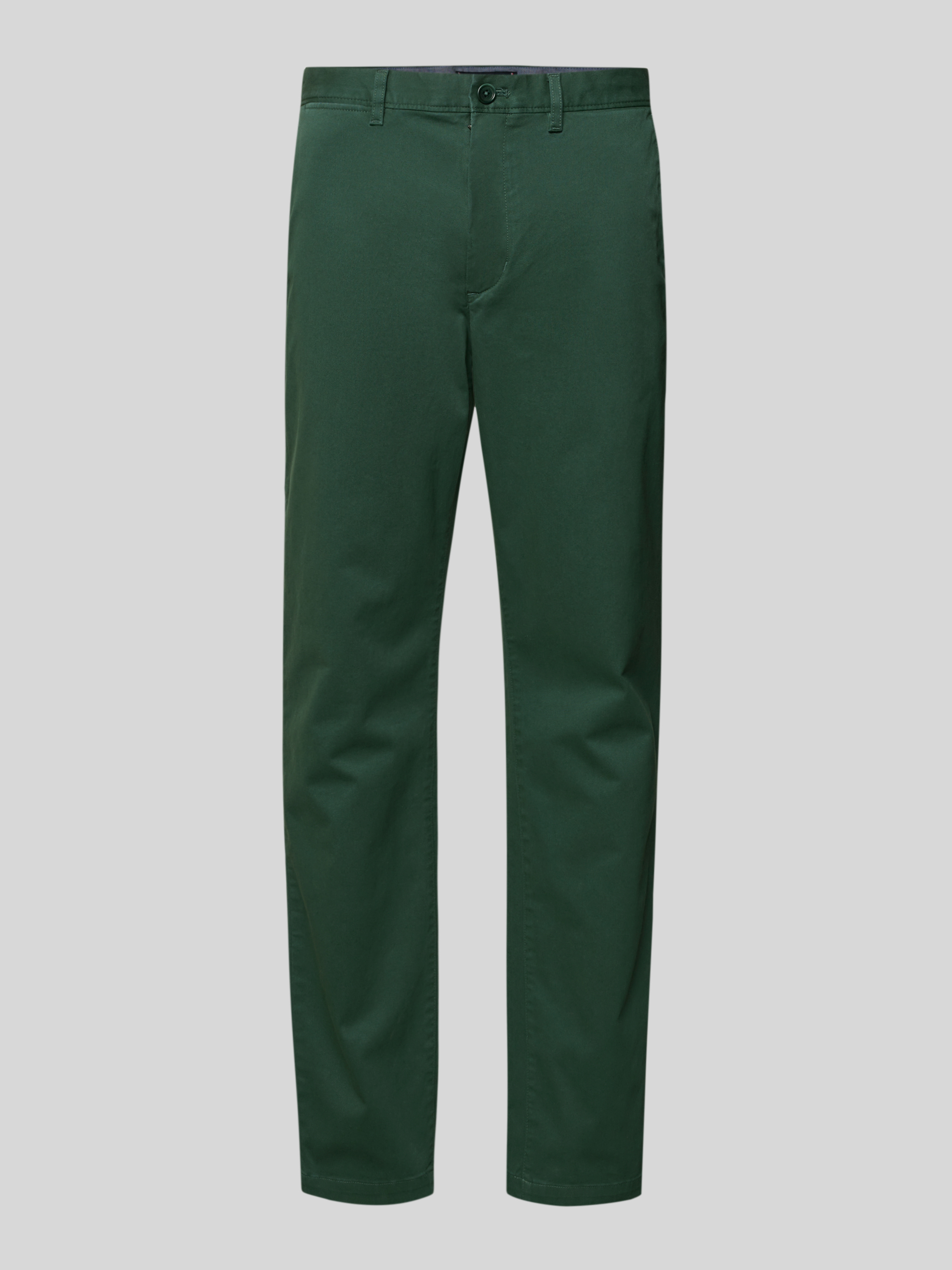 Straight leg chino van katoenmix, model 'DENTON' in donkergroen