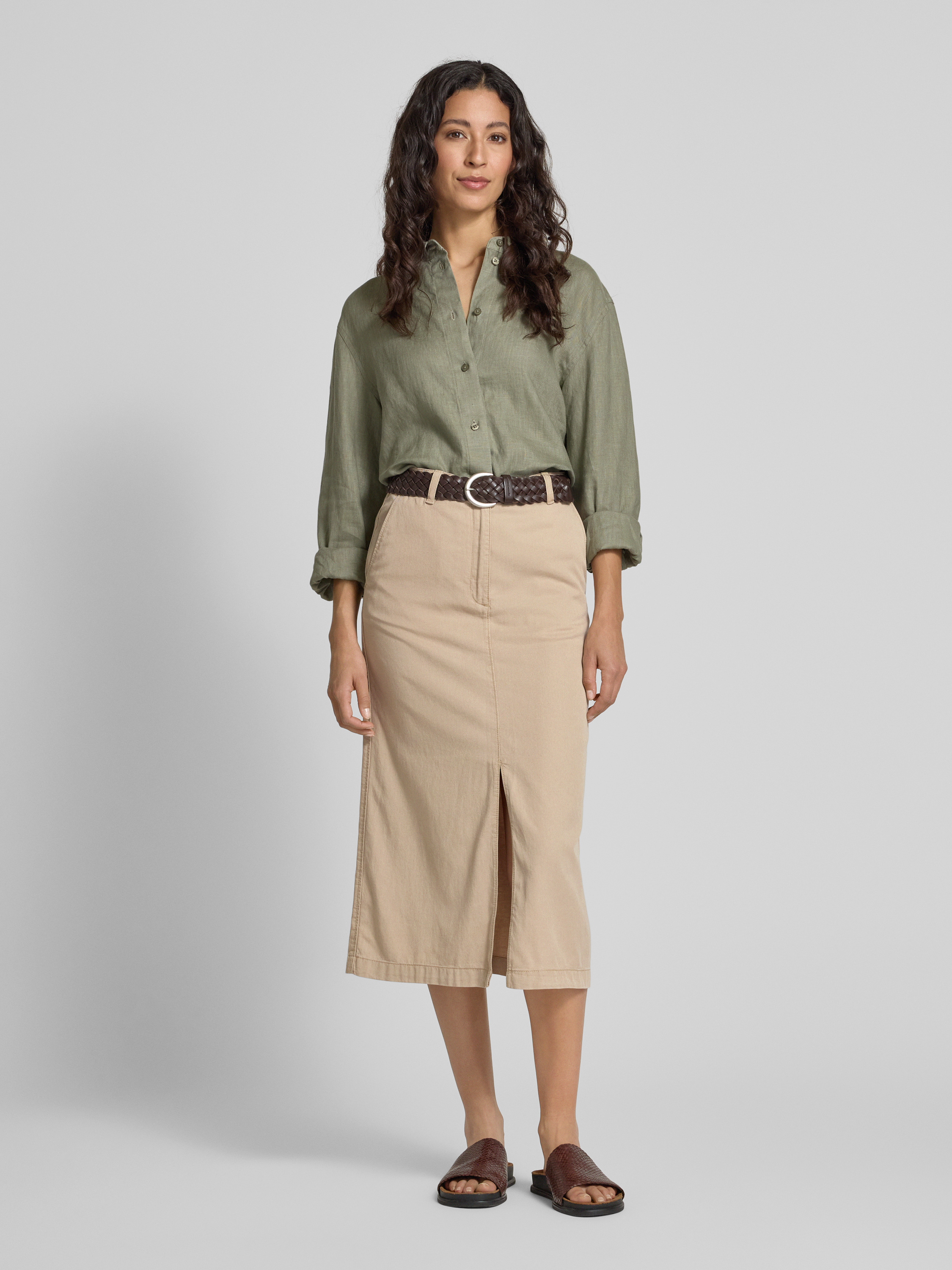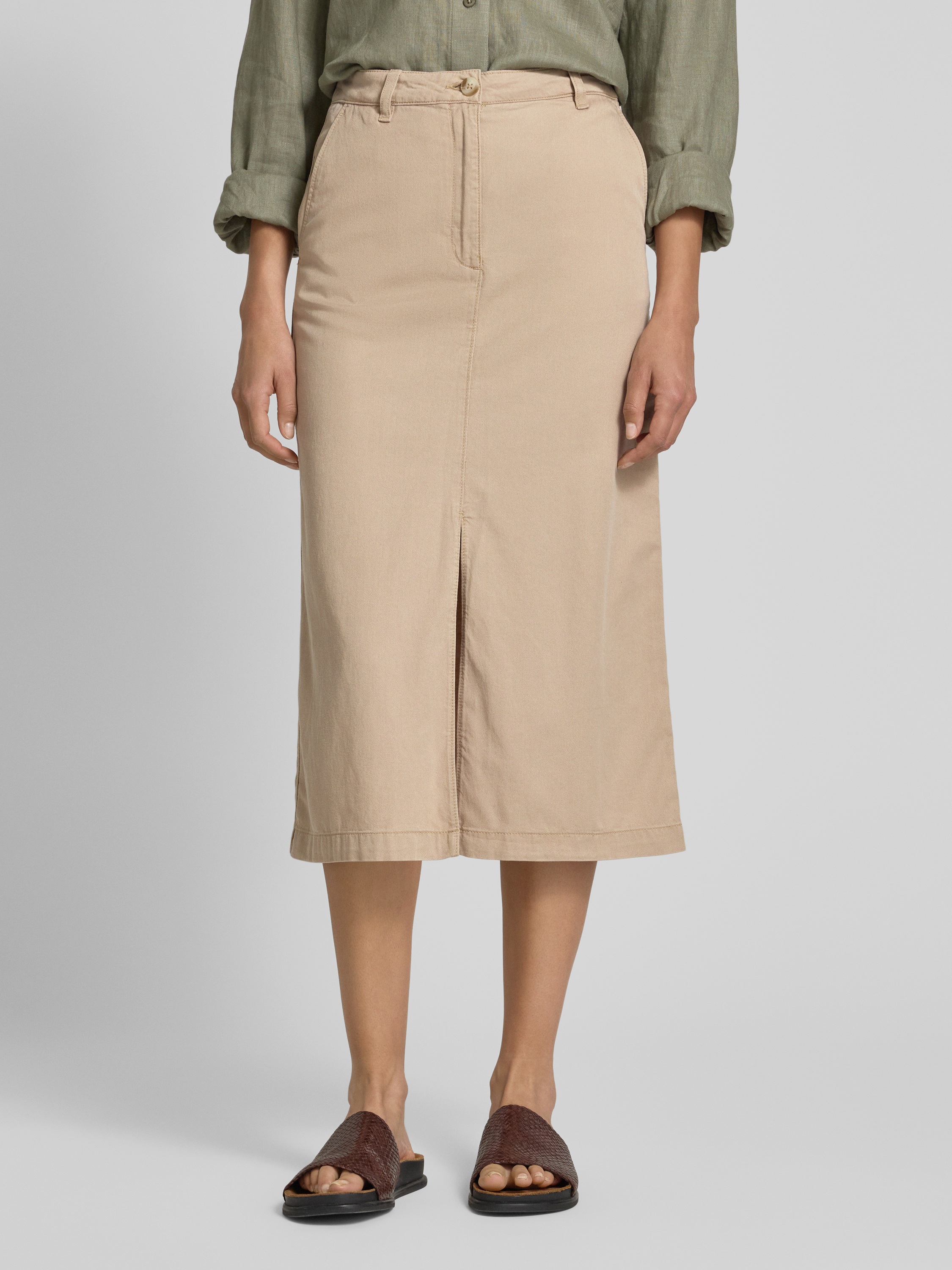 Chinorok in midilengte van een mix van lyocell en katoen in zand