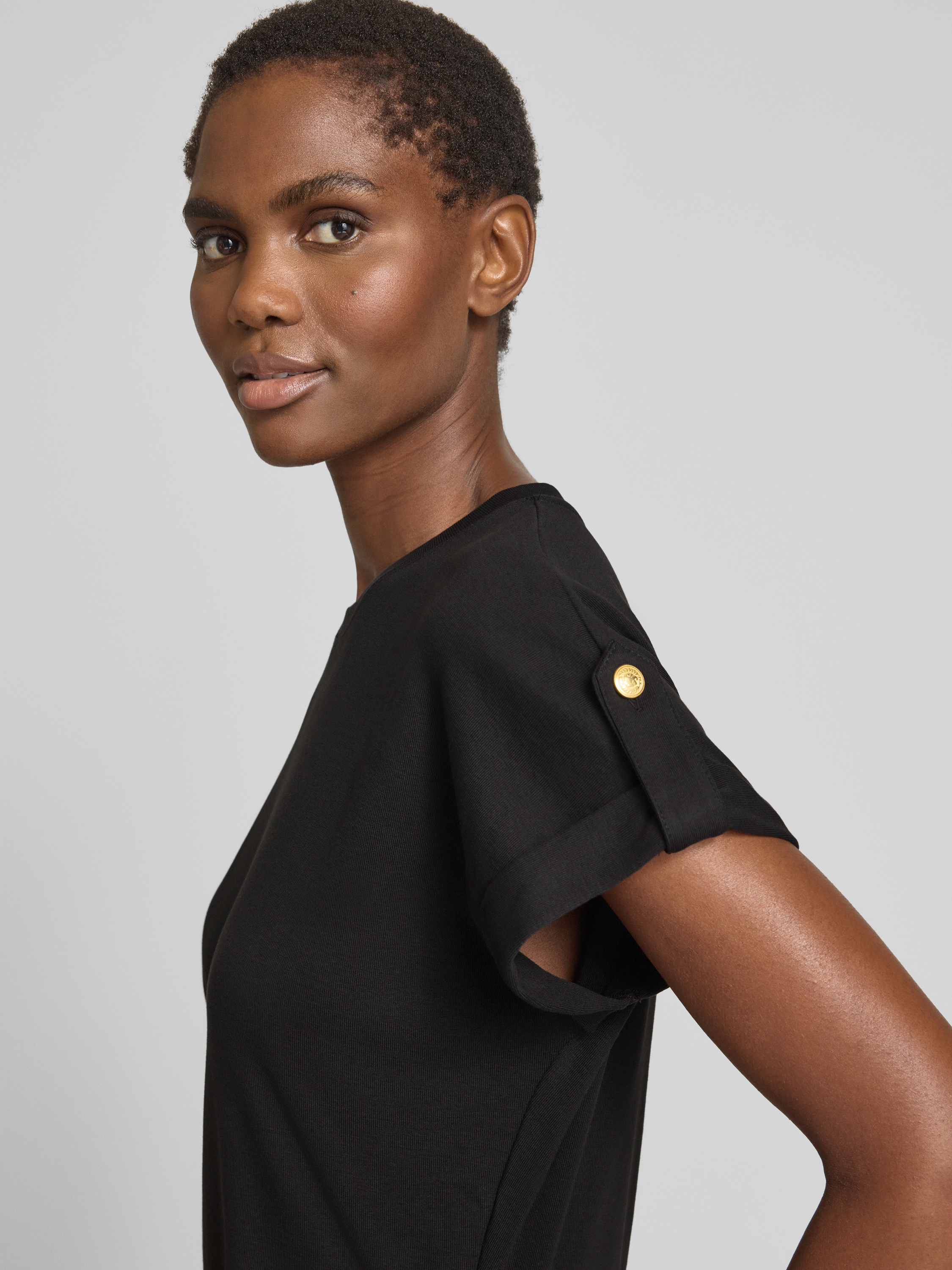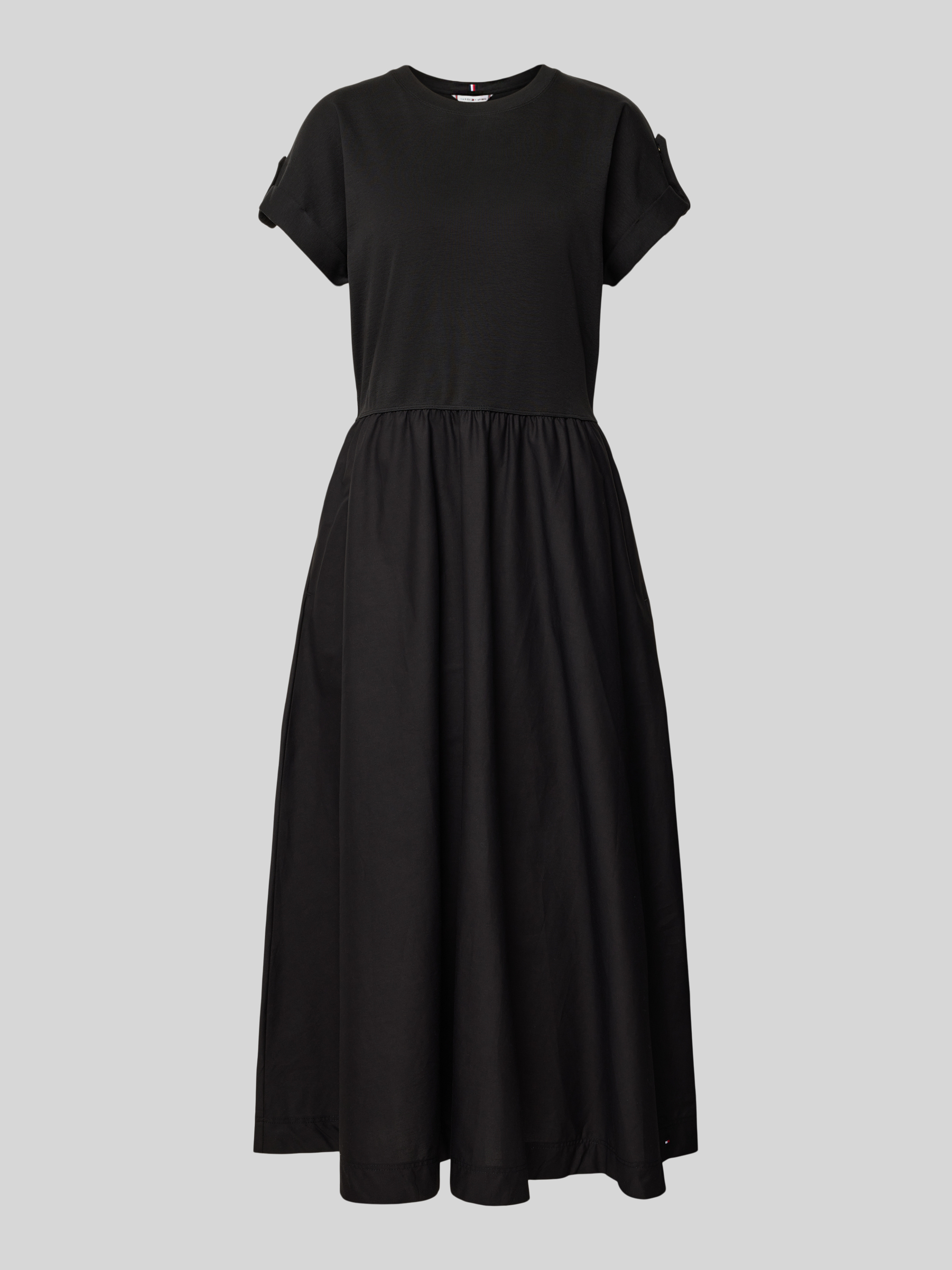 Fit-and-flare midi jurk met goudkleurige knopen in