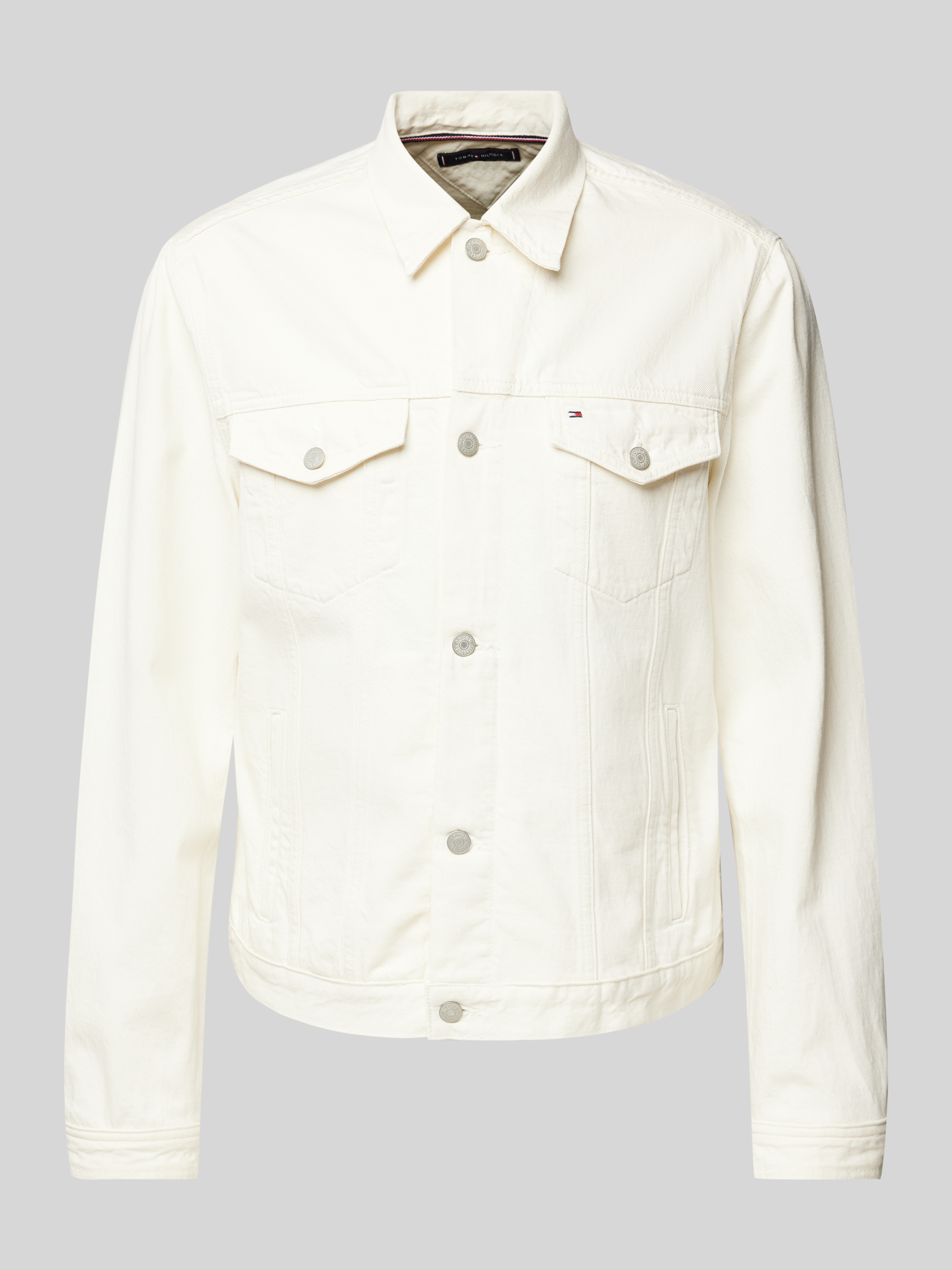 Jeansjack met paspelzakken op de borst in ecru