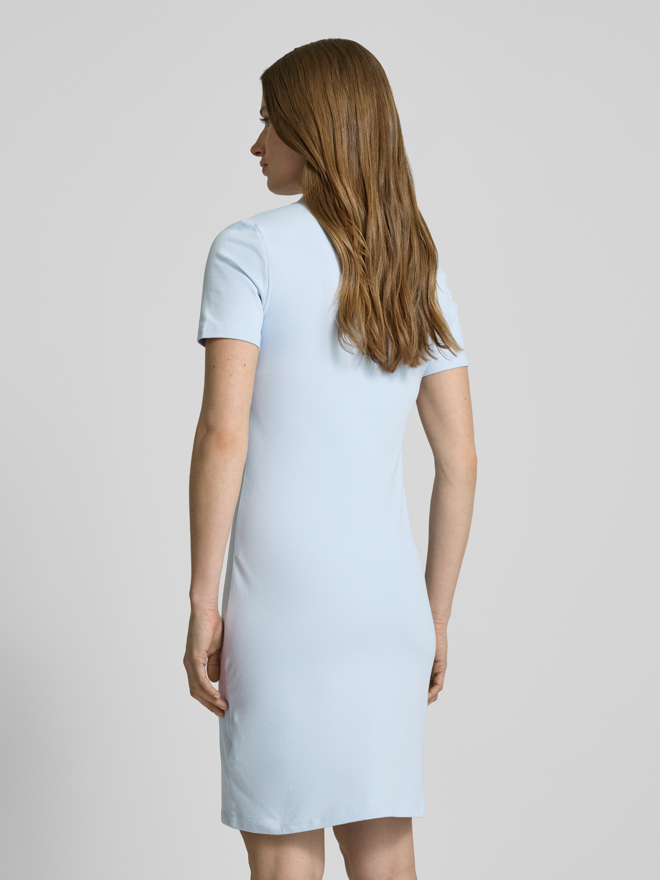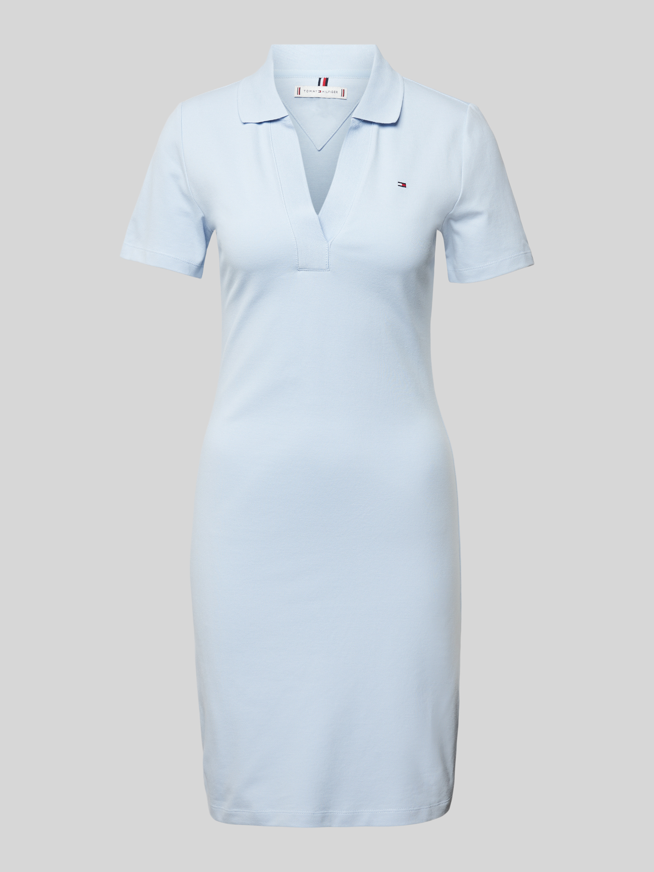 Tommy HilfigerKnielange polojurk met logostitching in lichtblauw