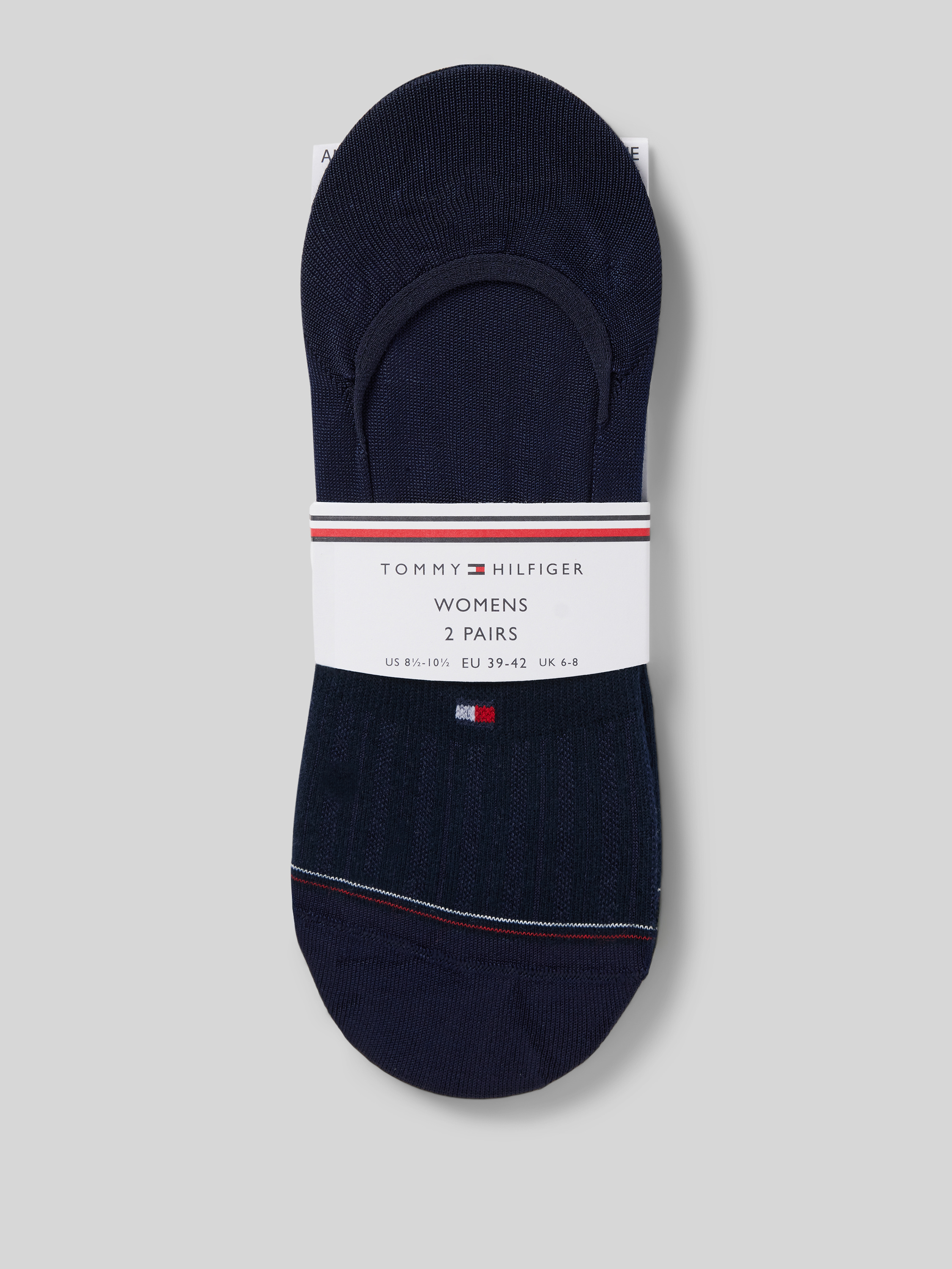 Kousenvoetjes met logoprint in een set van 2 paar in donkerblauw