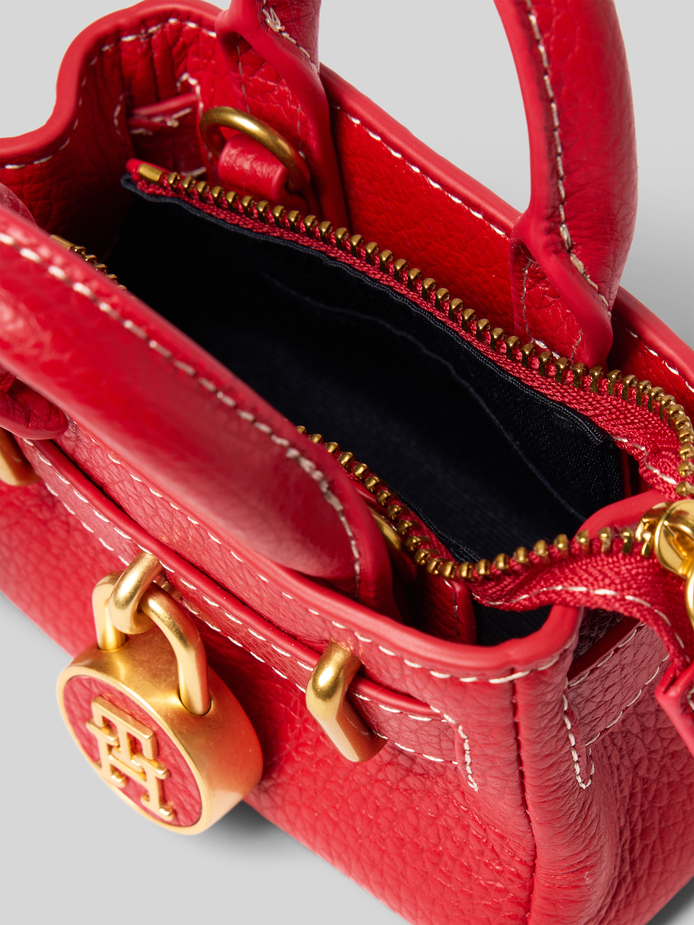 Miniatuurtas in een set met sleutelhanger van echt leer in rood