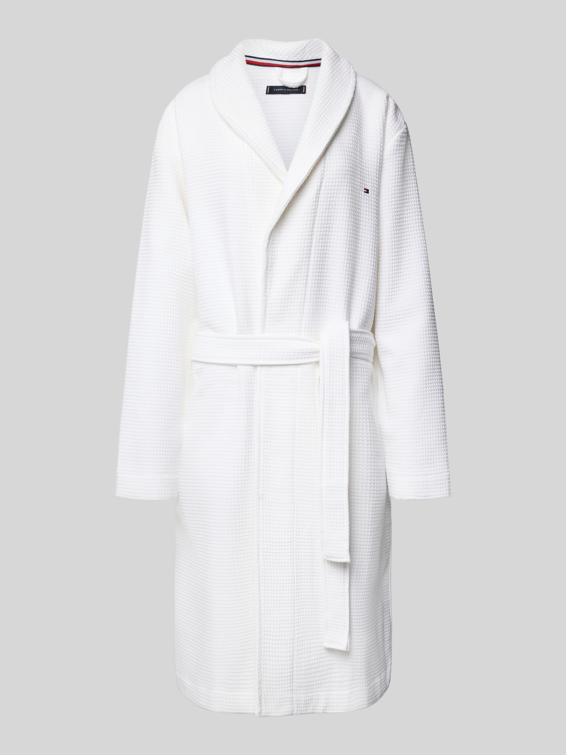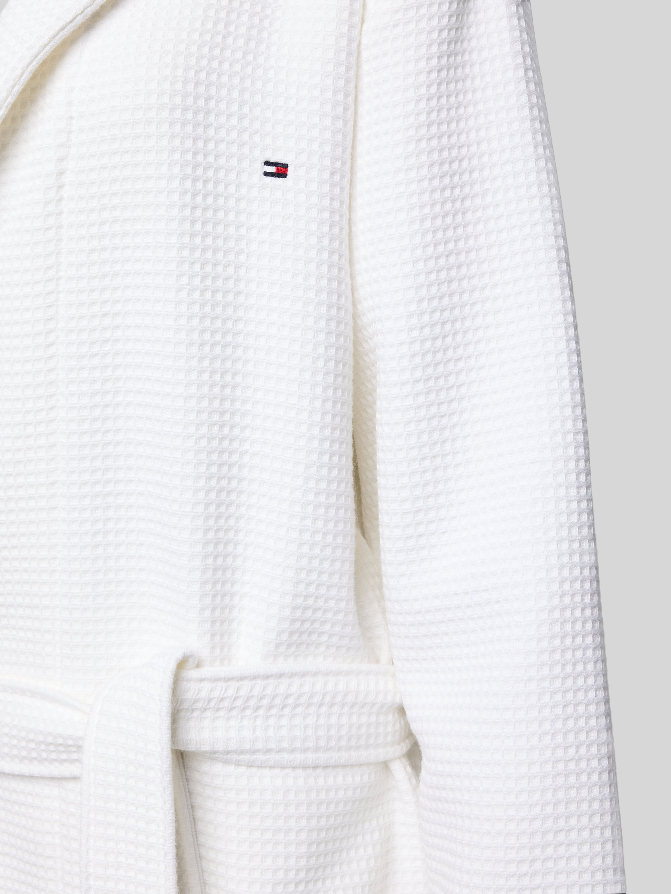 Regular fit badjas van geweven stof met wafelstructuur in offwhite