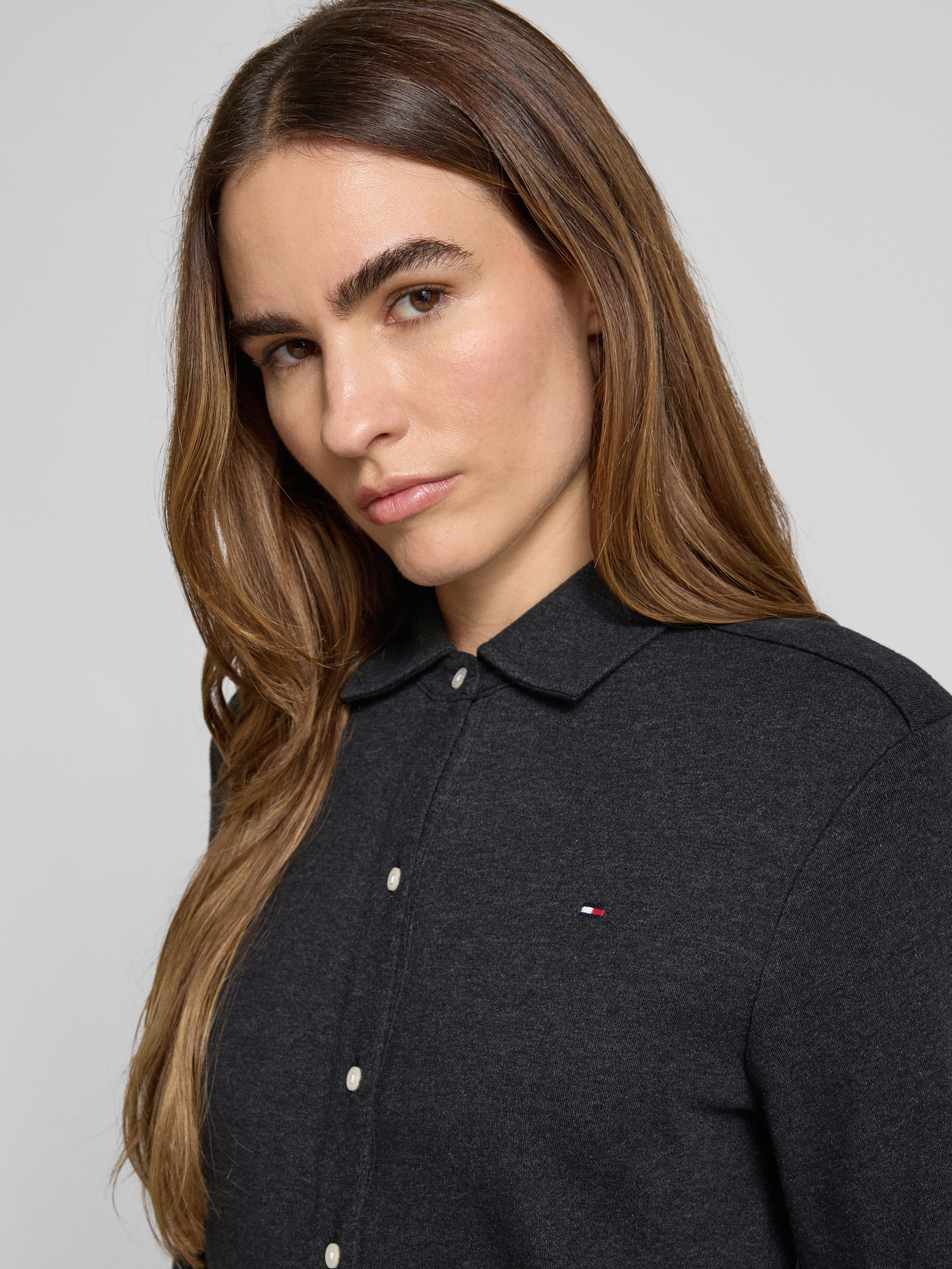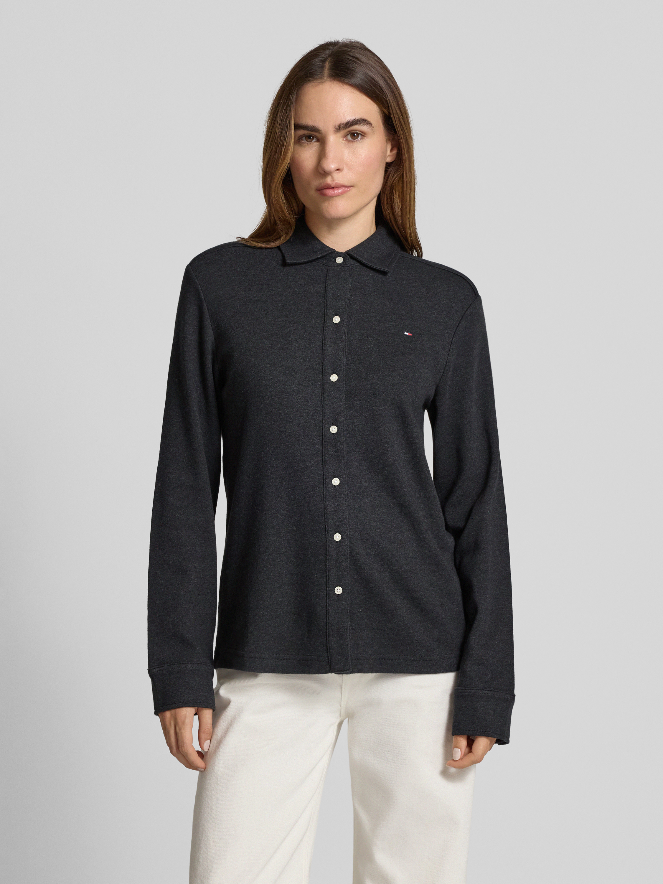 Regular fit blouse met lange mouwen van puur katoen in antraciet