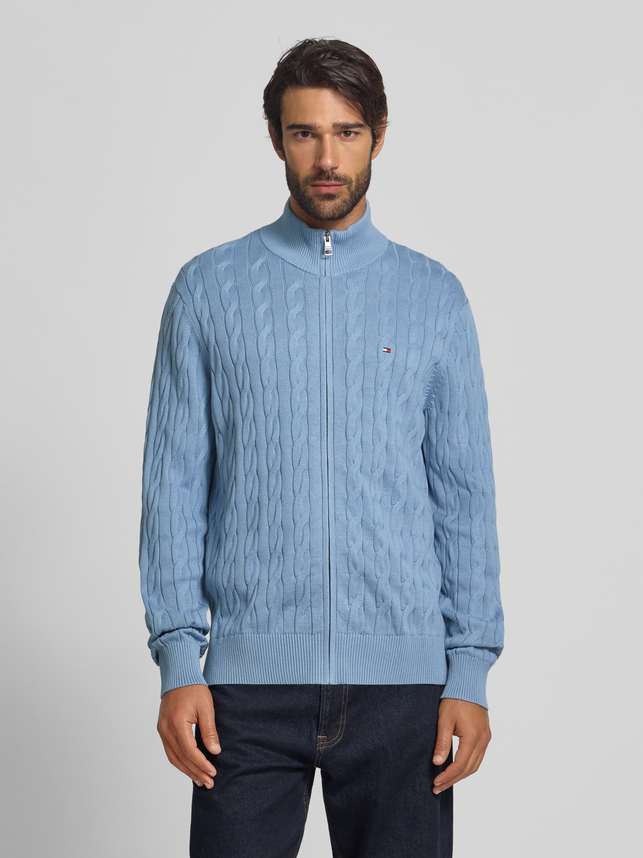 Regular fit gebreid jack van puur katoen in lichtblauw