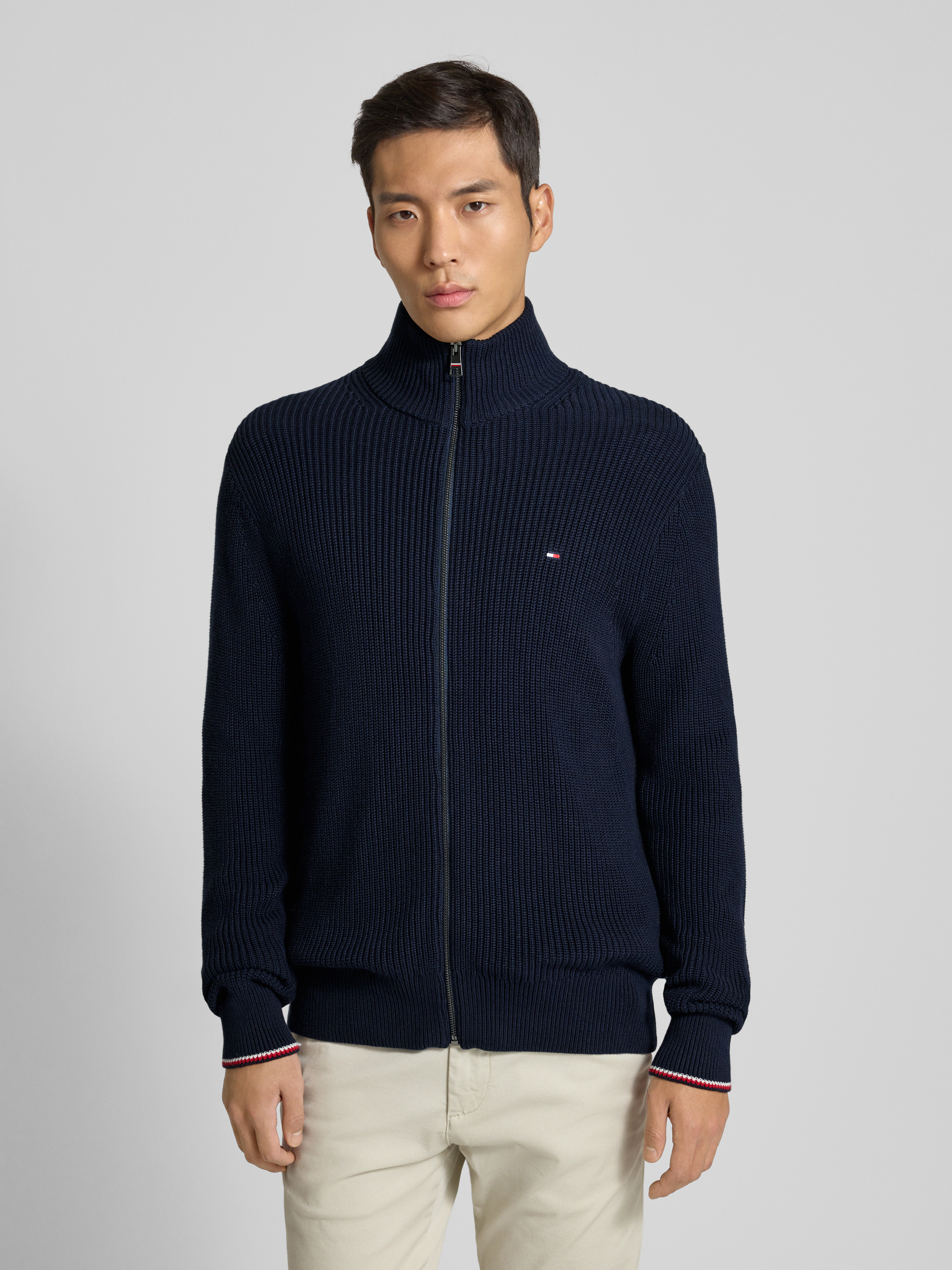 Regular fit gebreid jack van puur katoen in marineblauw
