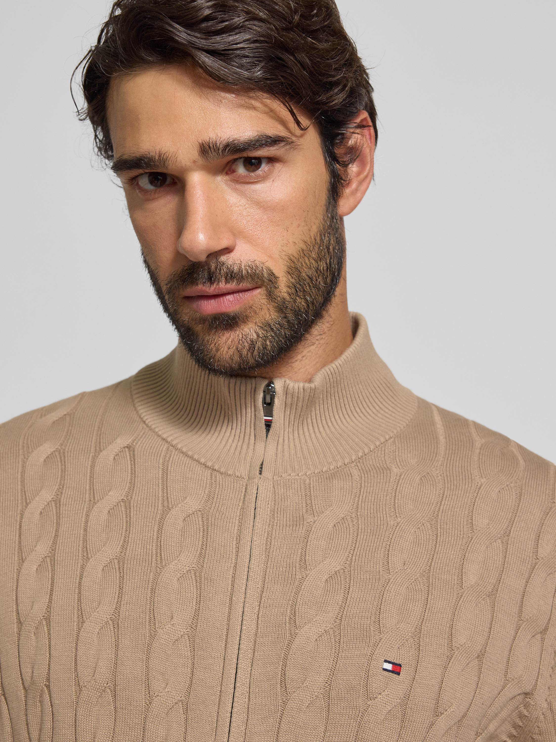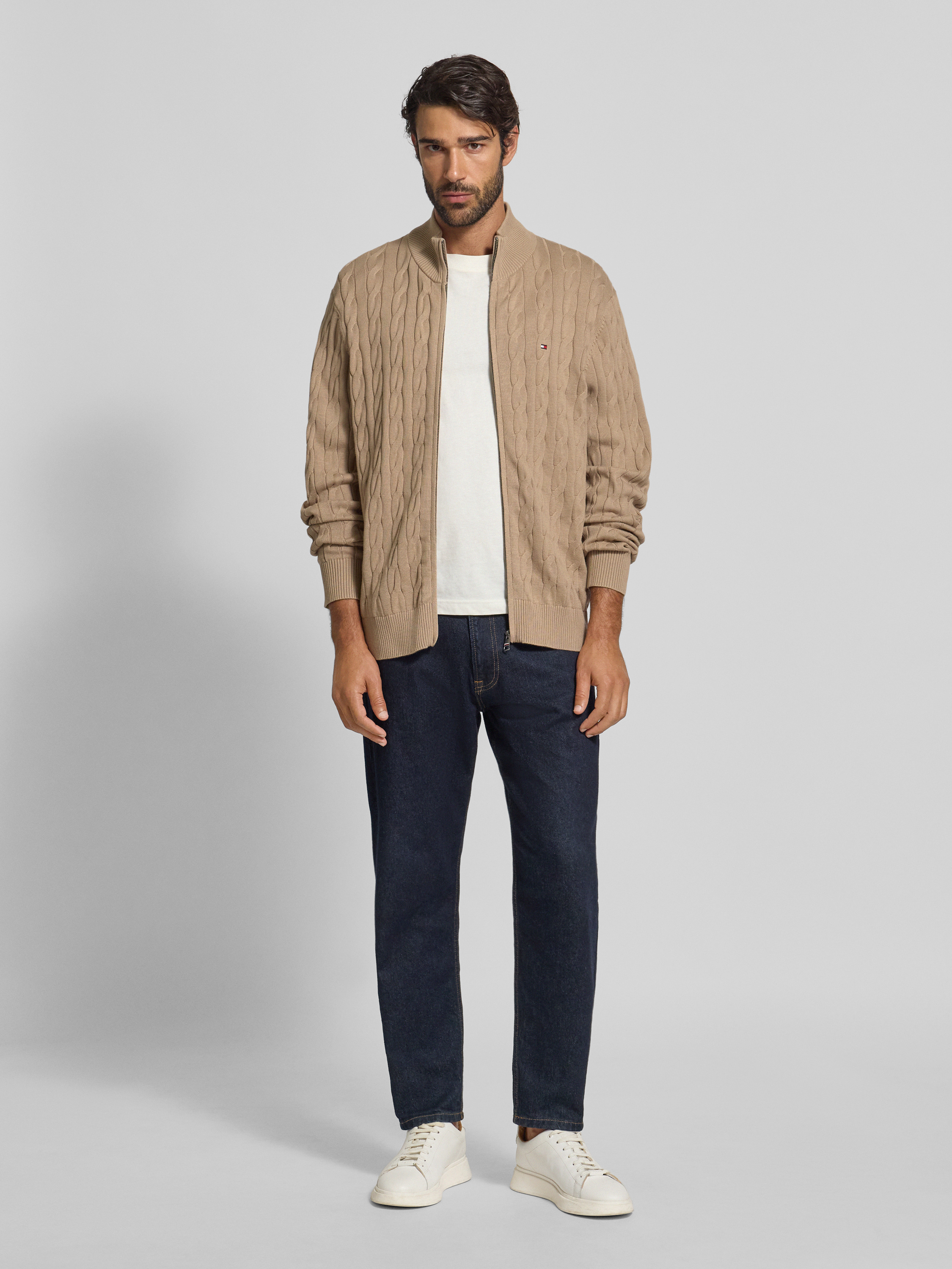 Regular fit gebreid jack van puur katoen in taupe