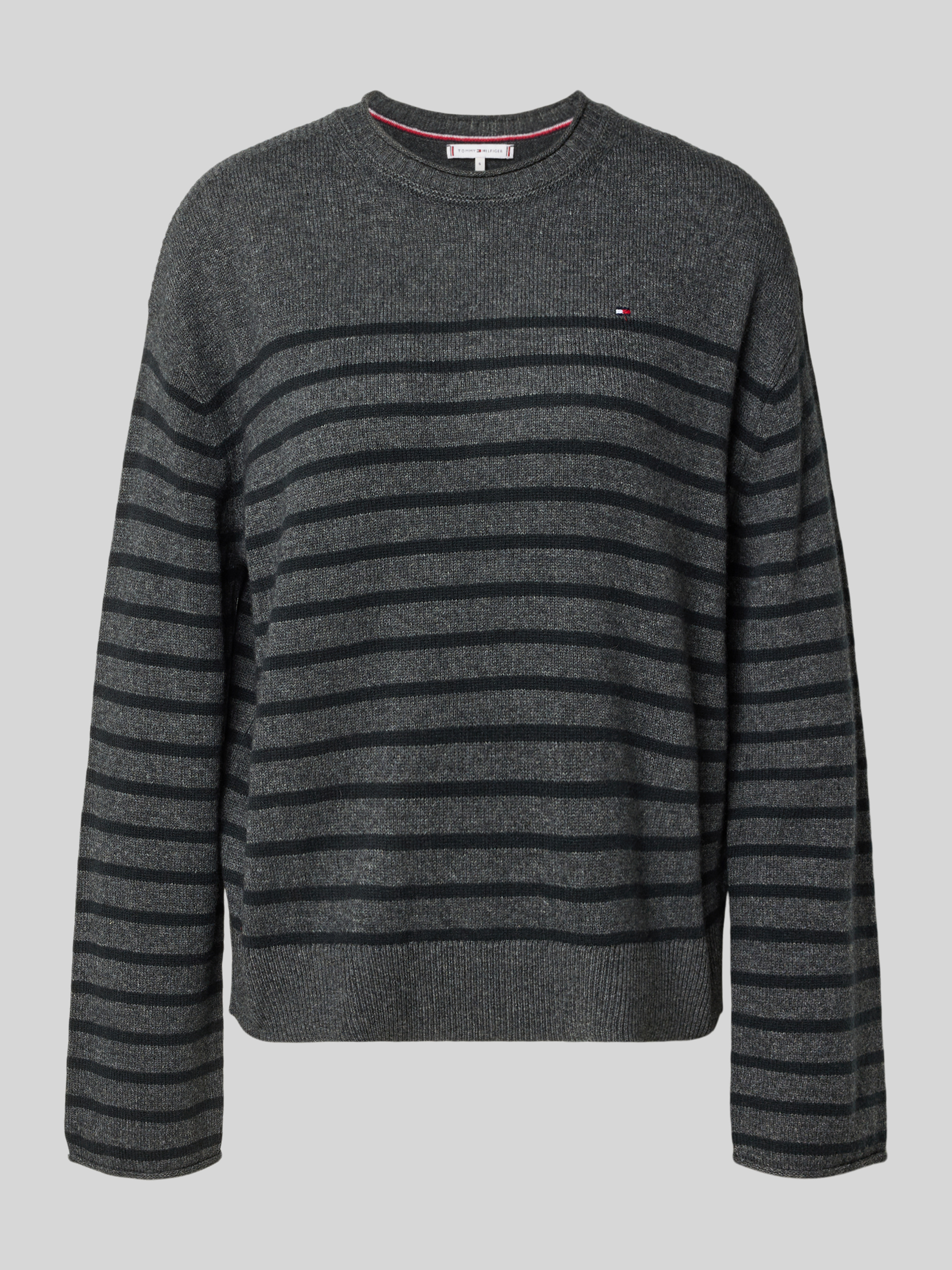 Tommy HilfigerRegular fit gebreide pullover van pure wol in donkergrijs