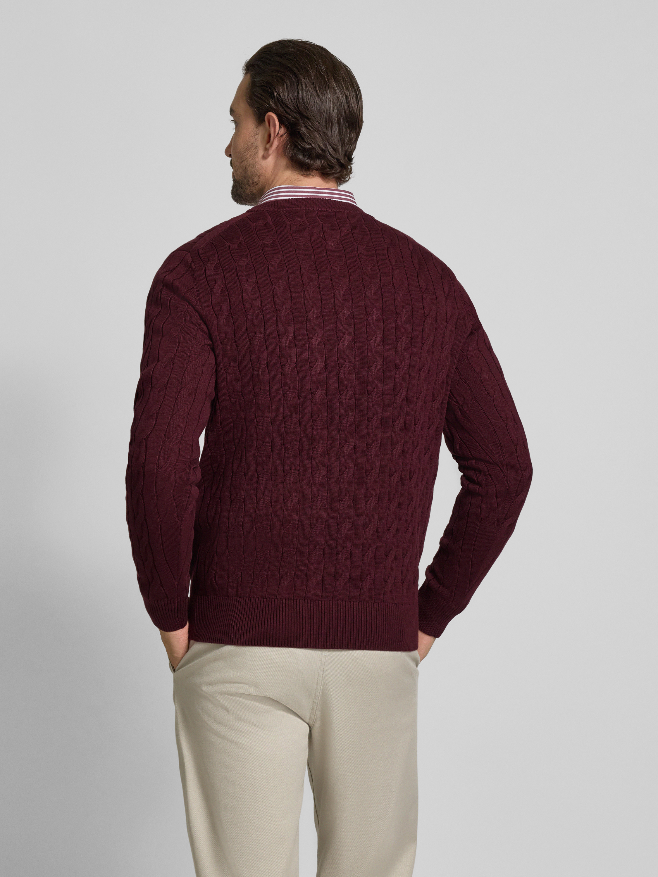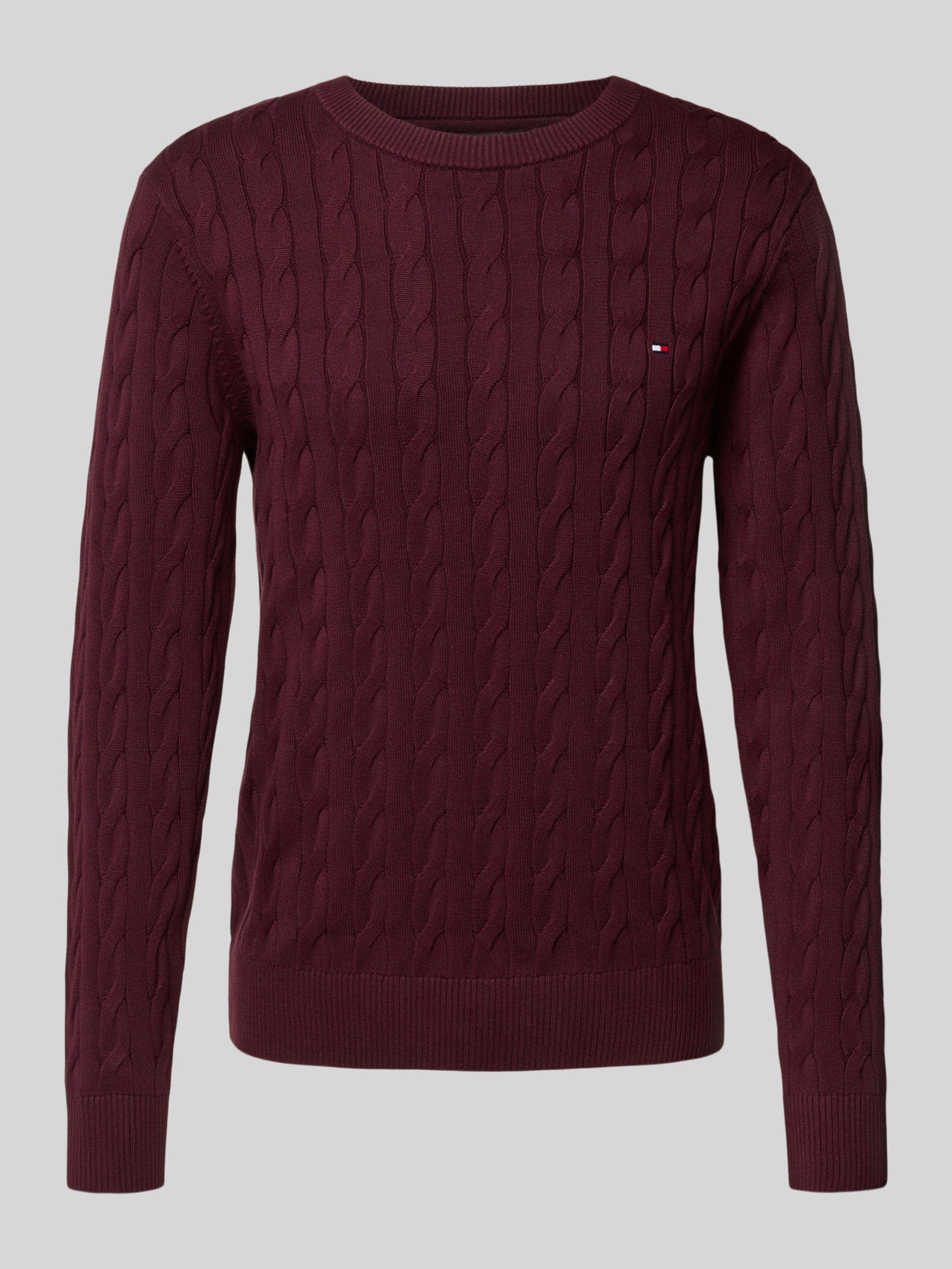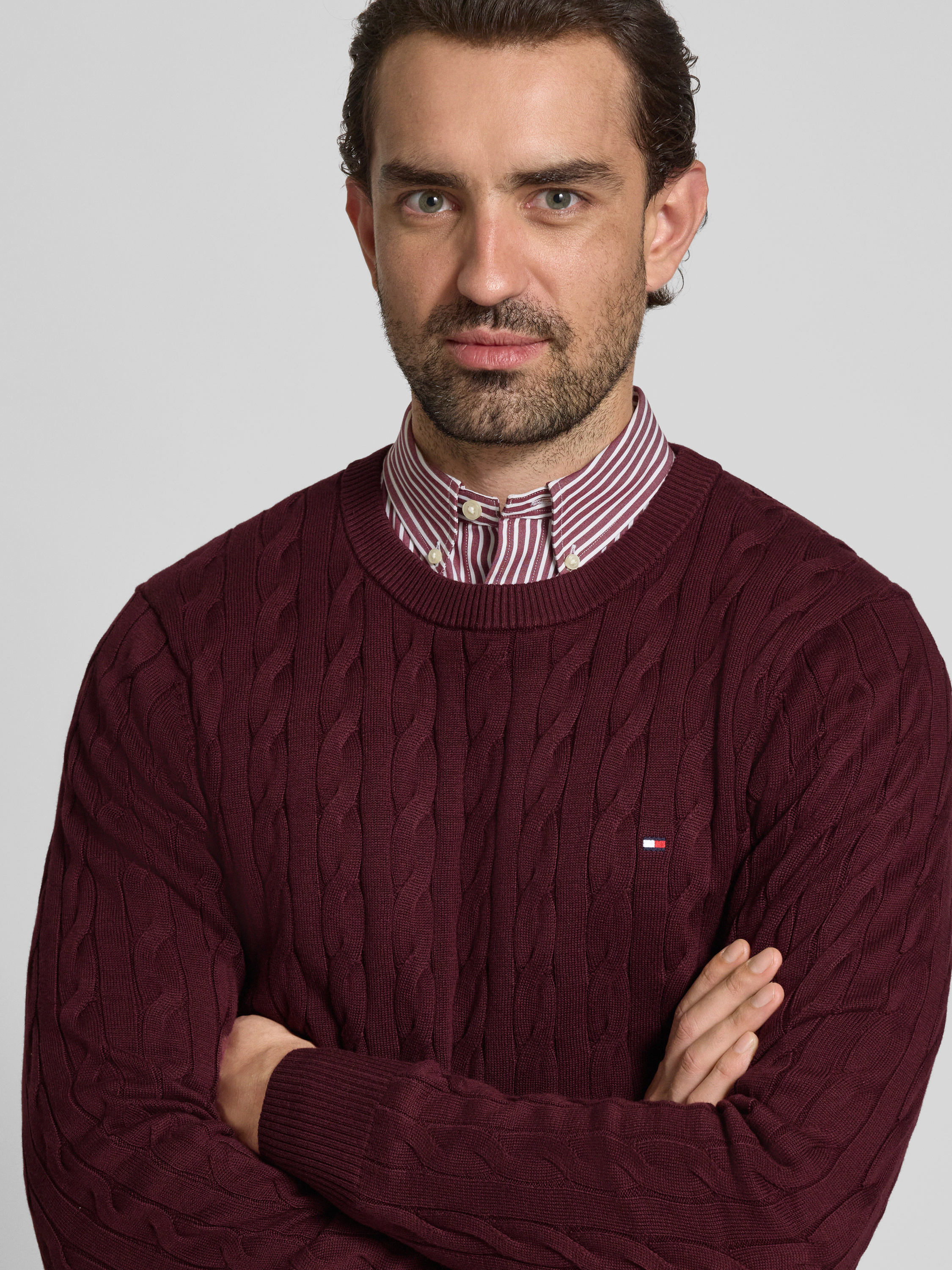 Regular fit gebreide pullover van zuiver katoen in bordeaux