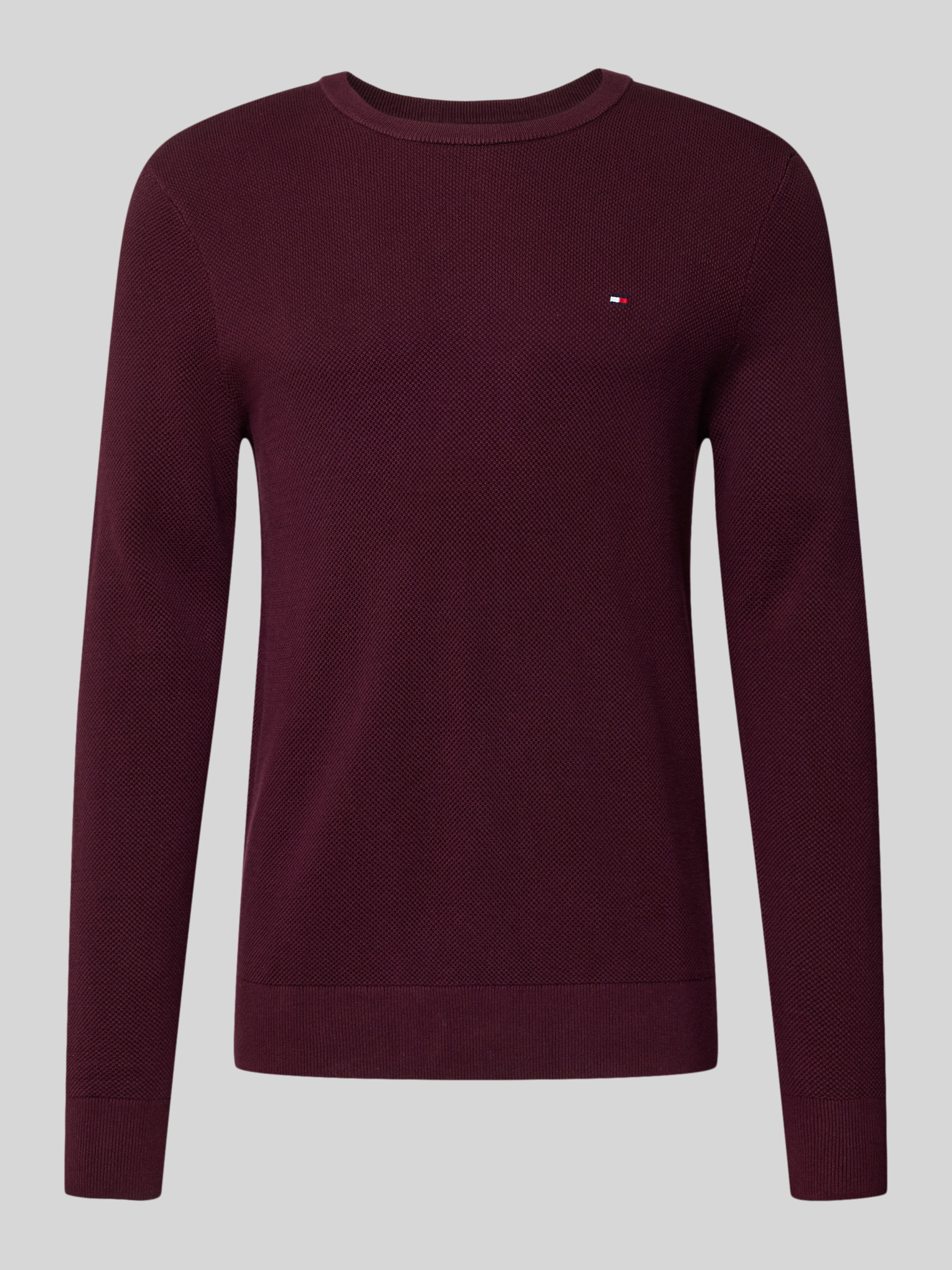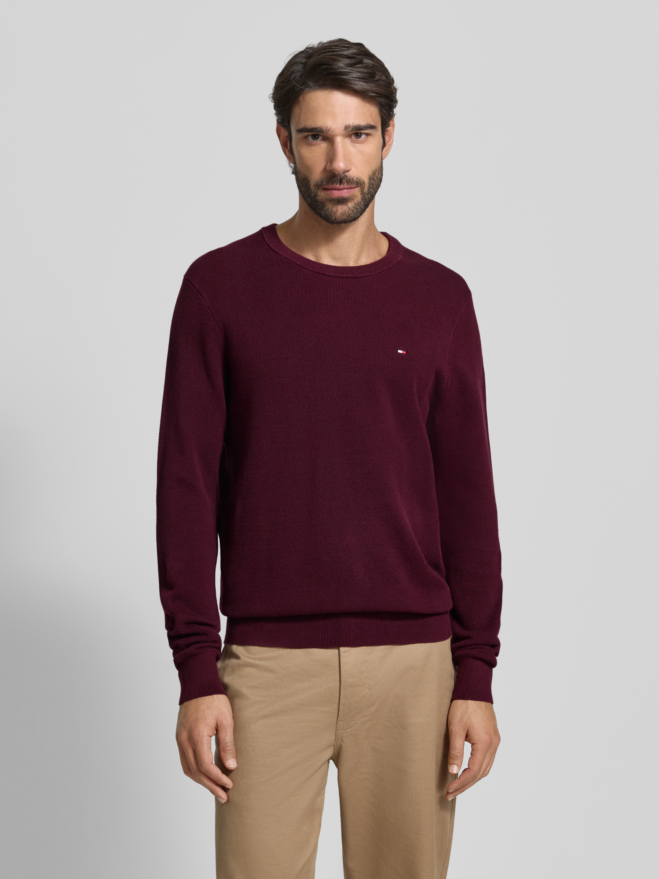 Regular fit gebreide pullover van zuiver katoen in bordeaux