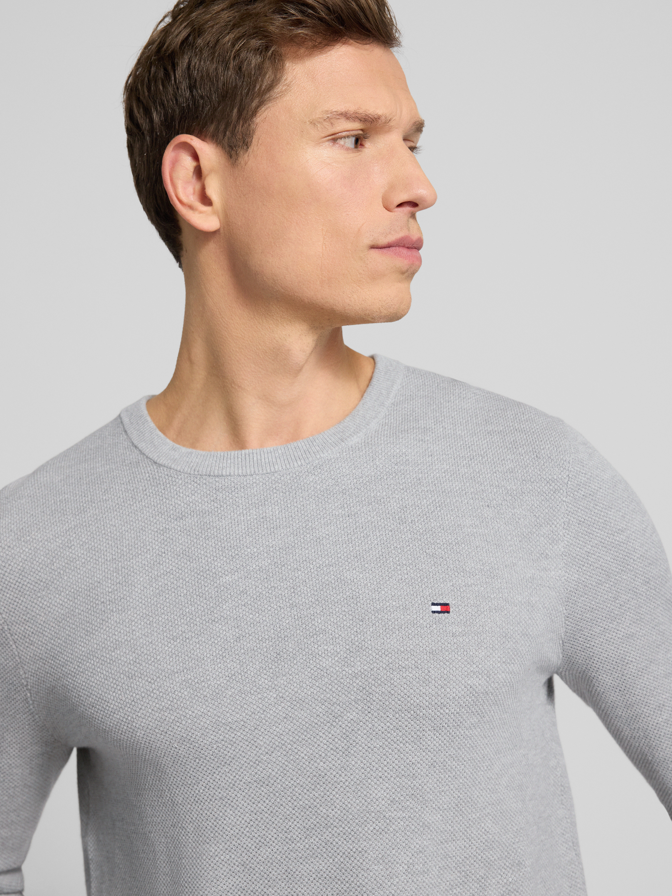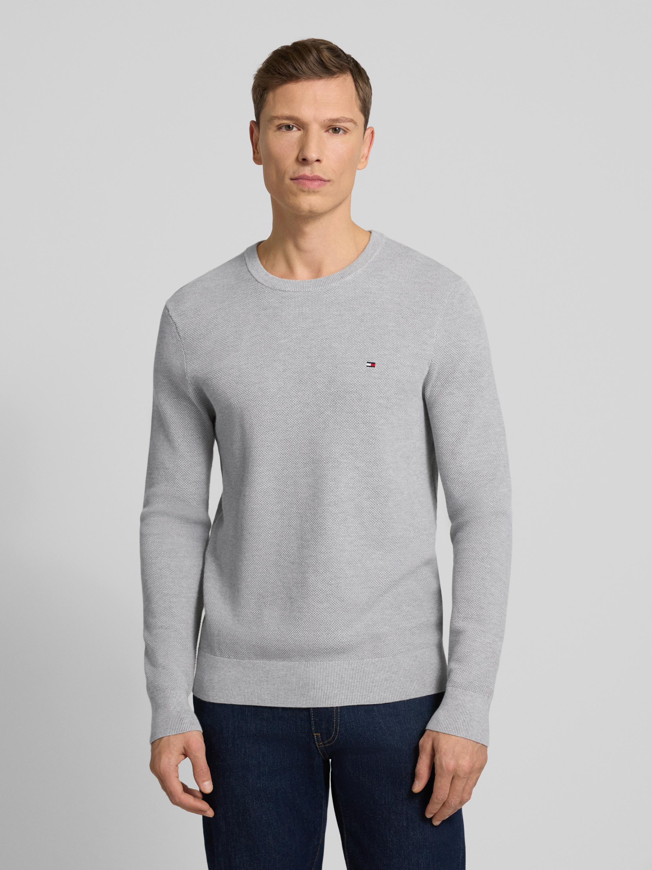Regular fit gebreide pullover van zuiver katoen in lichtgrijs