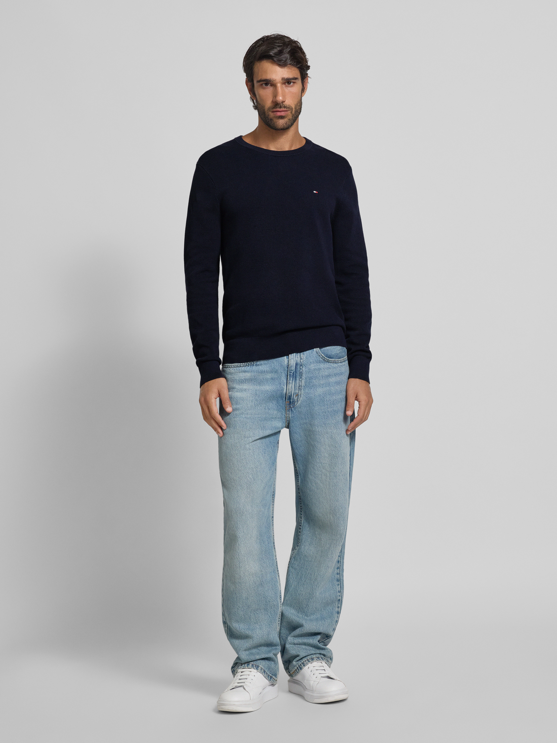 Regular fit gebreide pullover van zuiver katoen in marineblauw