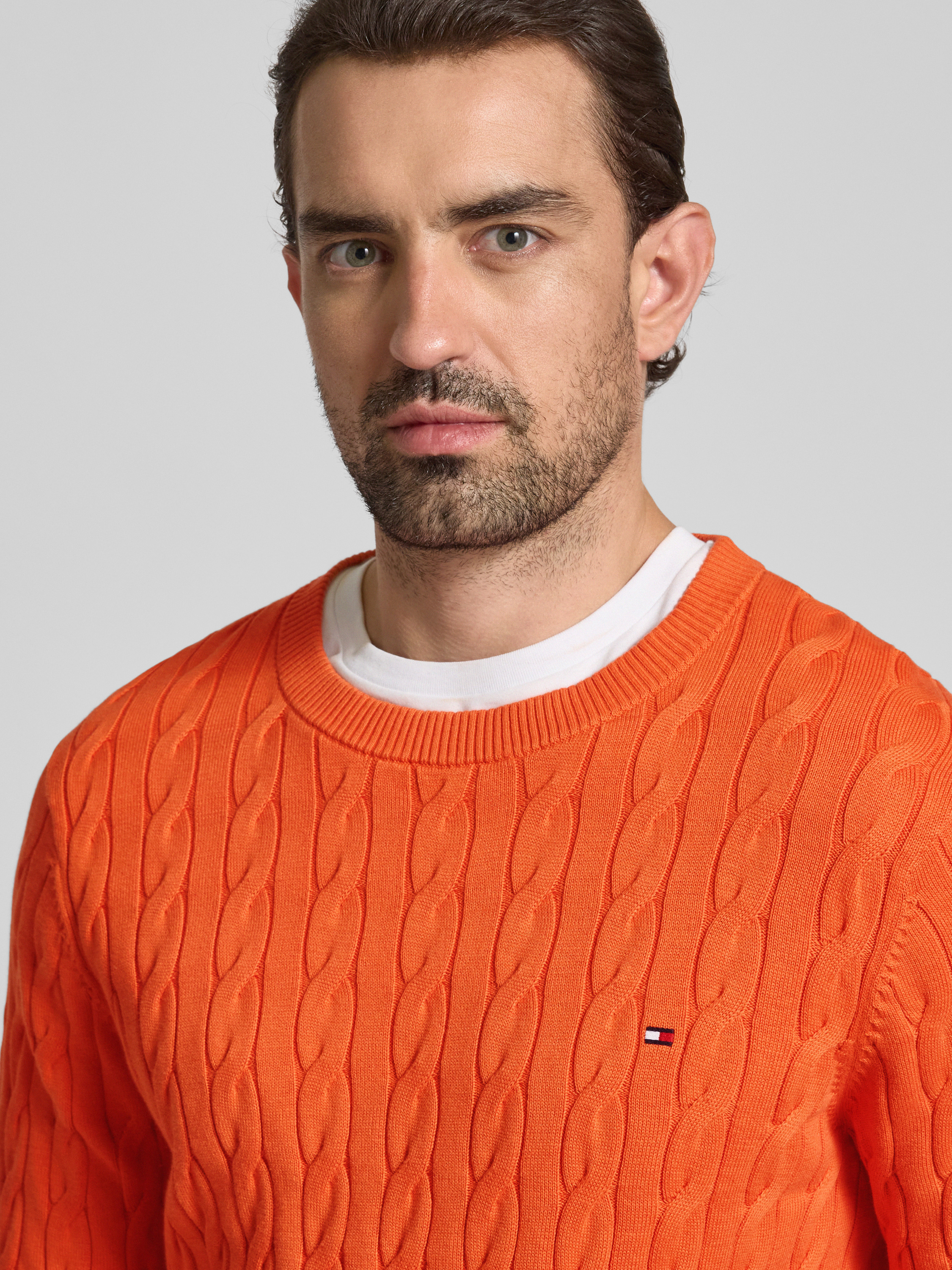 Regular fit gebreide pullover van zuiver katoen in oranje