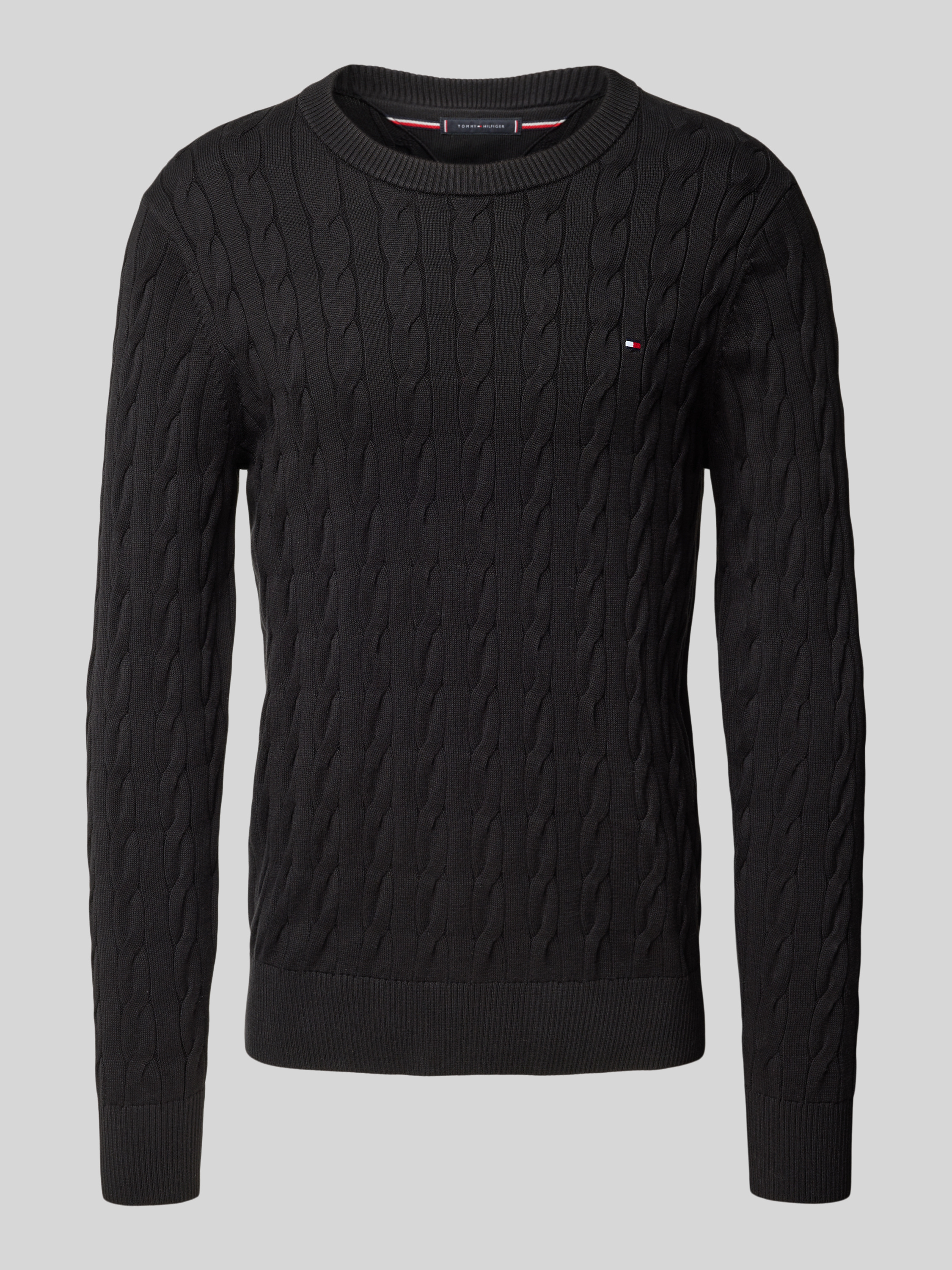 Regular fit gebreide pullover van zuiver katoen in zwart