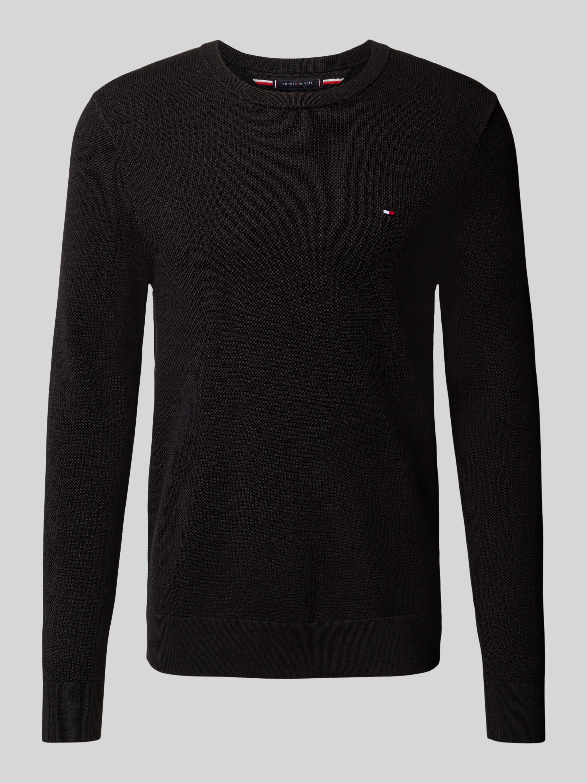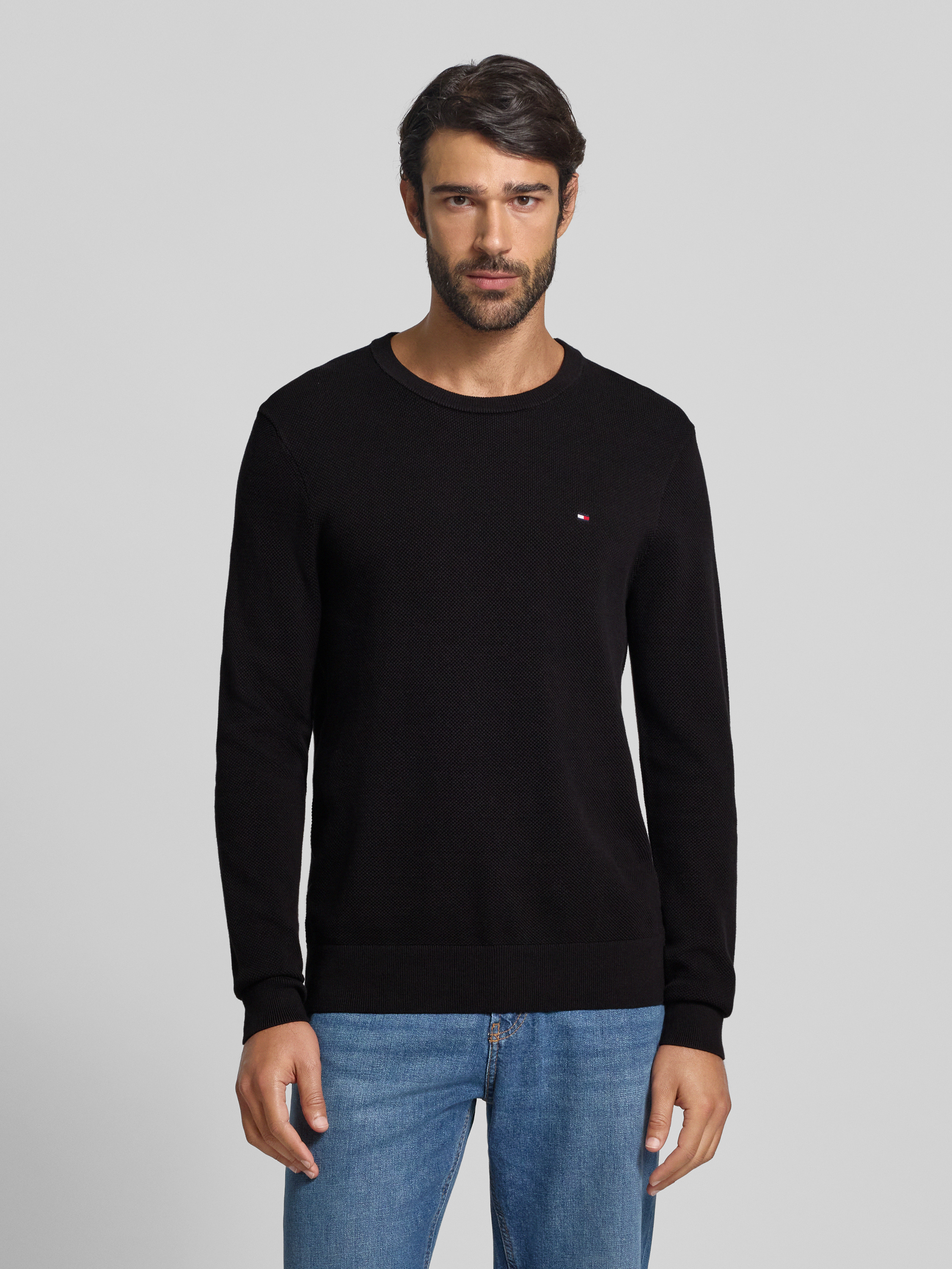 Regular fit gebreide pullover van zuiver katoen in zwart