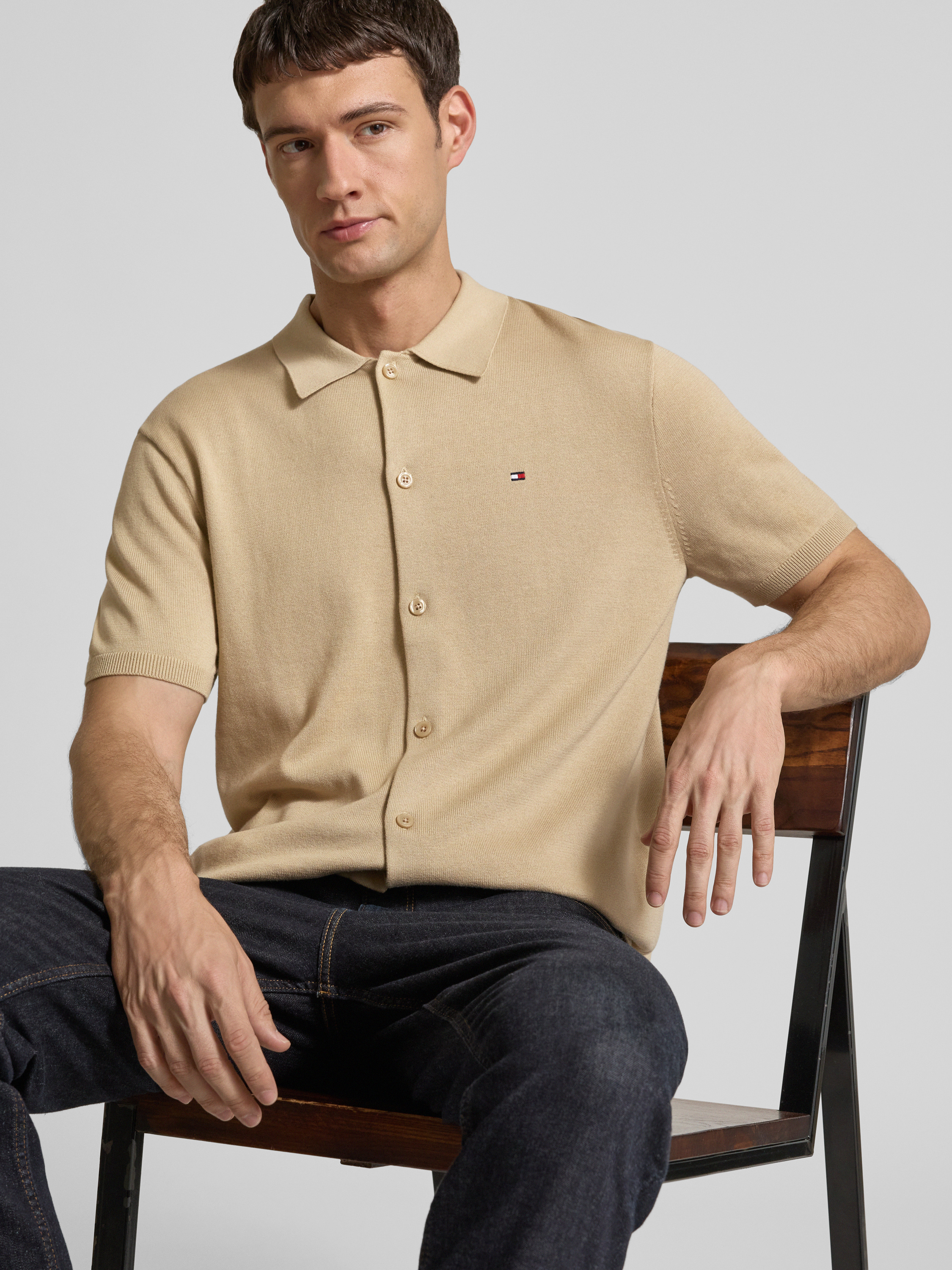 Regular fit overshirt van puur gebreid katoen in beige