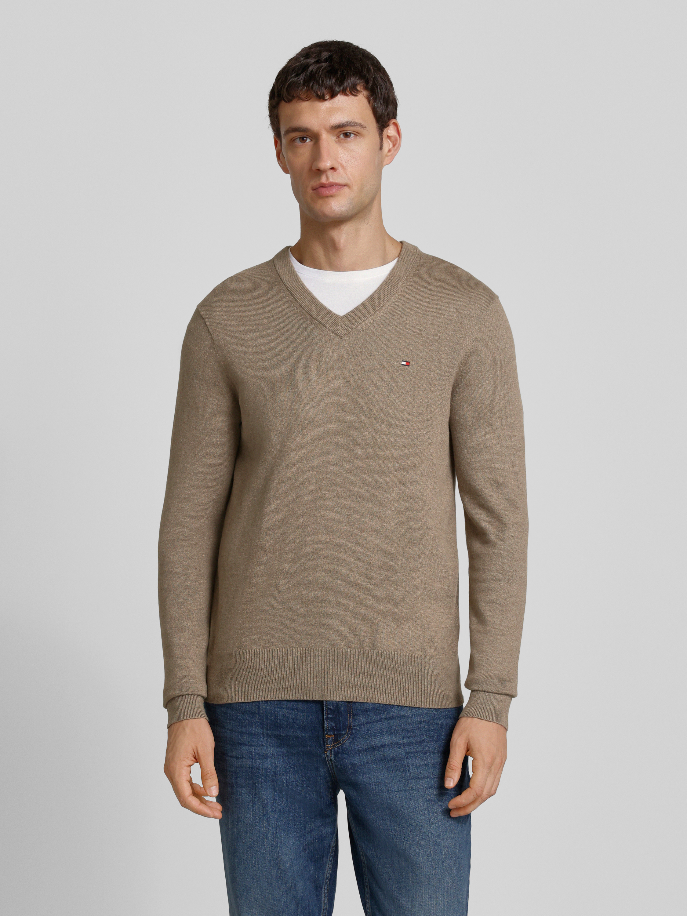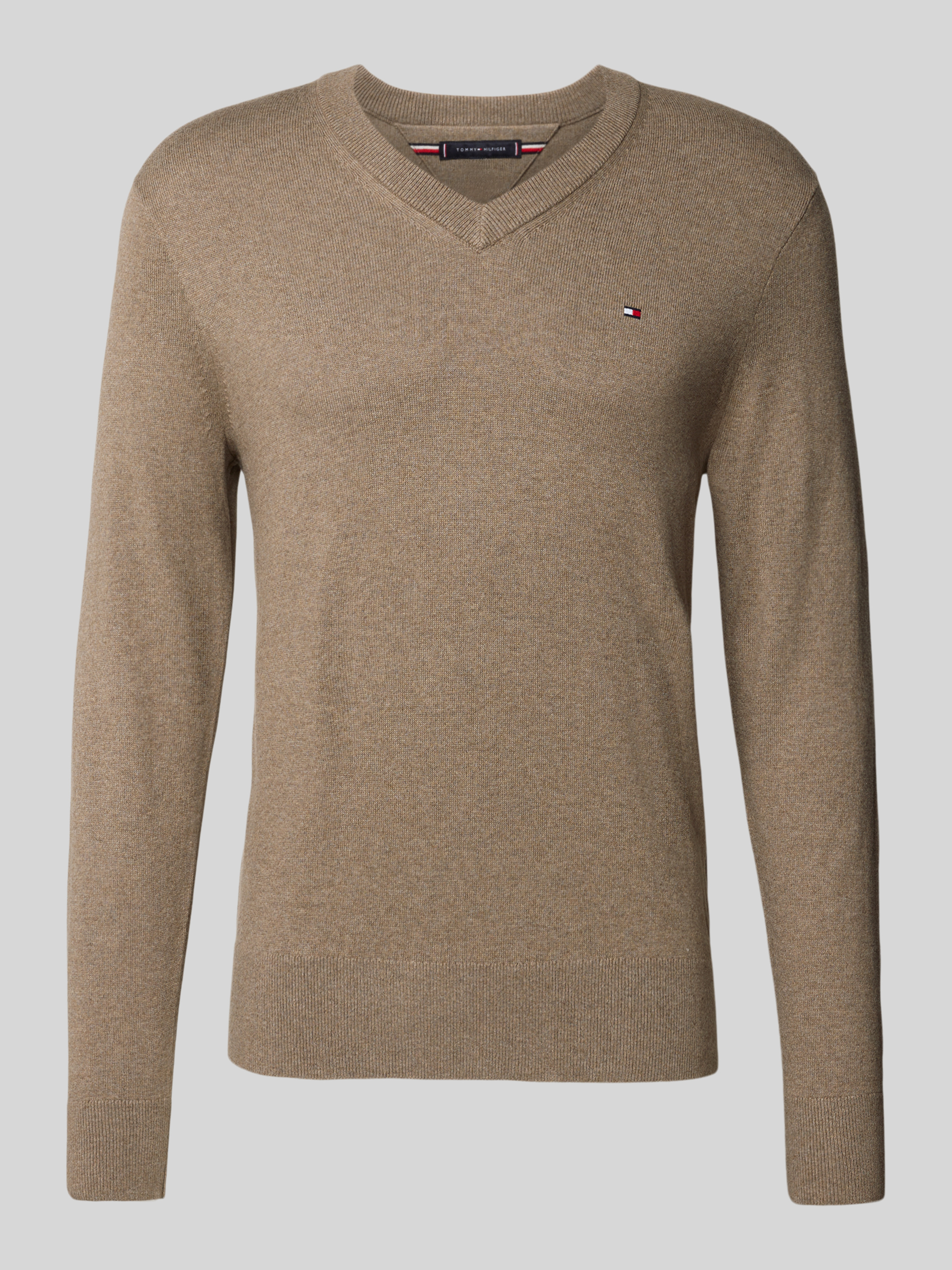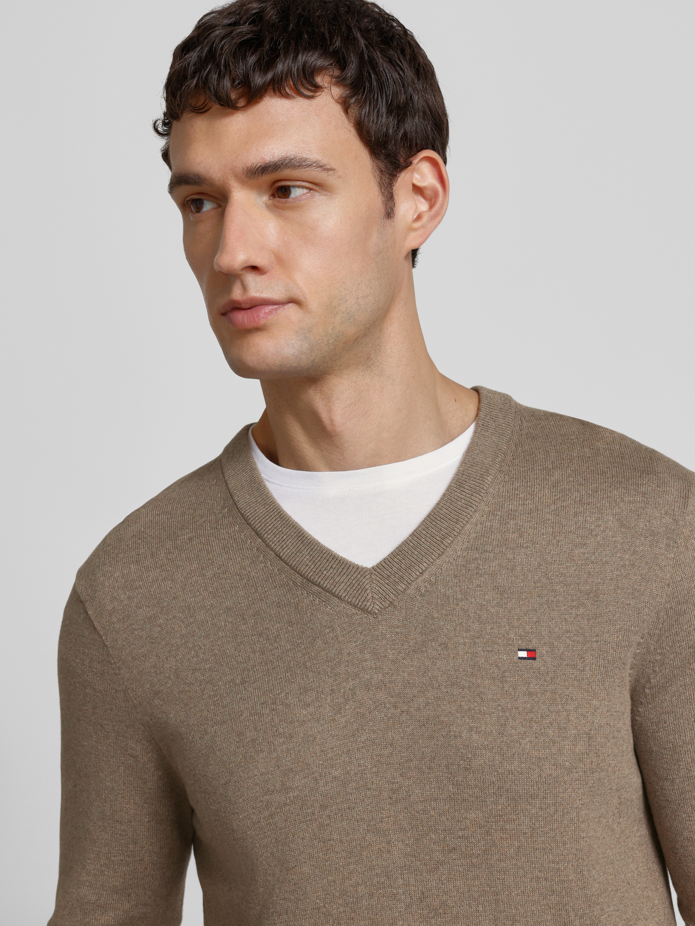 Regular fit pullover van een mix van katoen en kasjmier in taupe