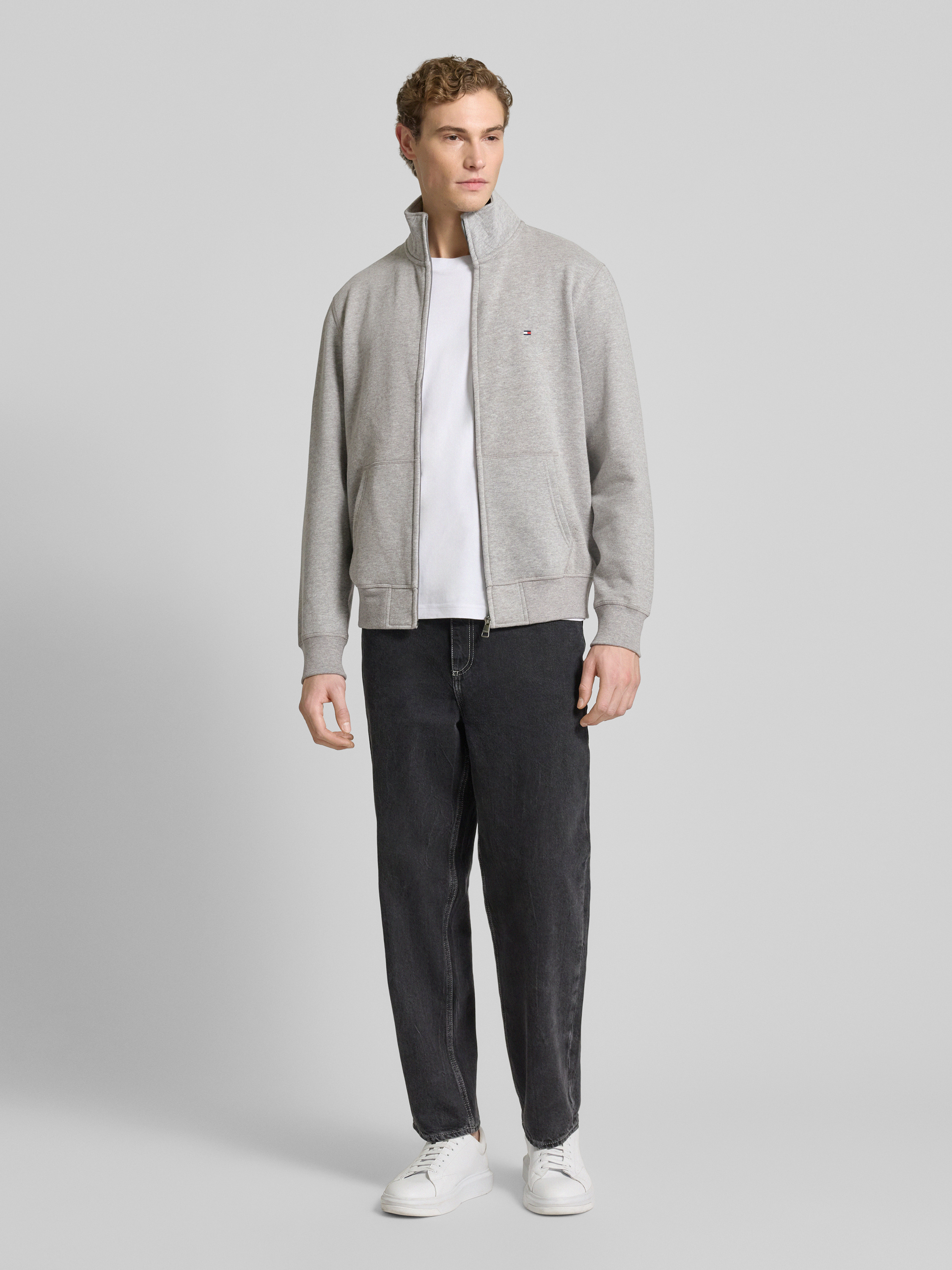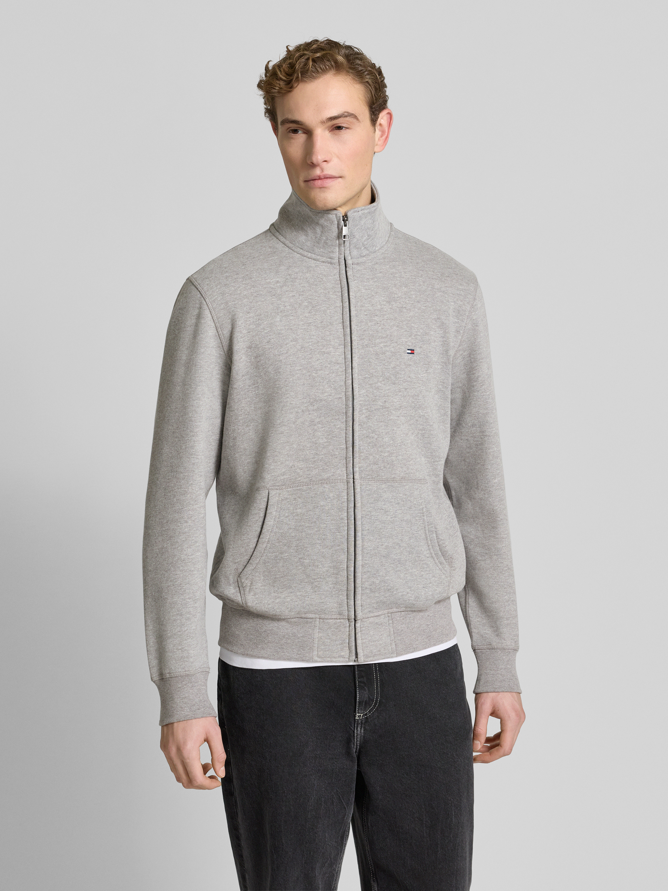 Regular fit sweatjack van katoenmix in middengrijs gemêleerd