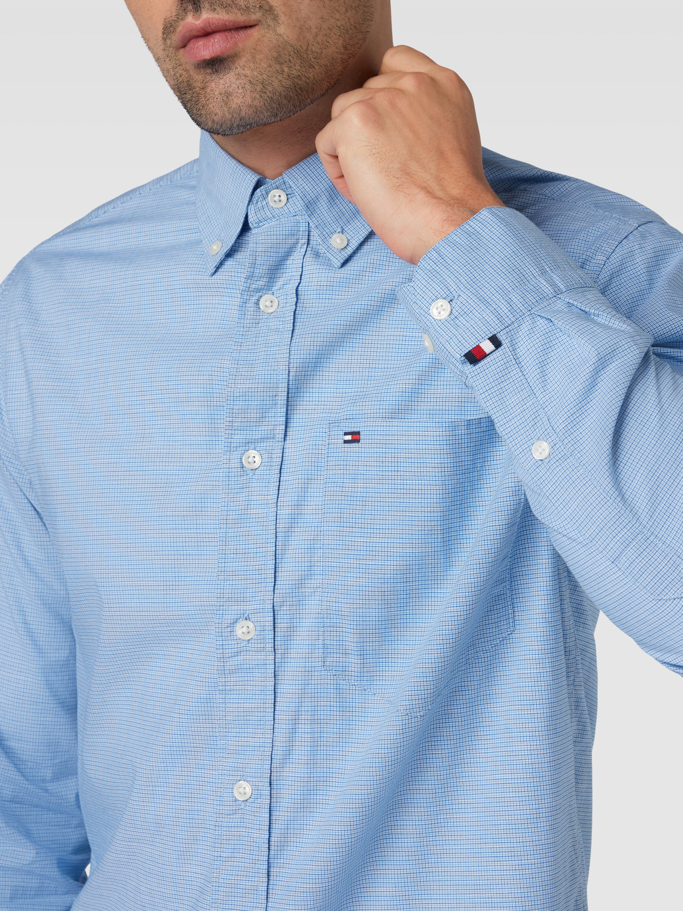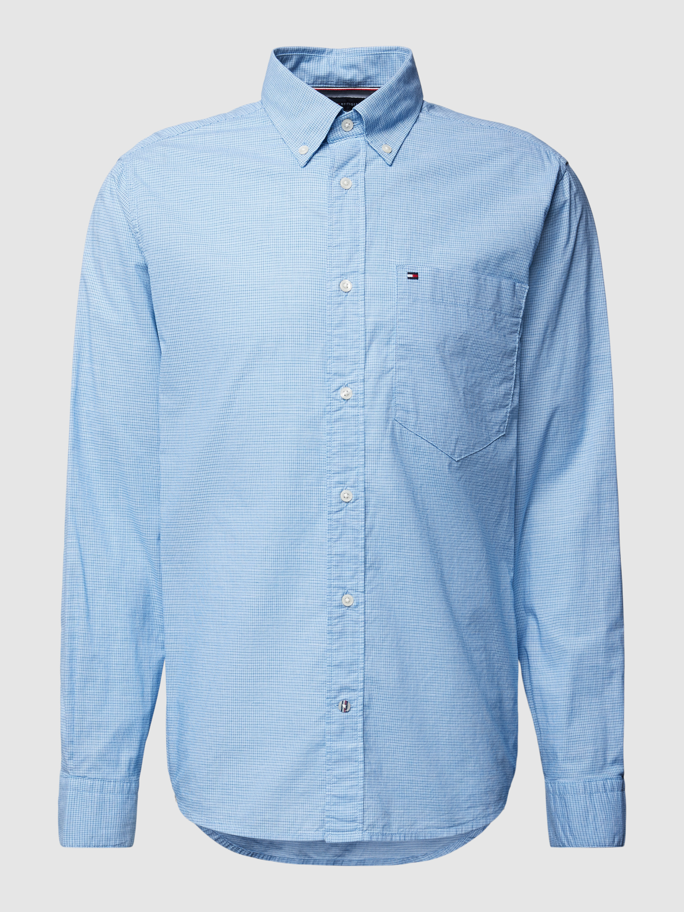 Regular fit vrijetijdsoverhemd met rasterruit, model 'HOUNDSTOOTH' in oceaanblauw
