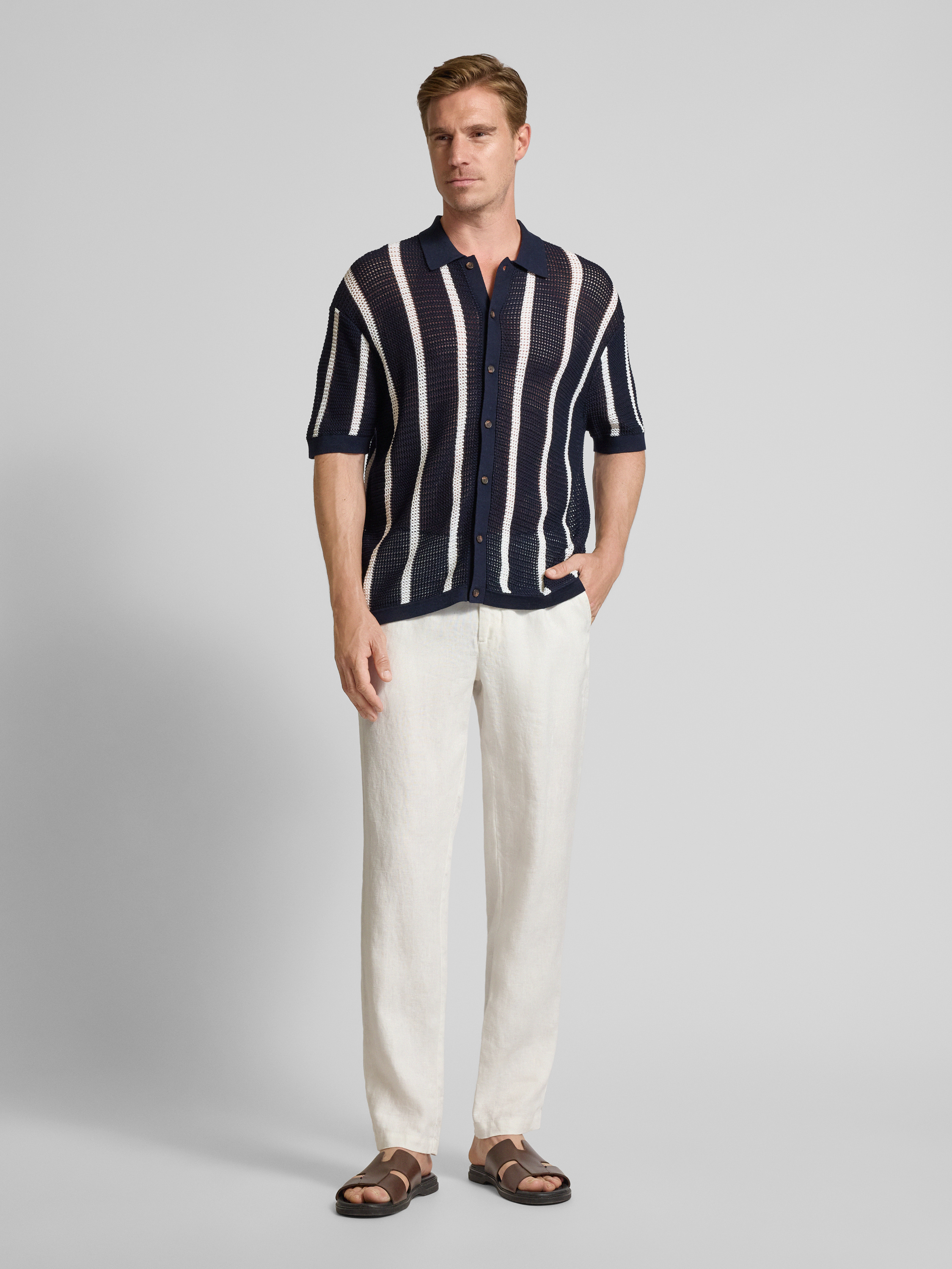 Regular fit linnen broek met riemlussen, model 'Pandrup'