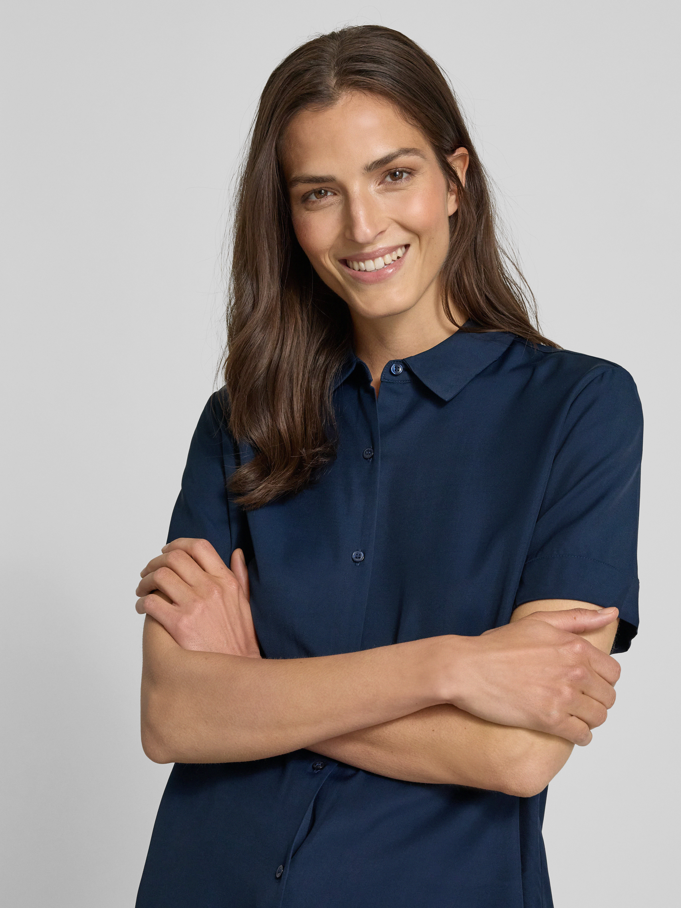 Relaxed fit blouse met korte mouwen in marineblauw
