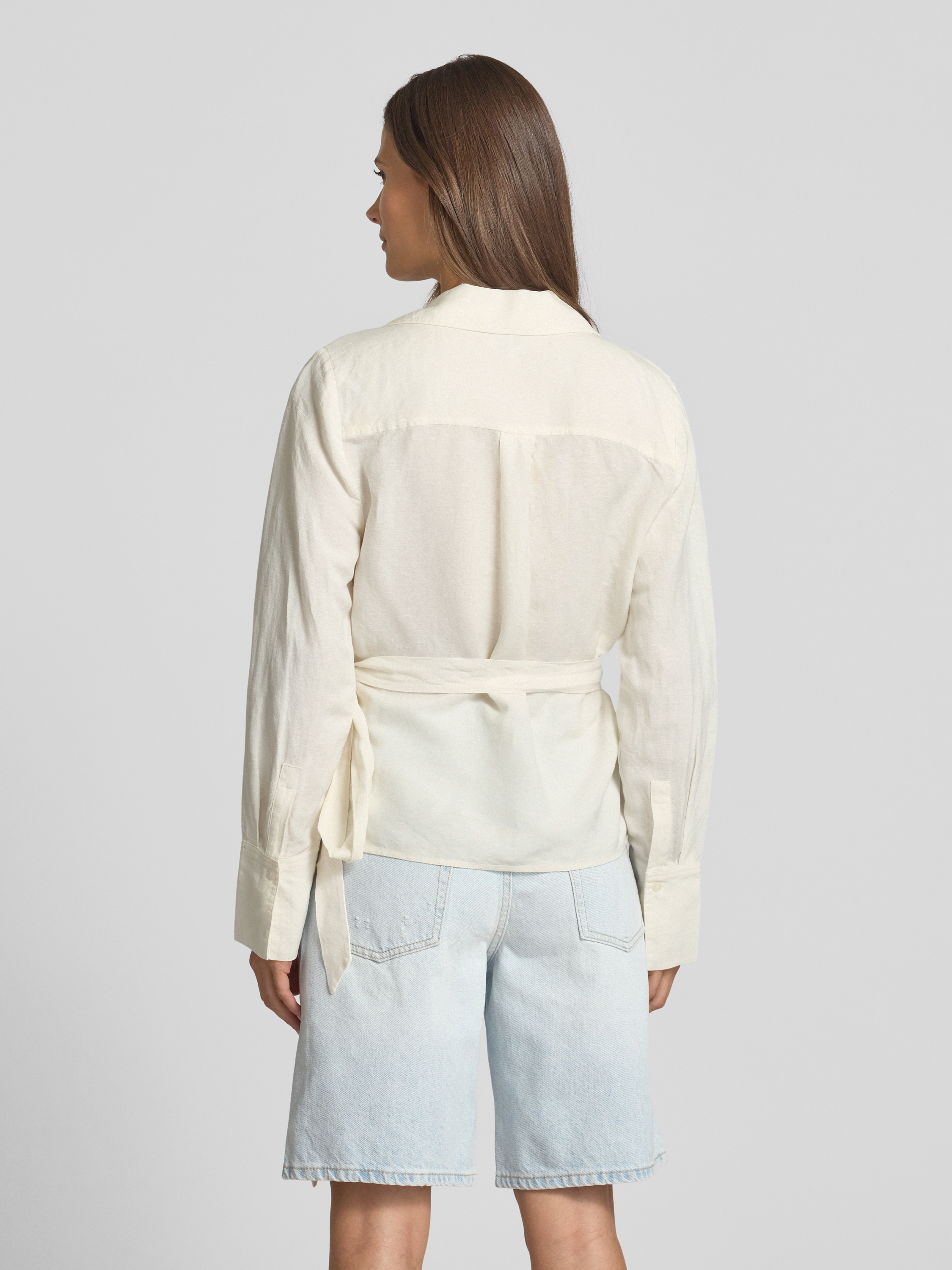 Relaxed fit blouse van een mix van linnen en viscose in ecru