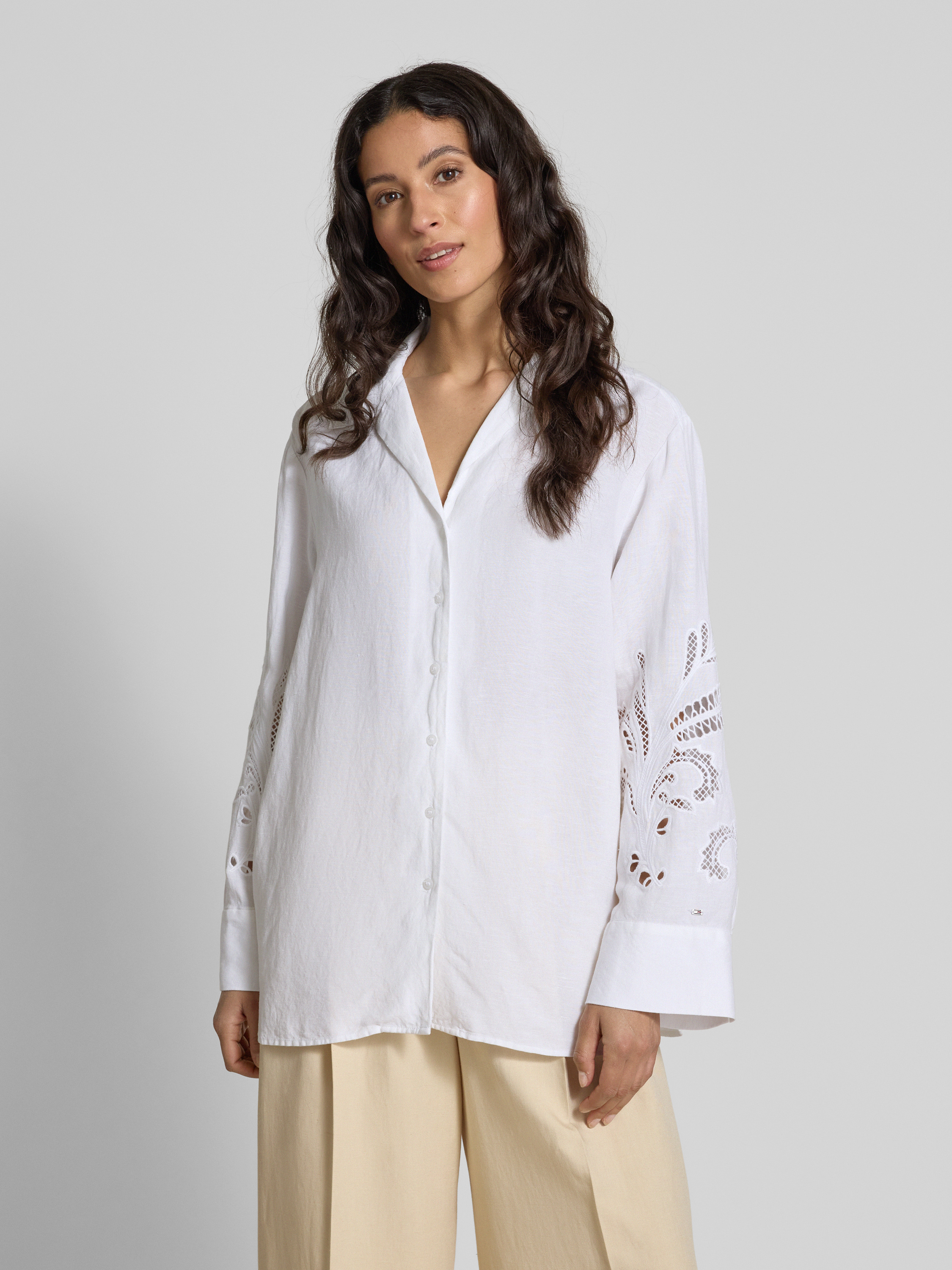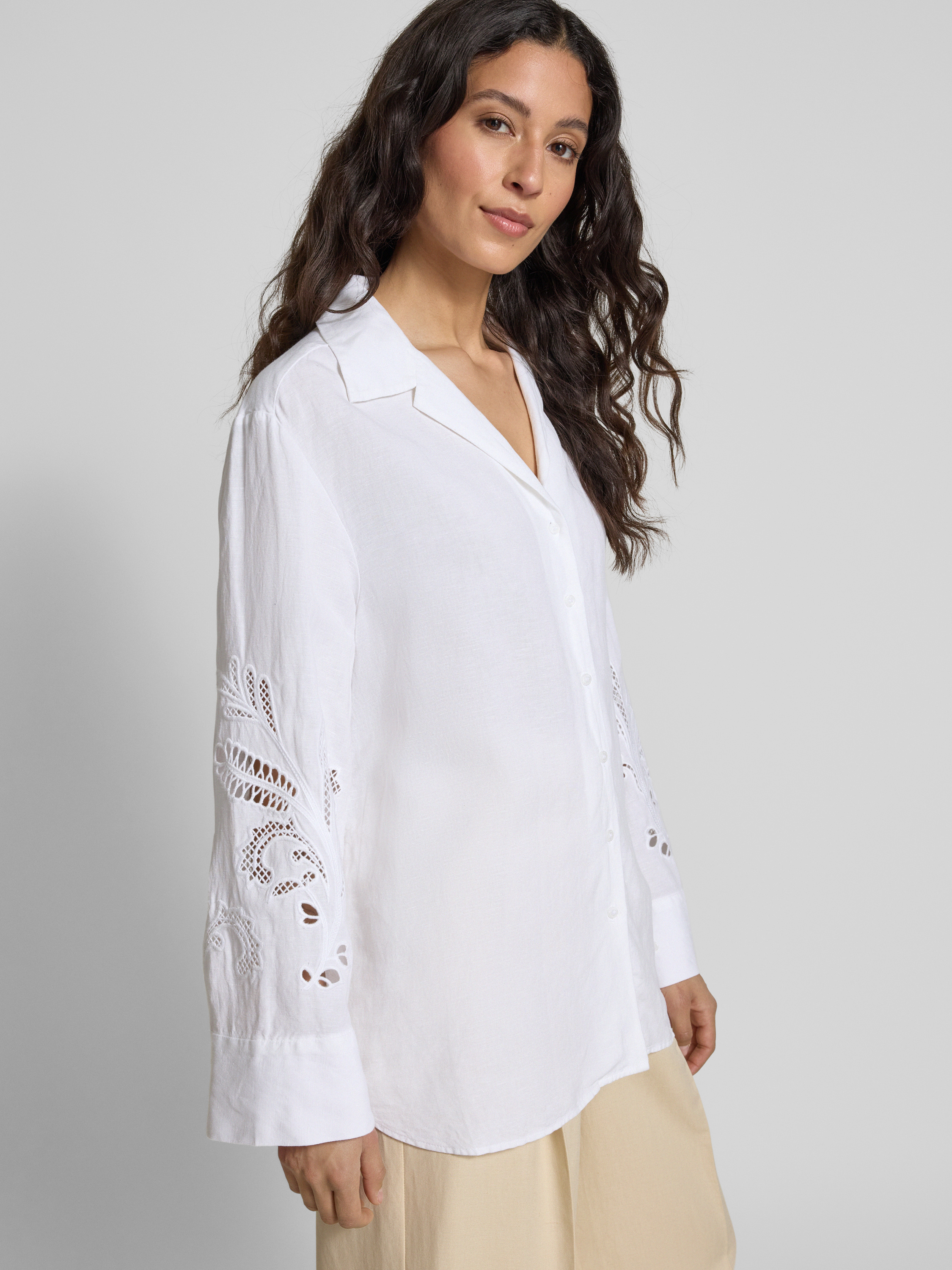 Relaxed fit overhemdblouse van een mix van linnen en viscose in wit
