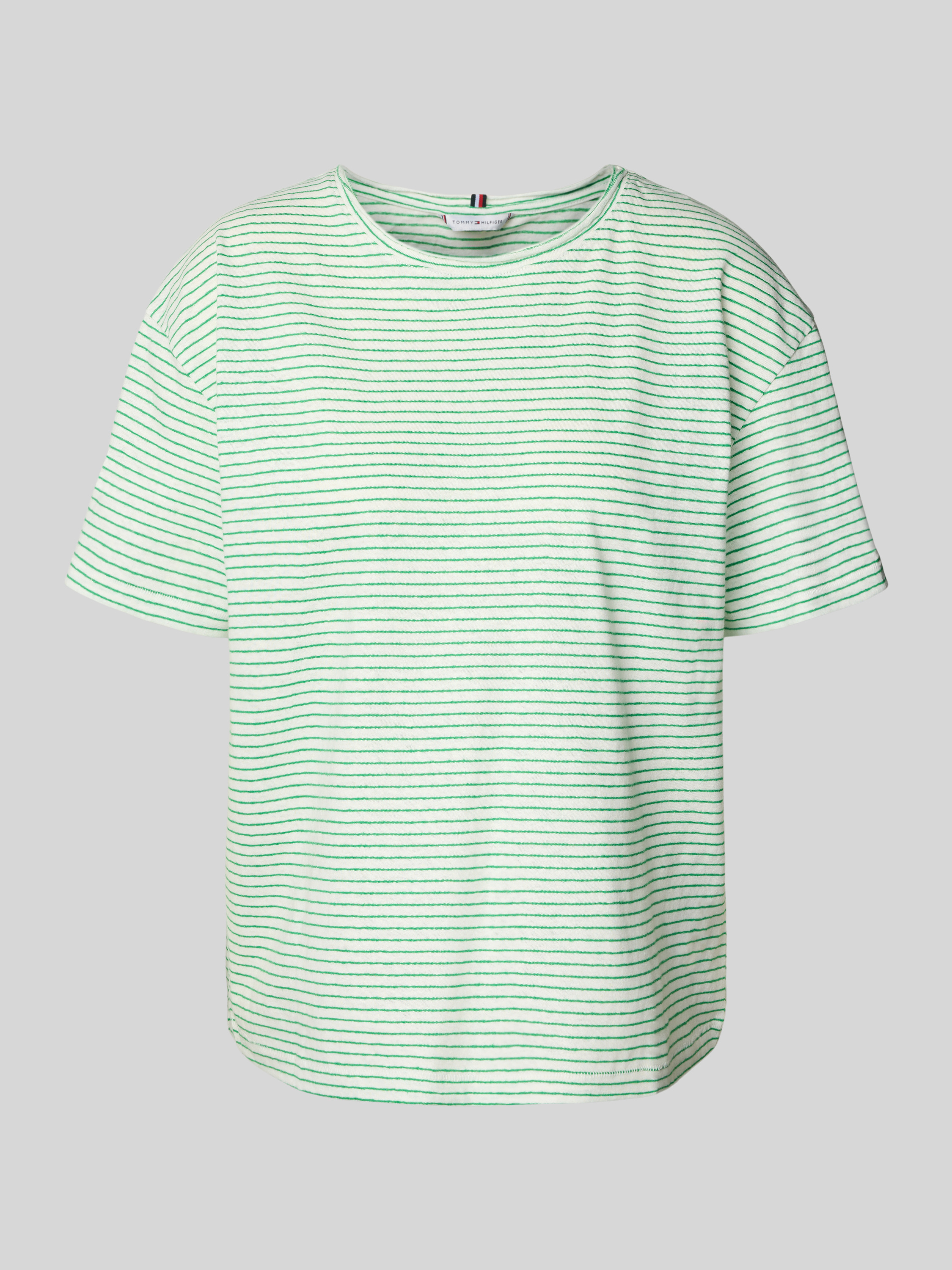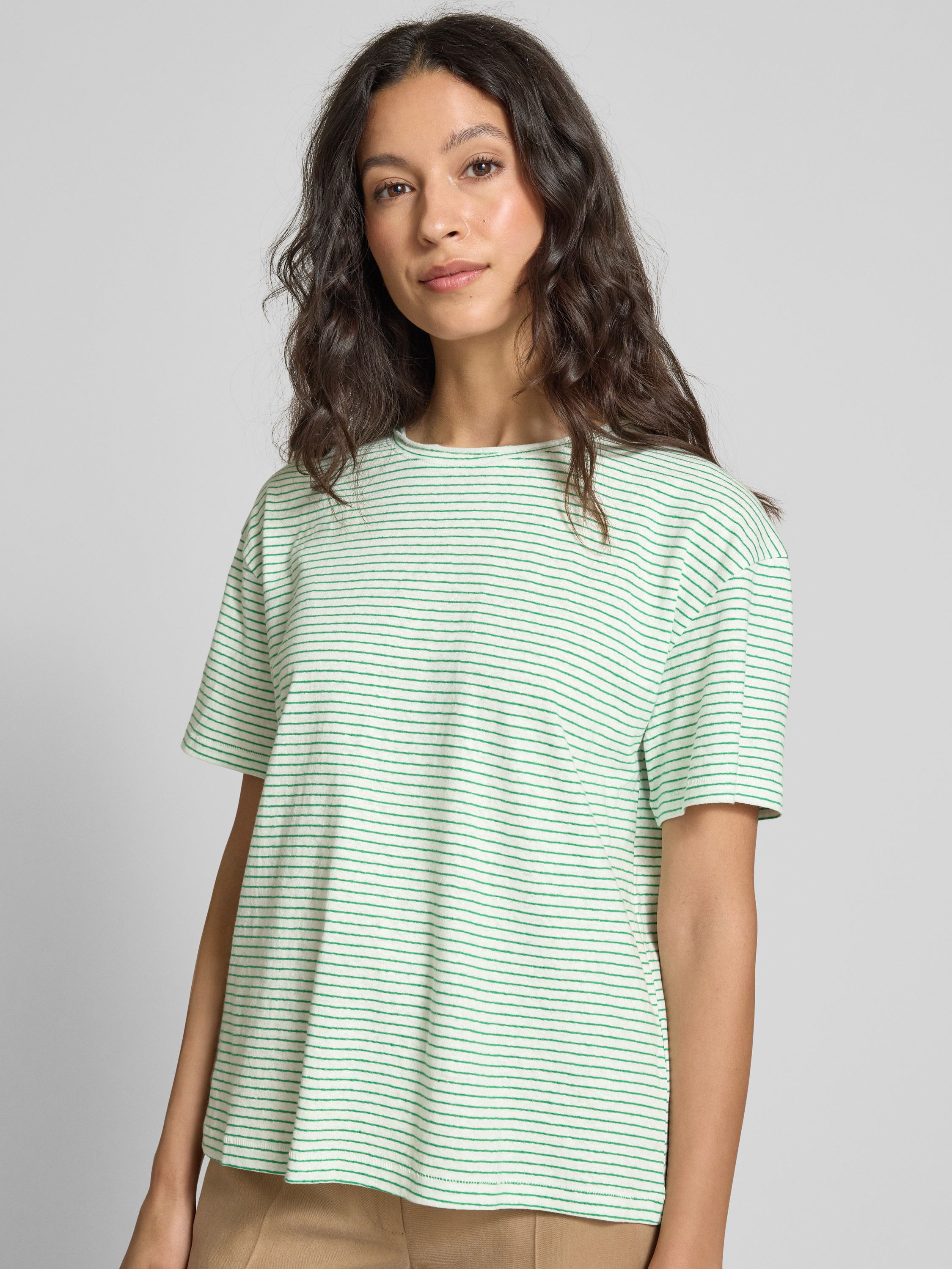 Relaxed fit T-shirt van een mix van linnen en katoen in lichtgroen