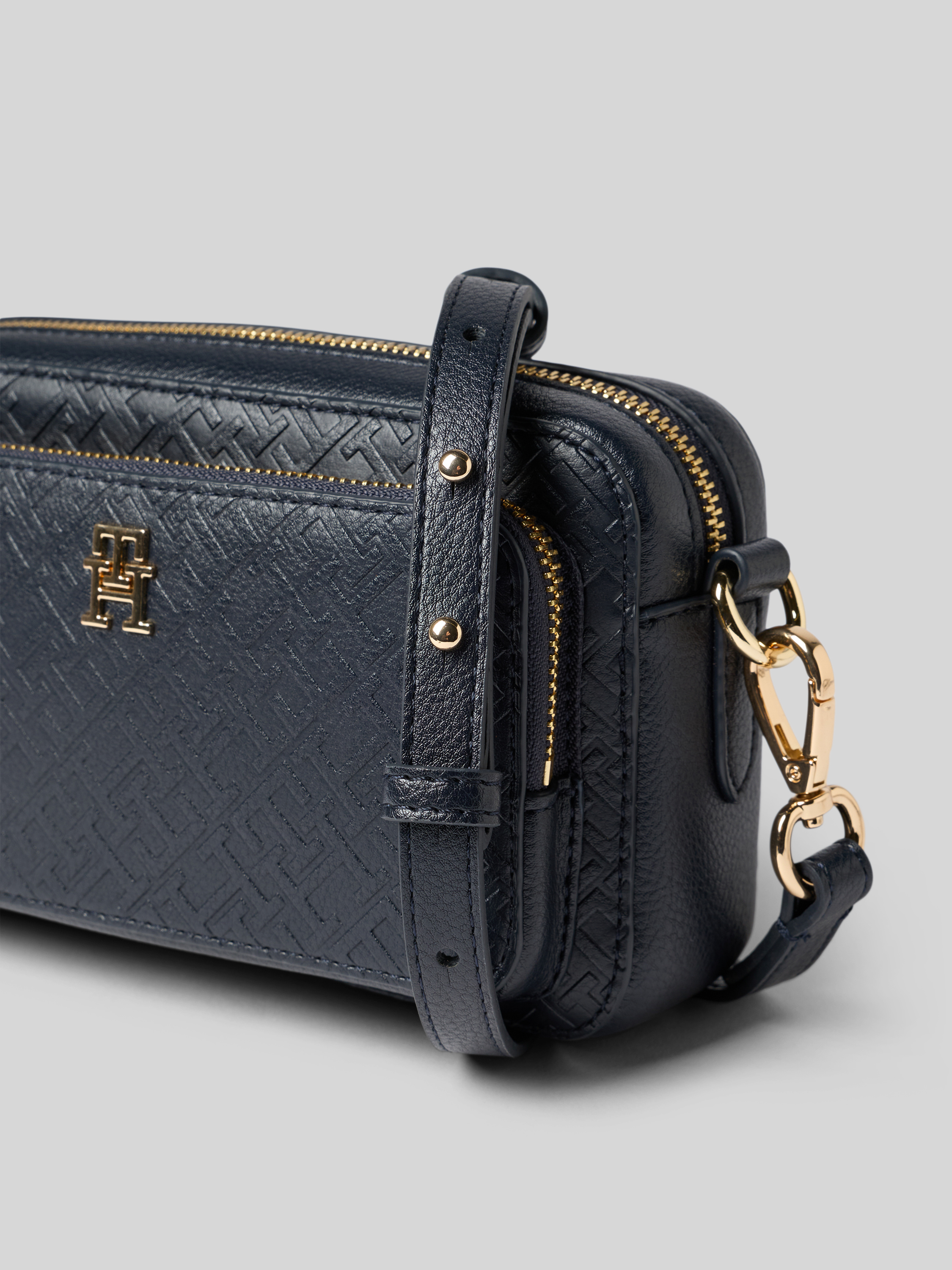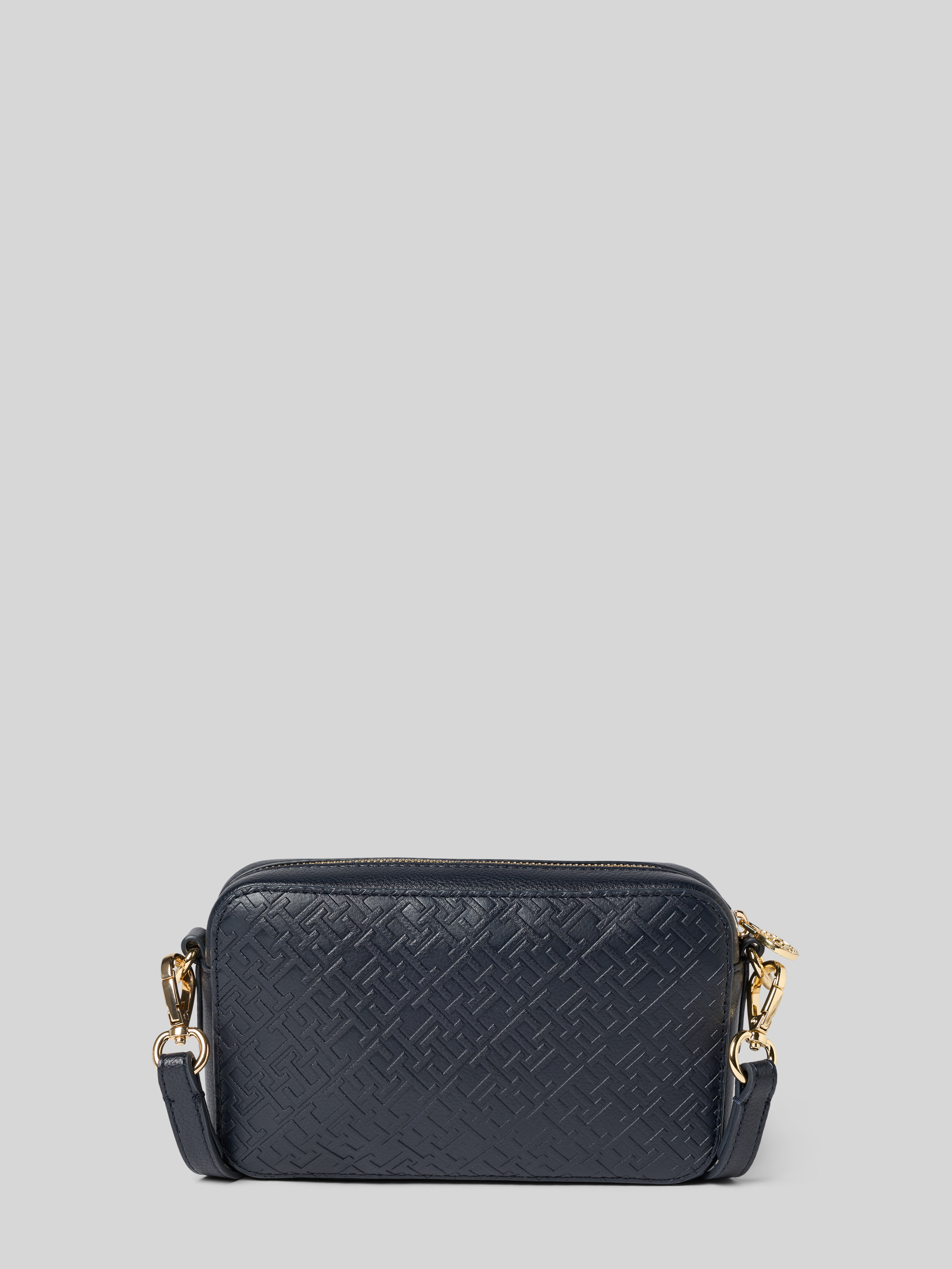 Schoudertas met logo-monogram in reliëf in donkerblauw