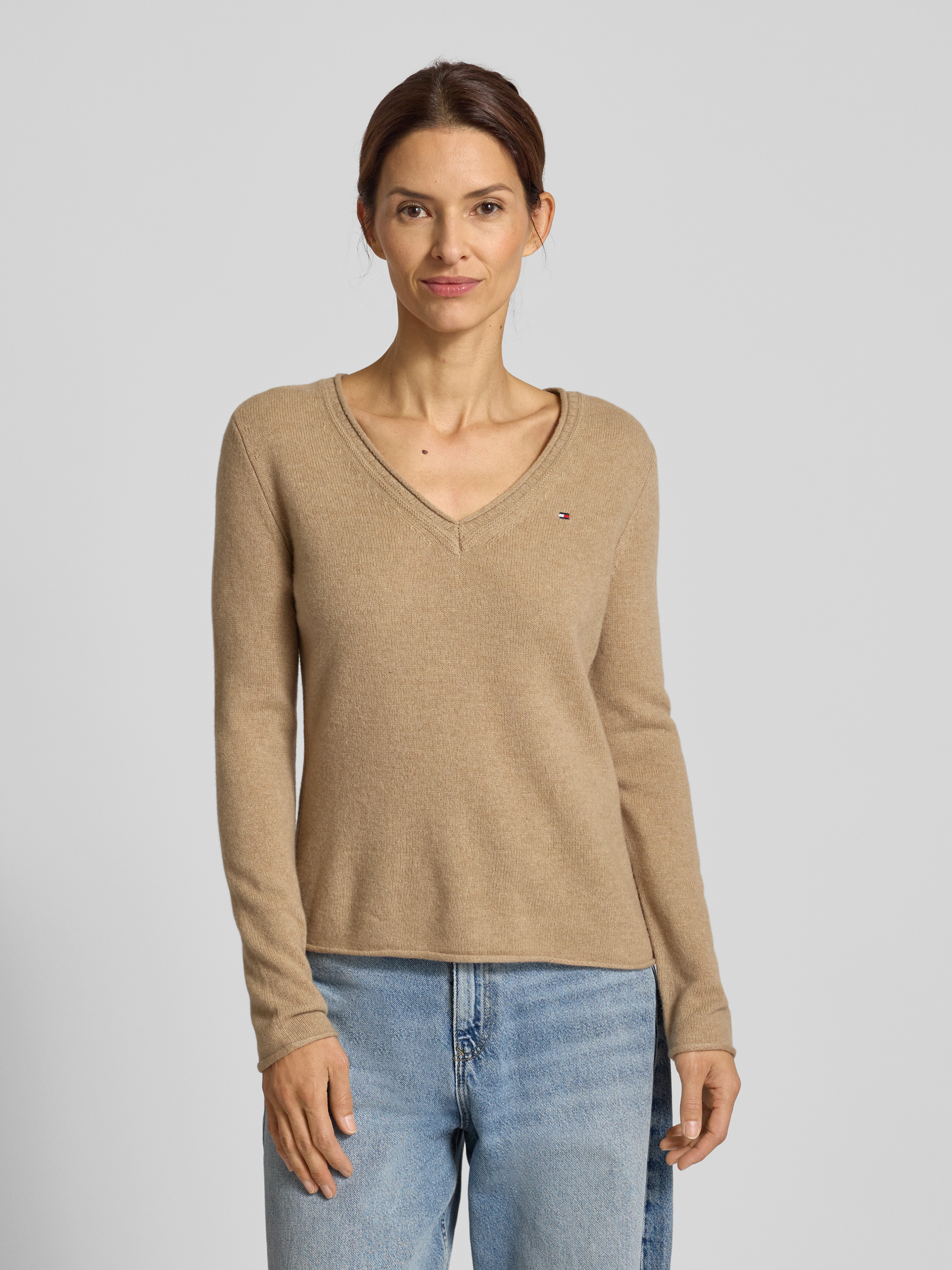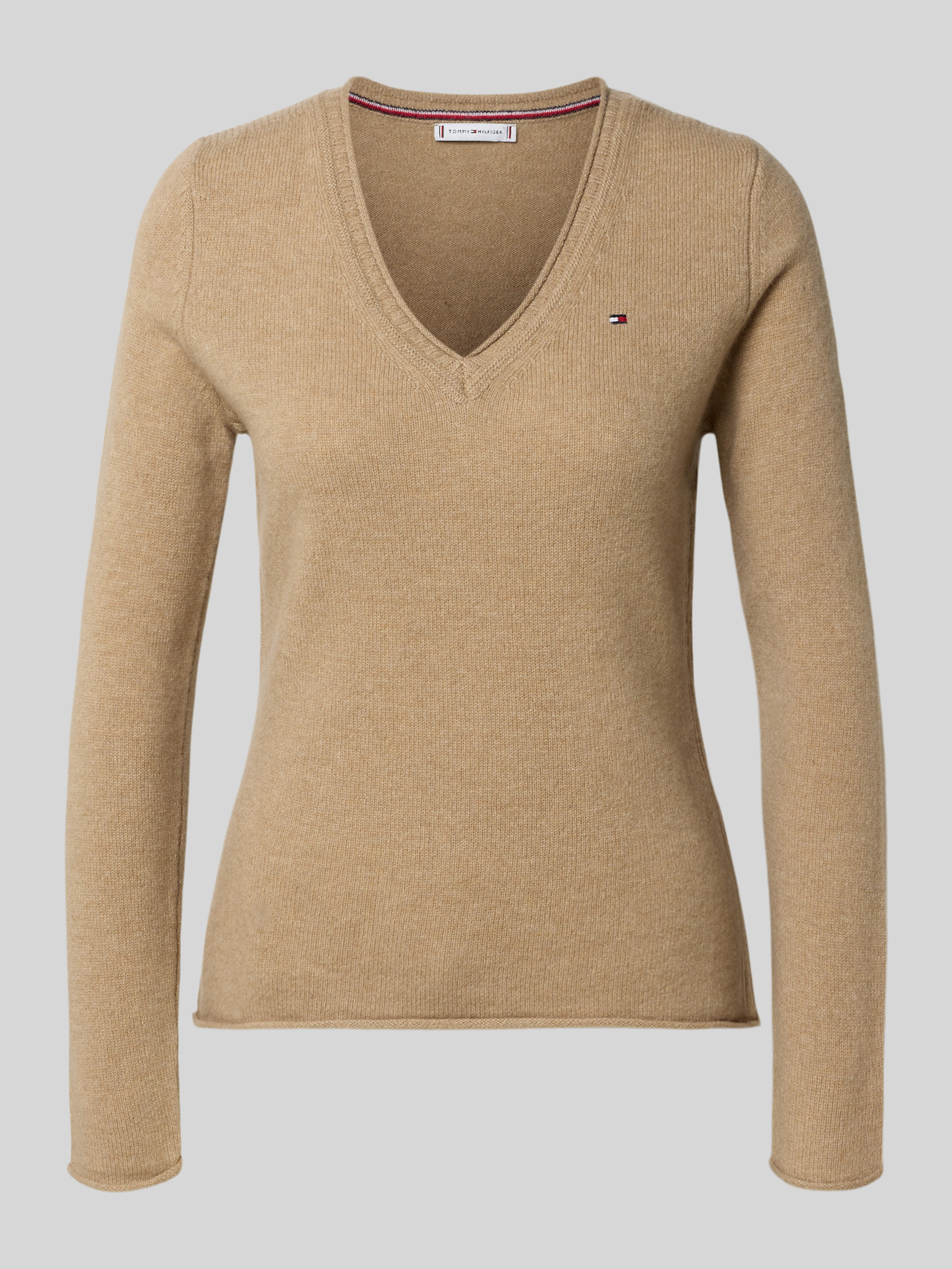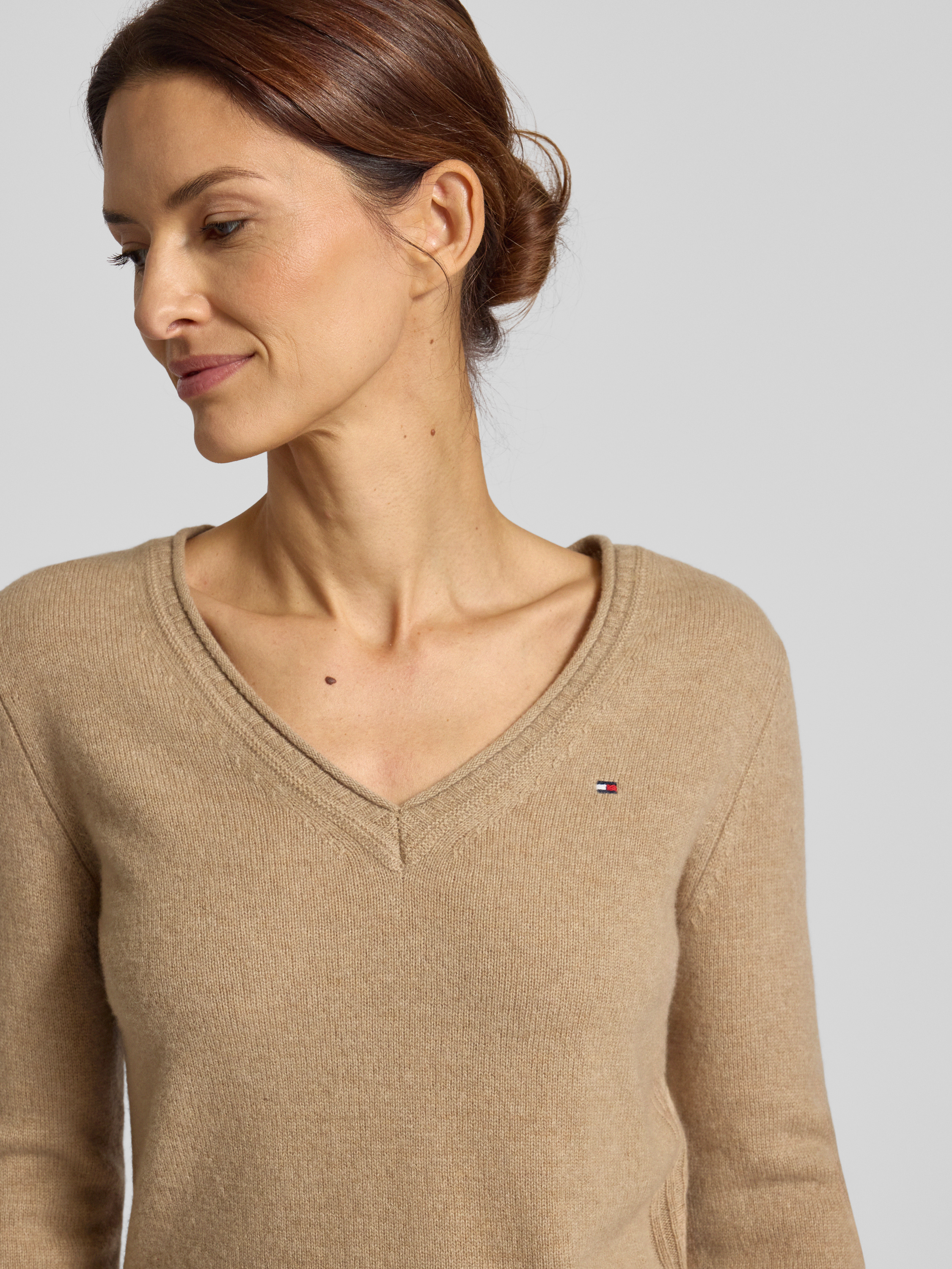 • Tommy Hilfiger Slim fit gebreide pullover van zuivere wol  Camel
