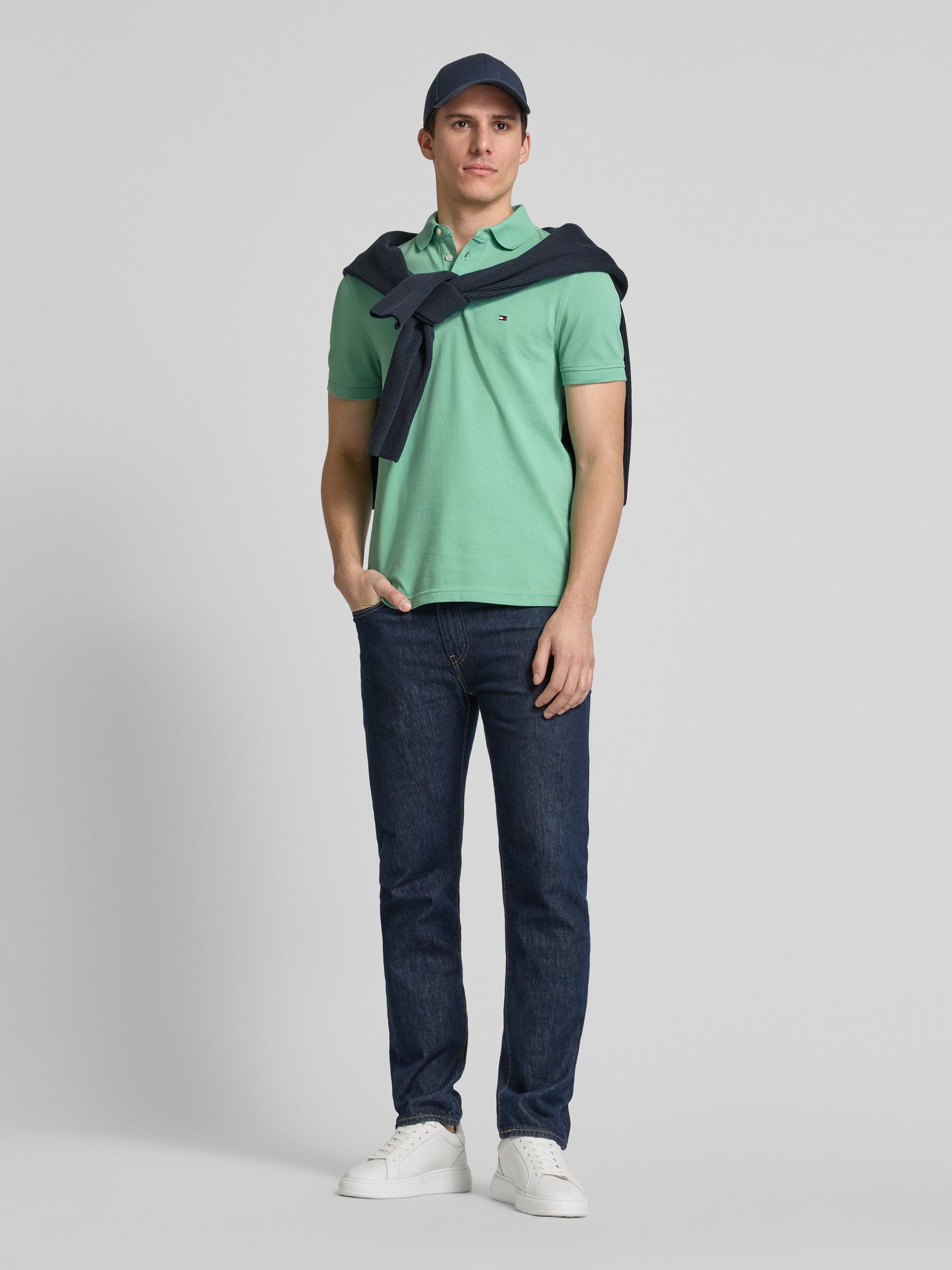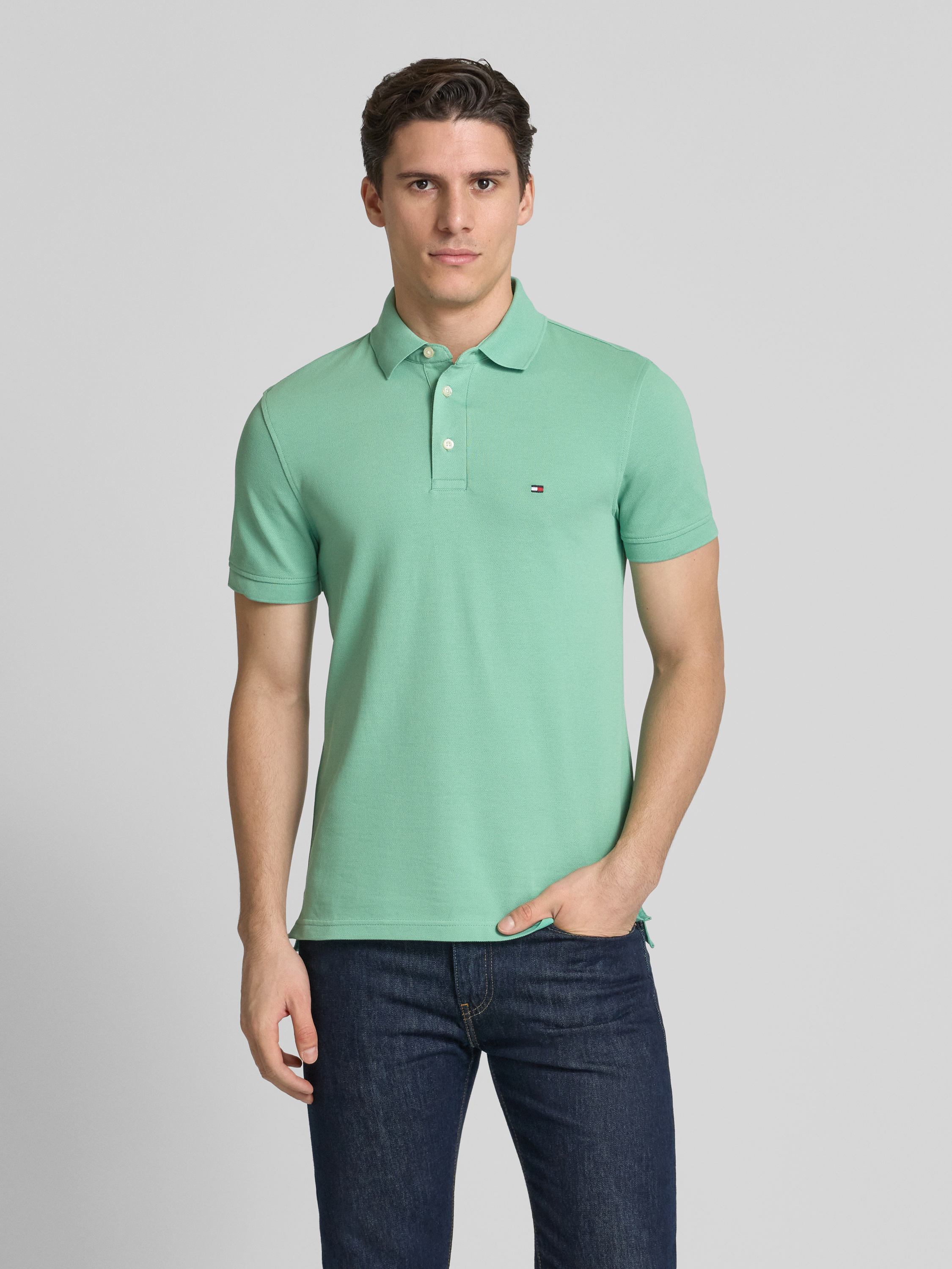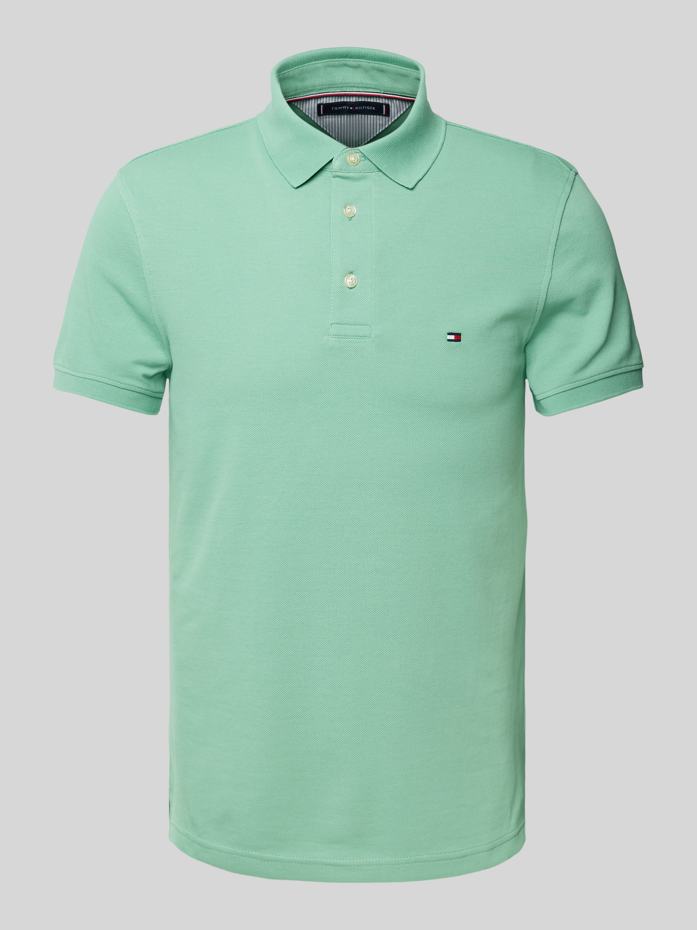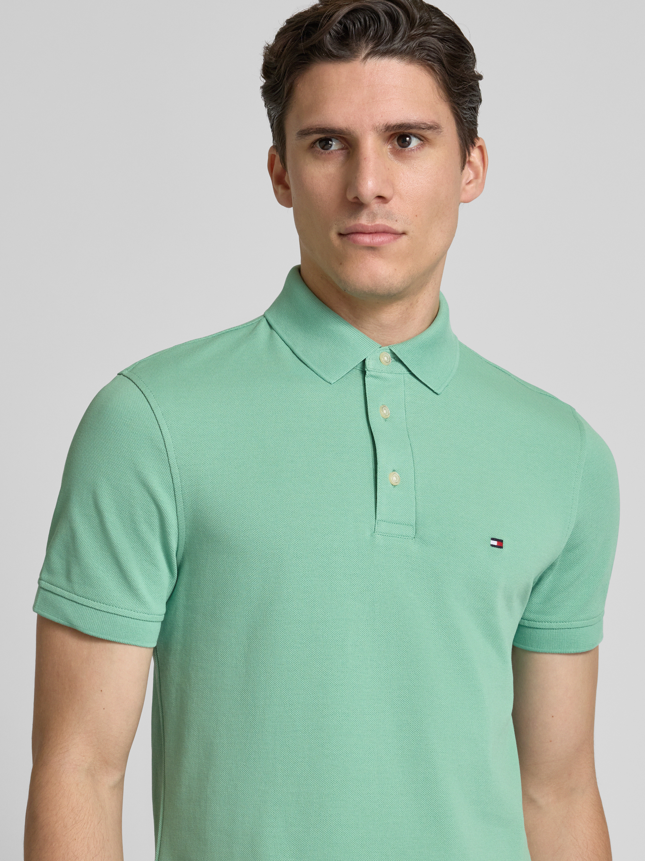 Slim fit poloshirt met logostitching, model '1985' in appeltjesgroen
