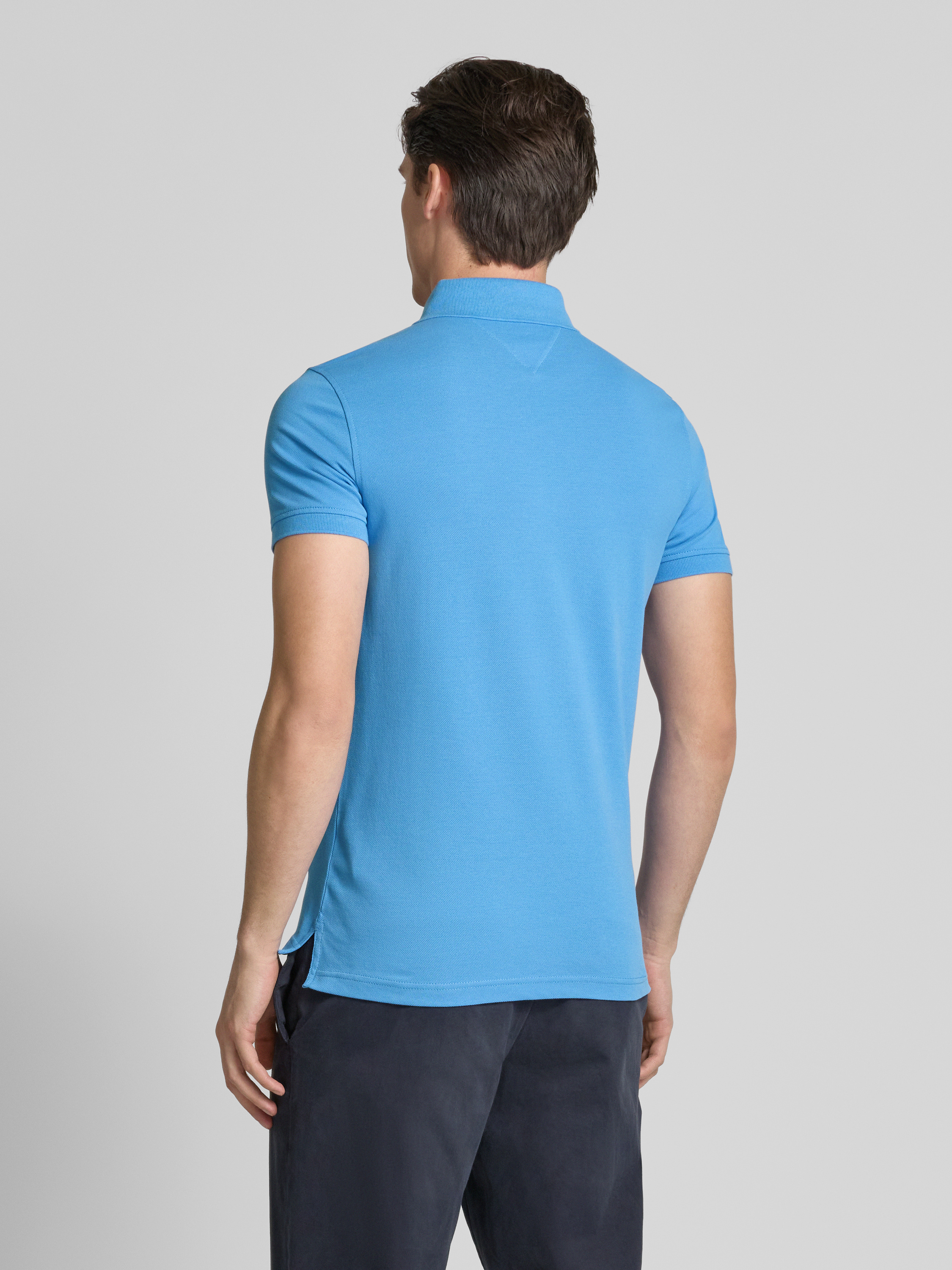 Slim fit poloshirt met logostitching, model '1985' in aquablauw
