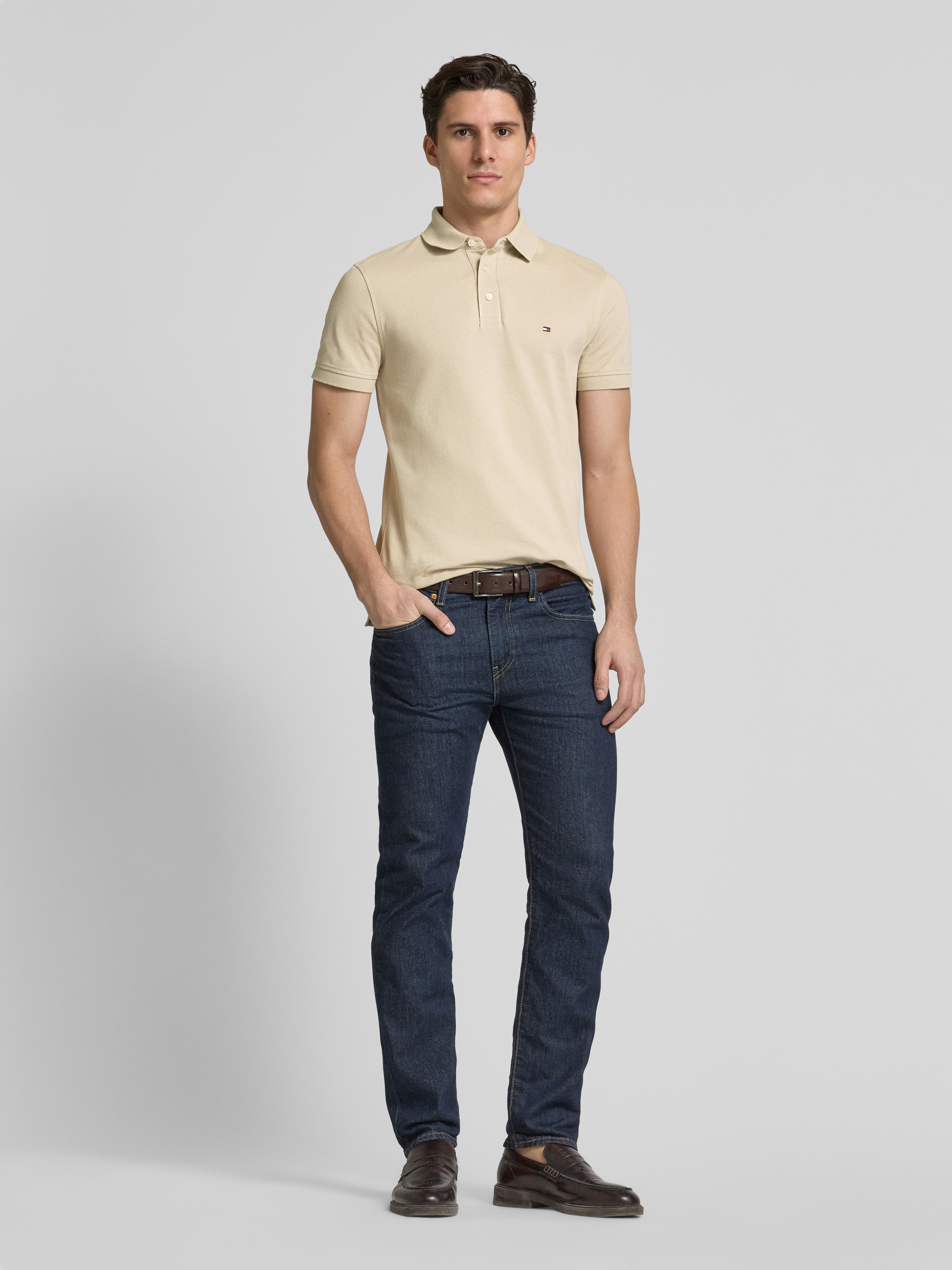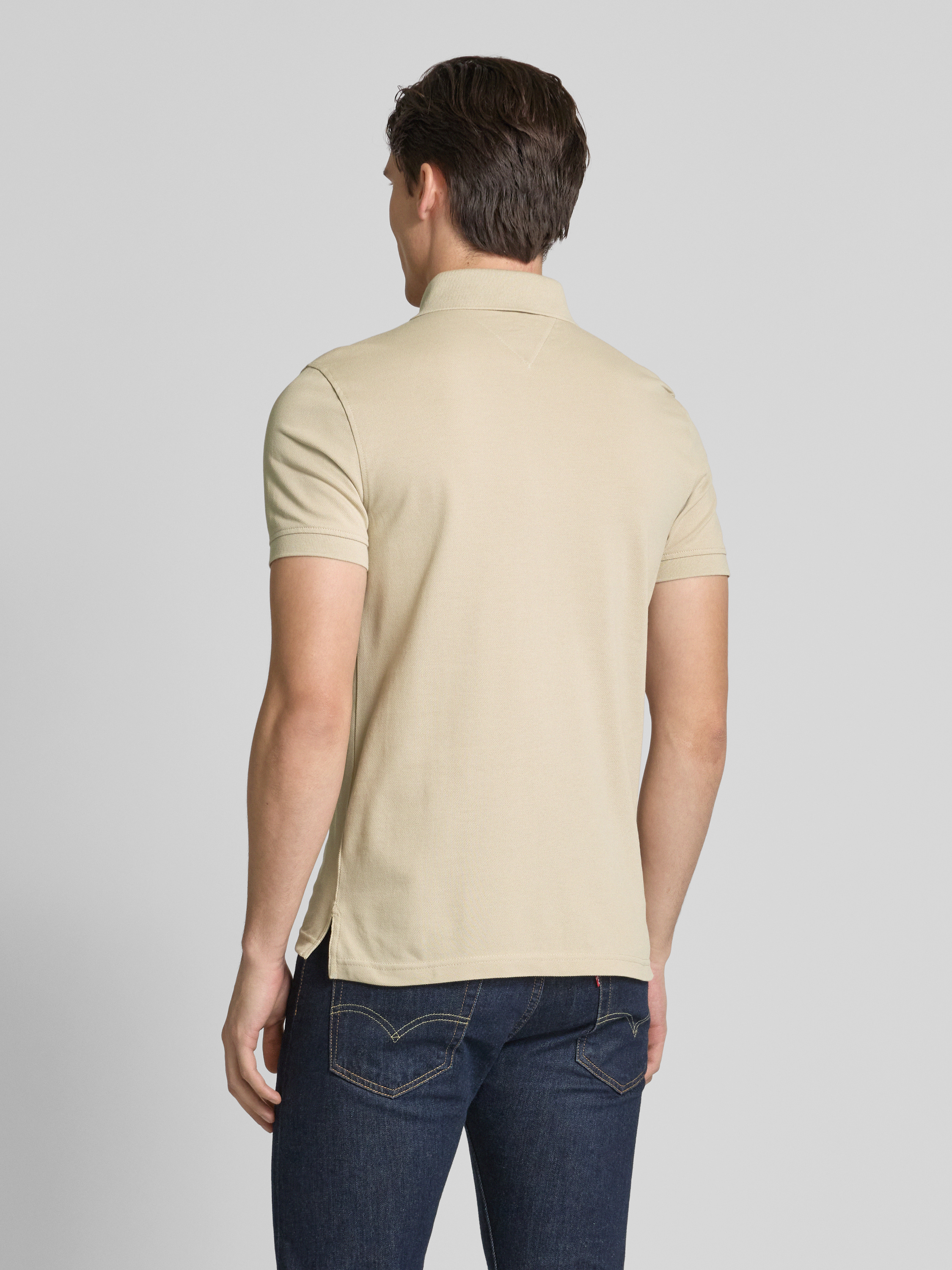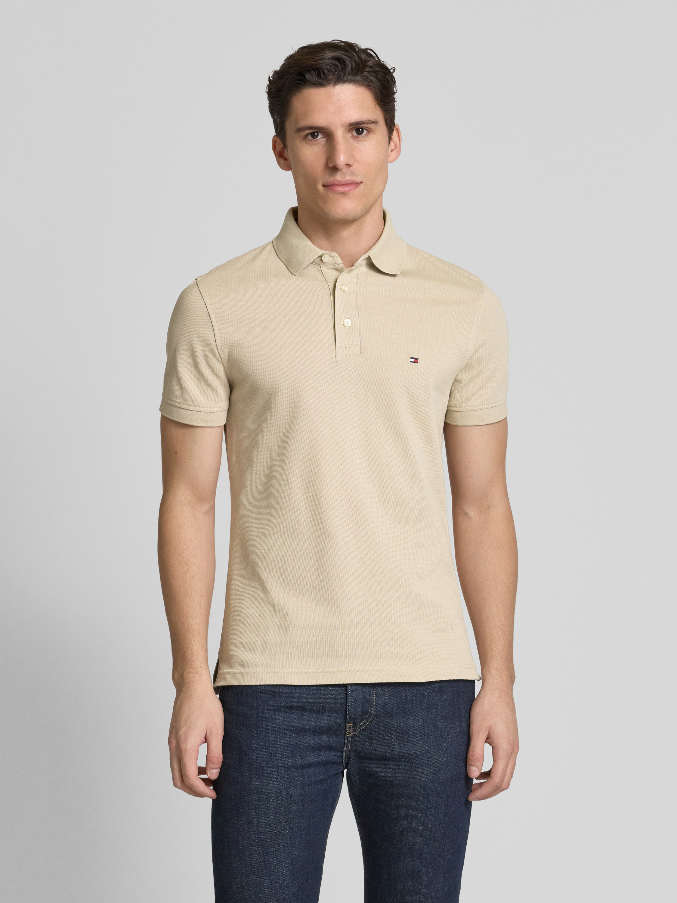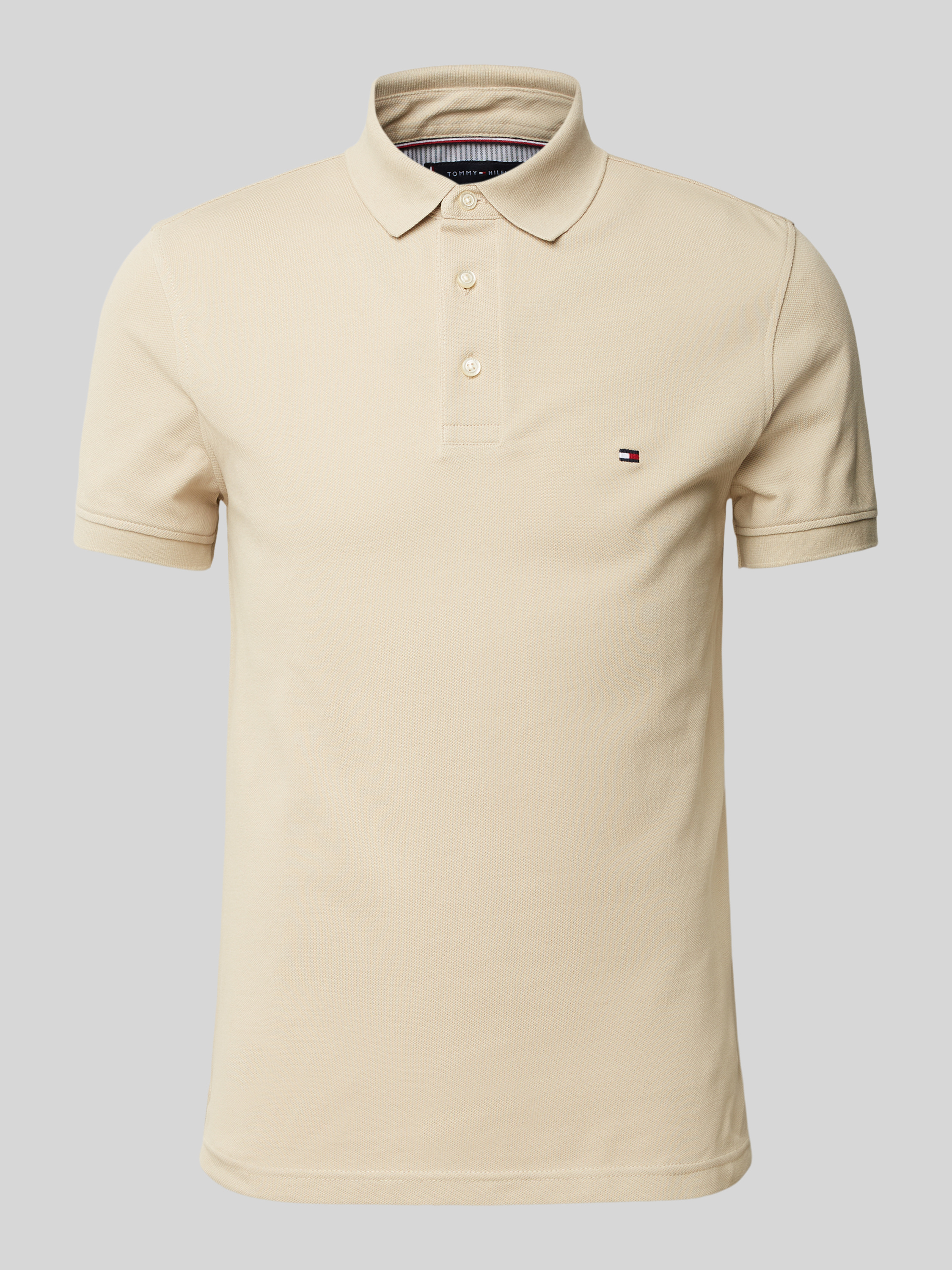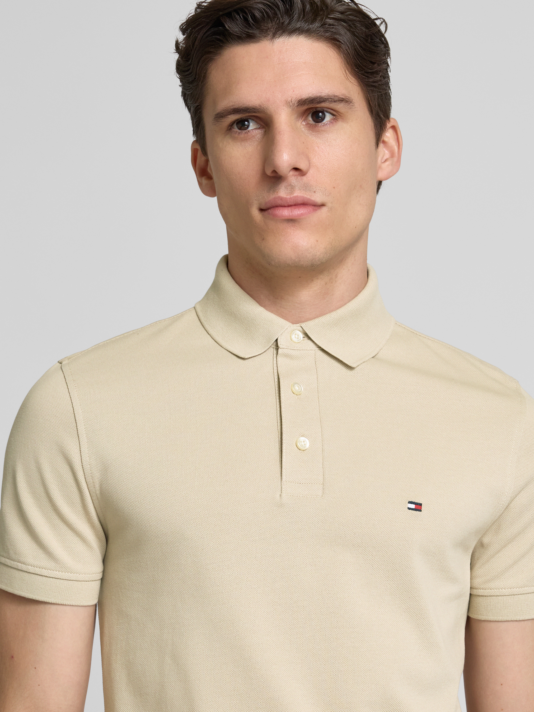 Slim fit poloshirt met logostitching, model '1985' in beige