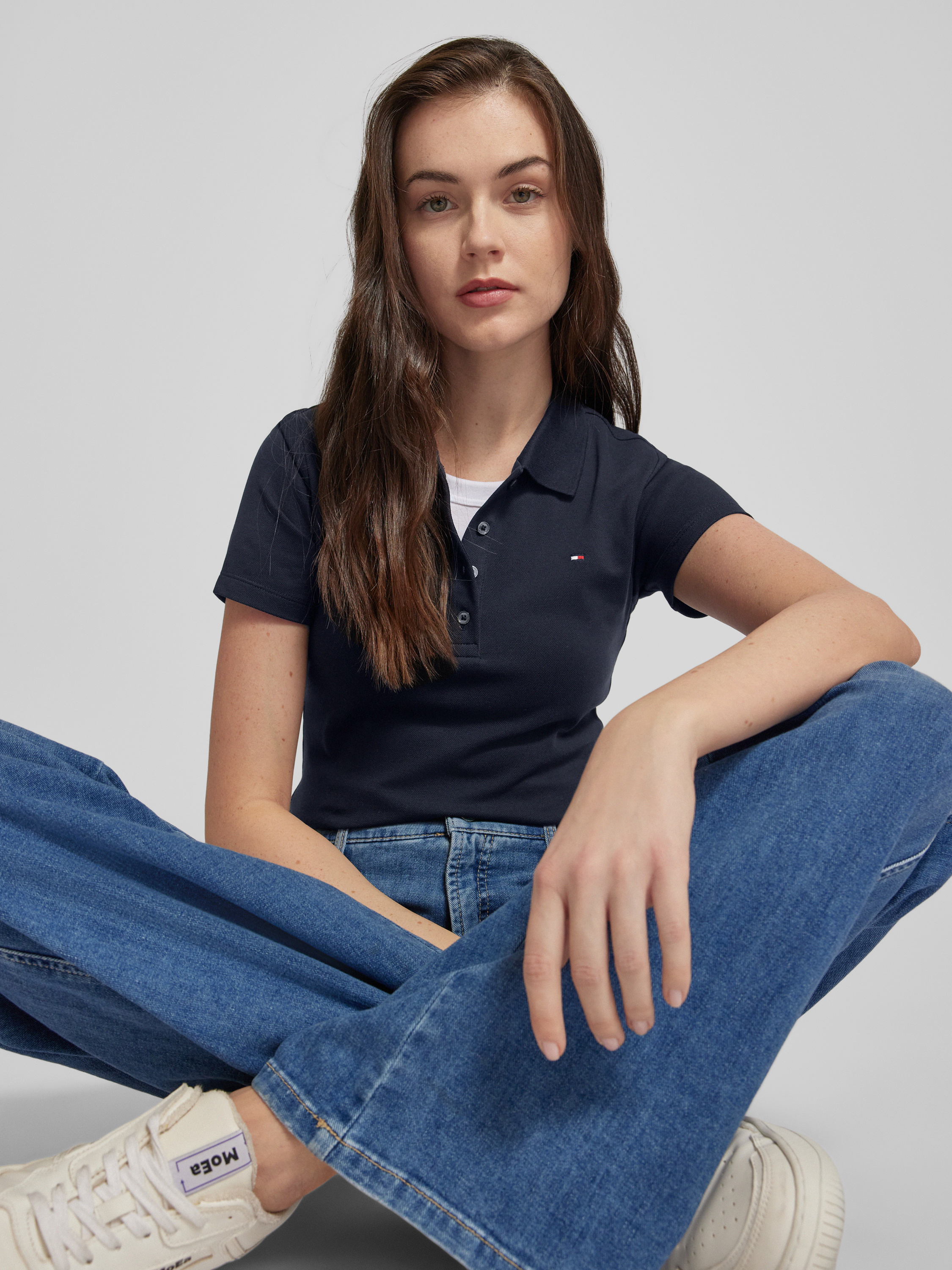 Slim fit poloshirt met logostitching, model '1985' in marineblauw