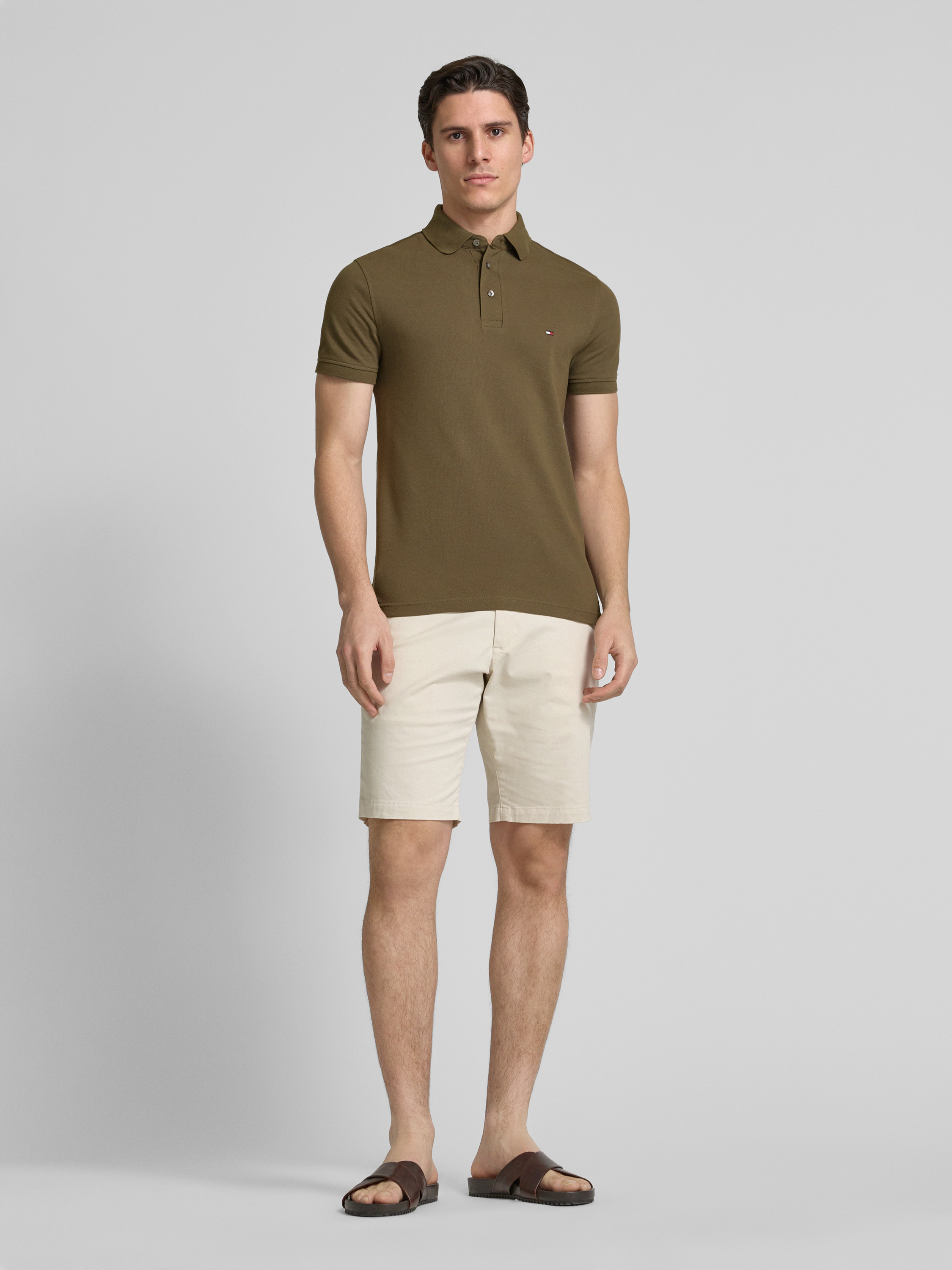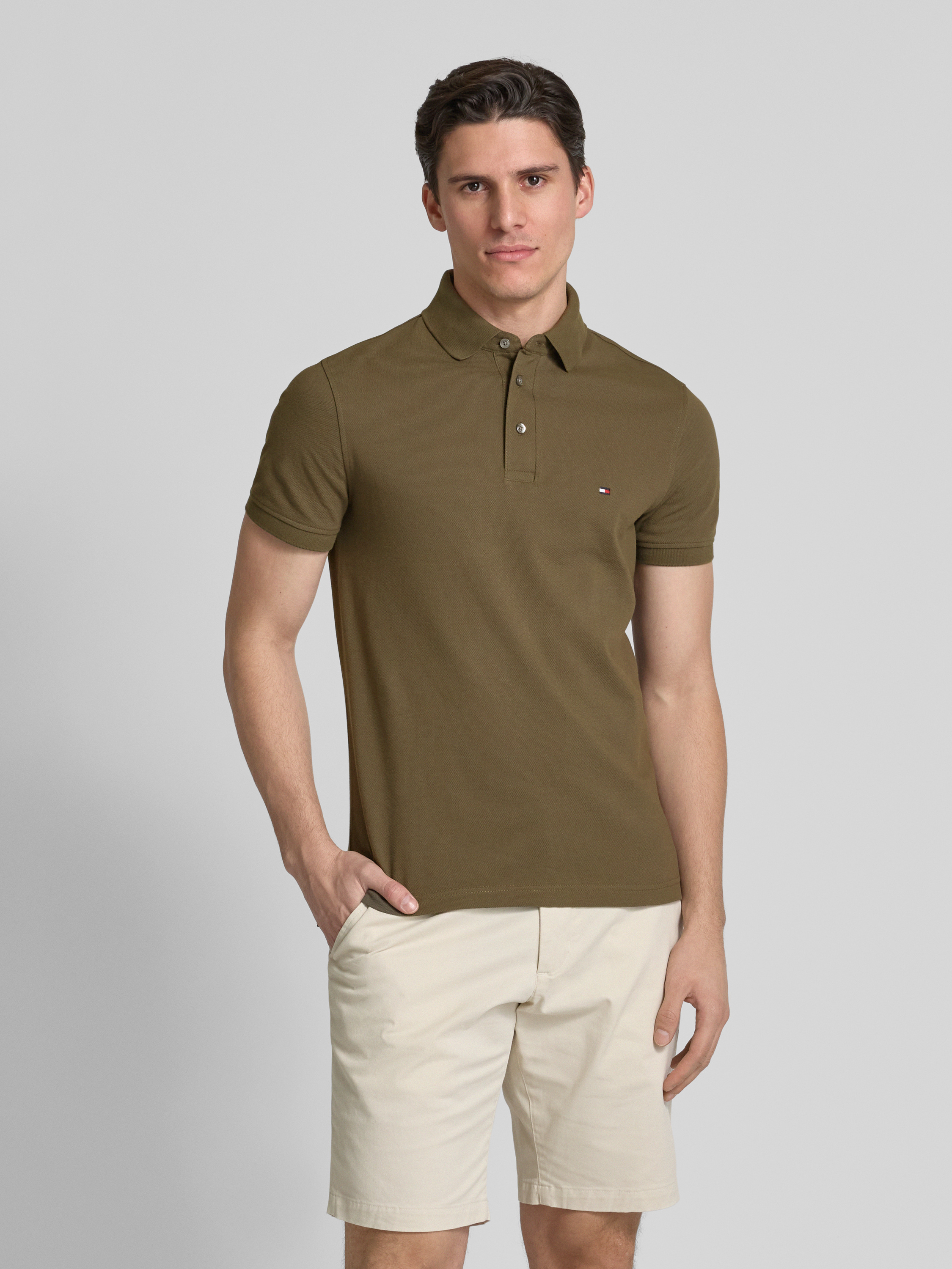 Slim fit poloshirt met logostitching, model '1985' in olijfgroen