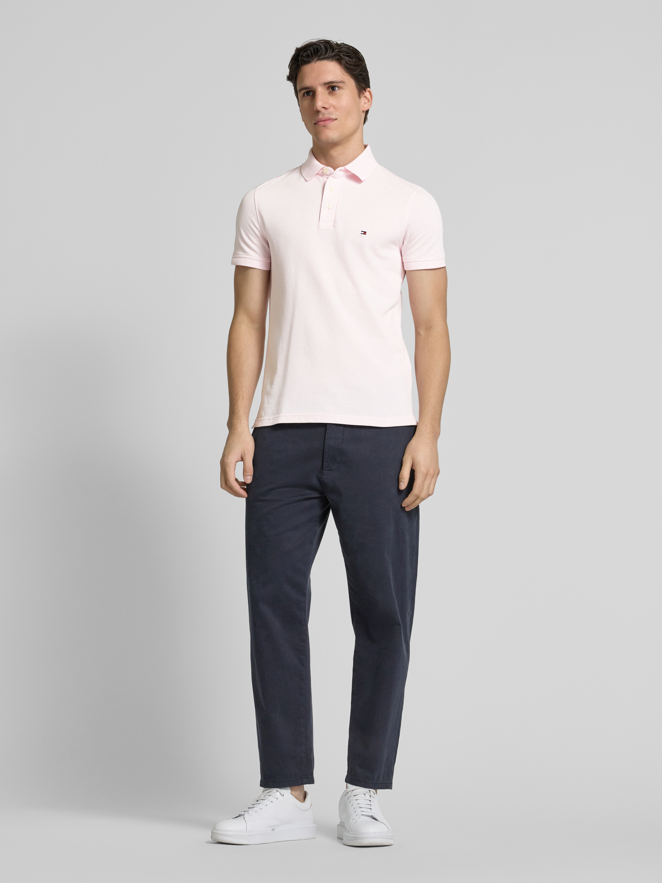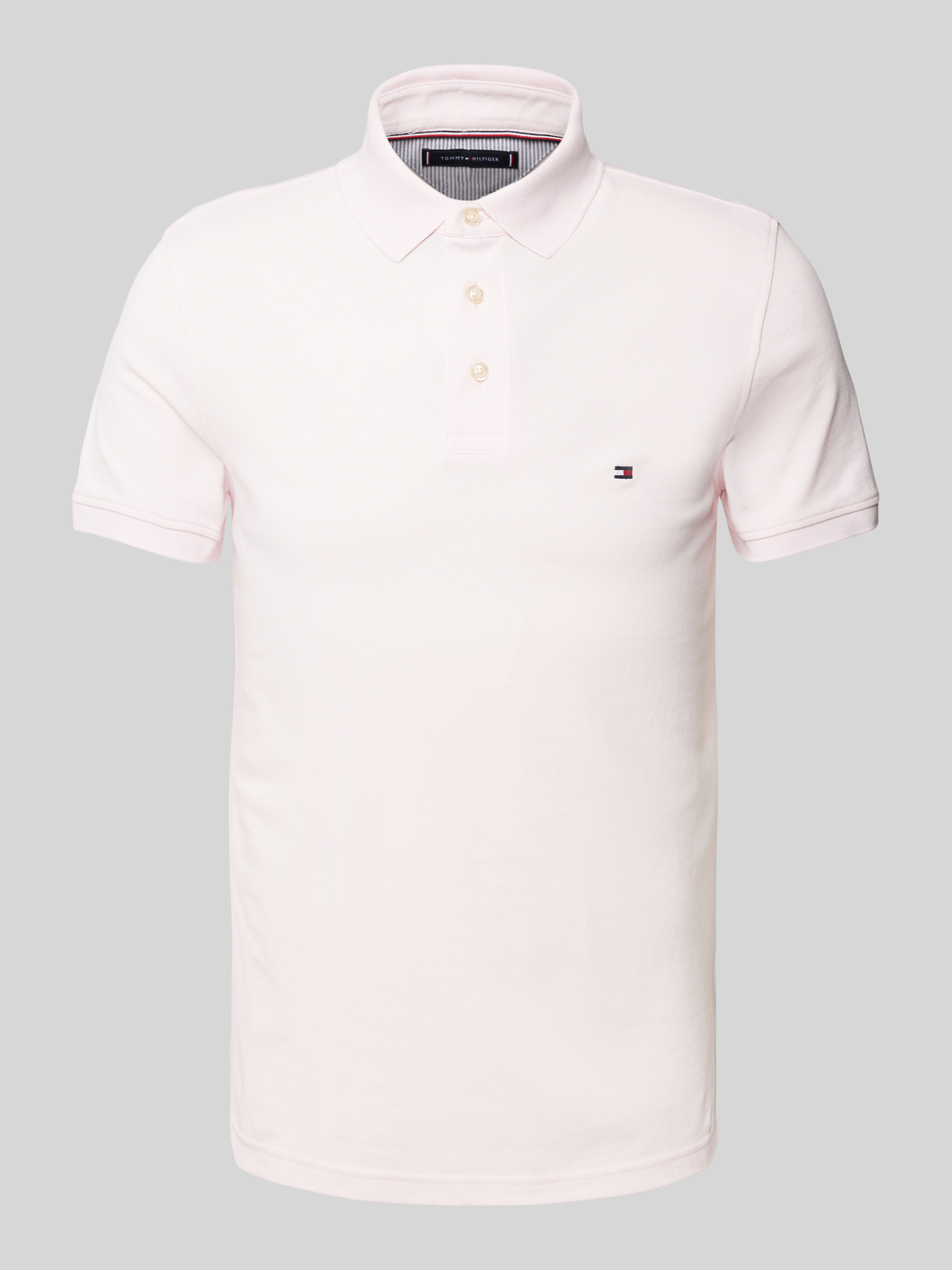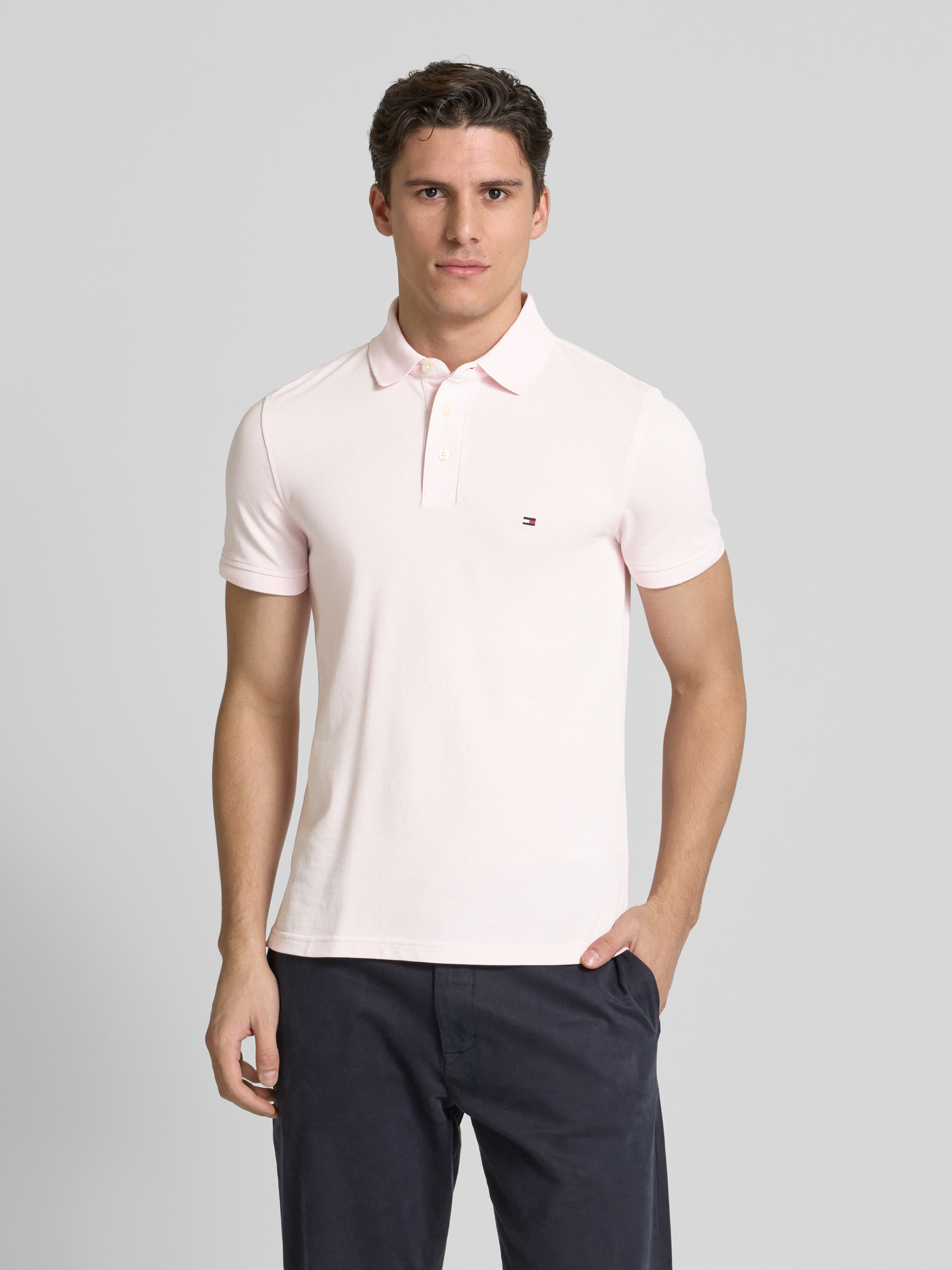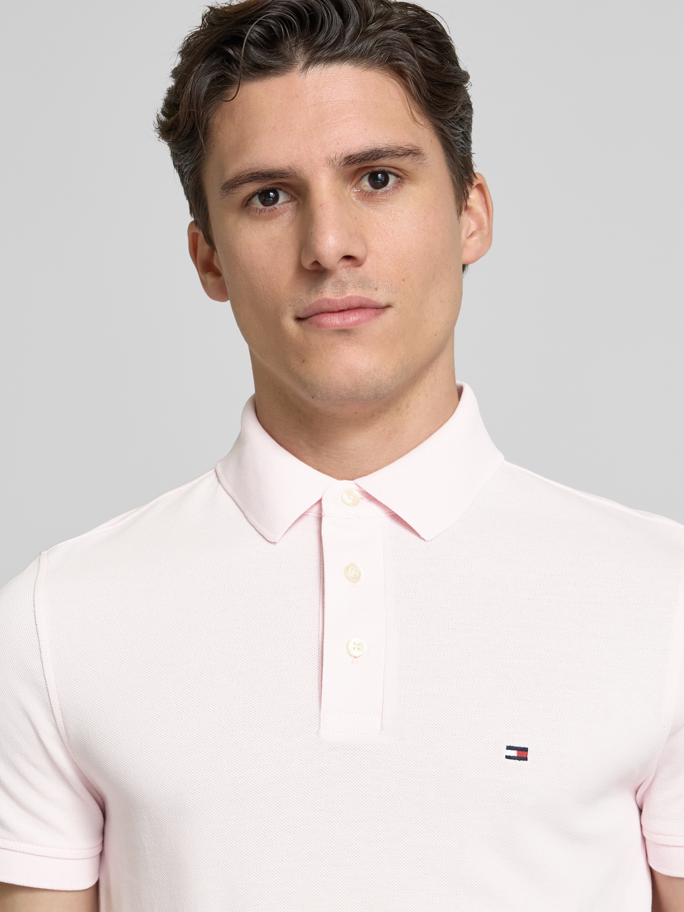 Slim fit poloshirt met logostitching, model '1985' in roze