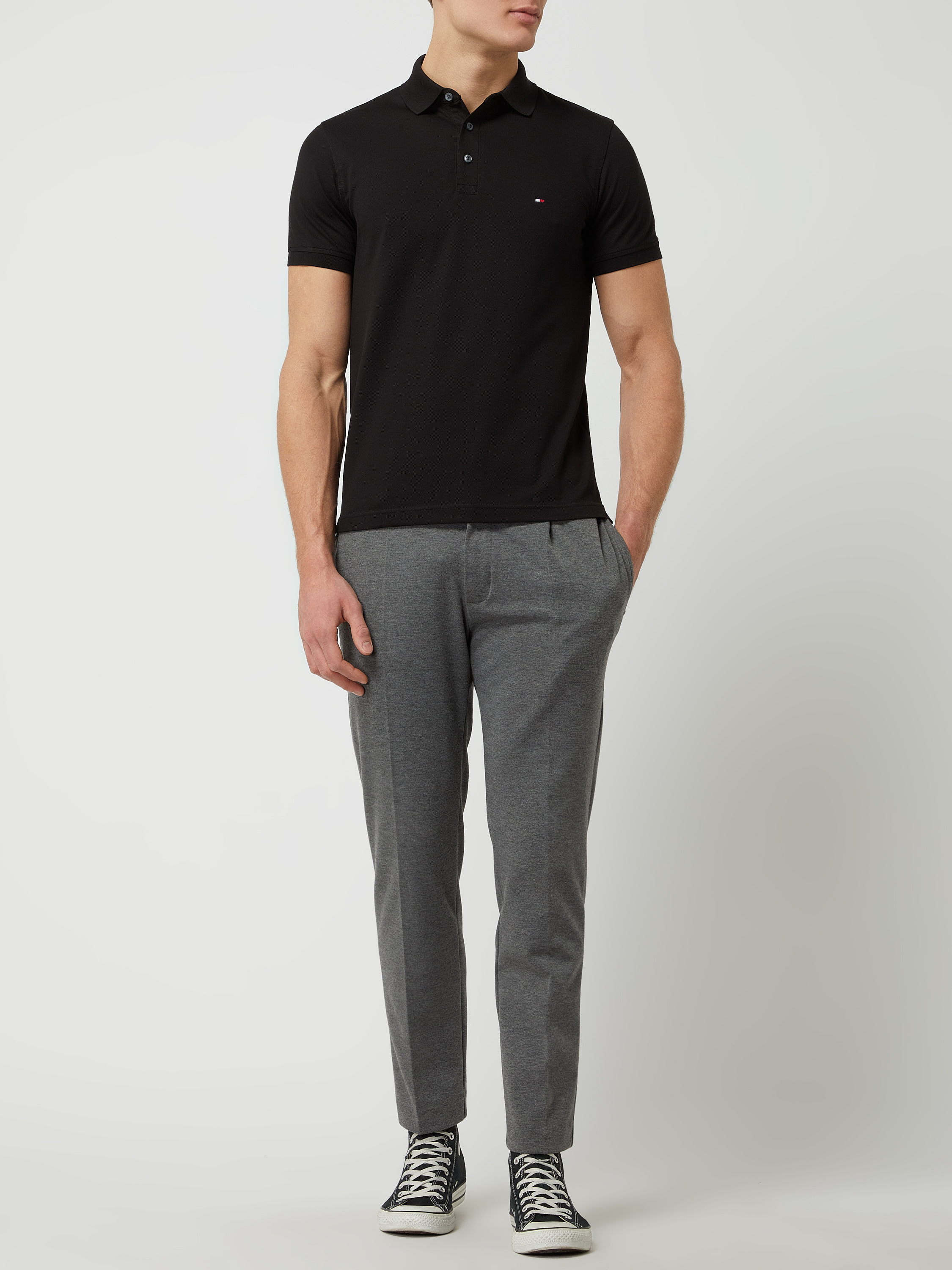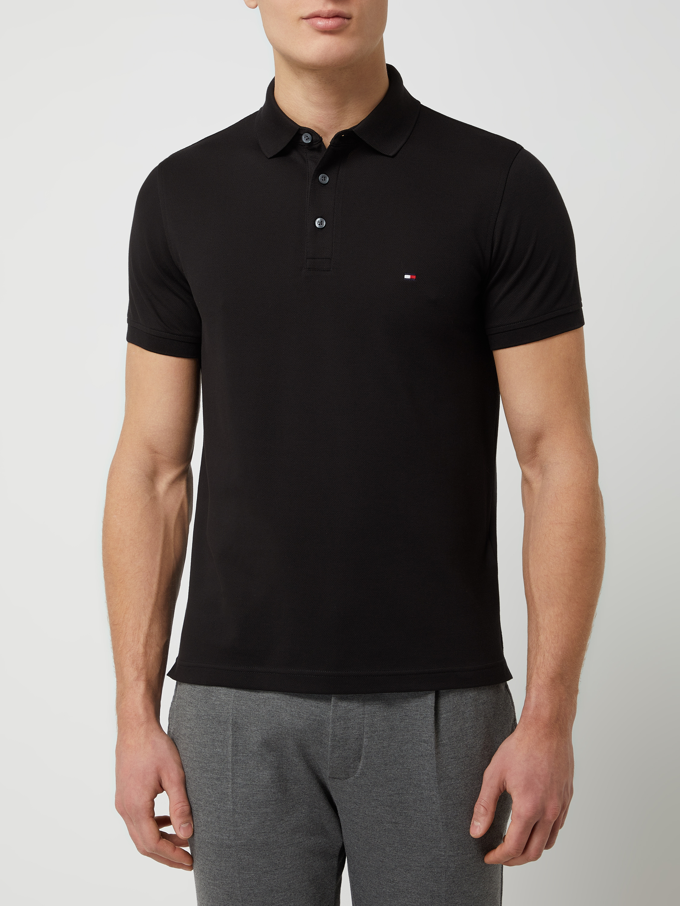 • Tommy Hilfiger Slim fit poloshirt met stretch  Zwart