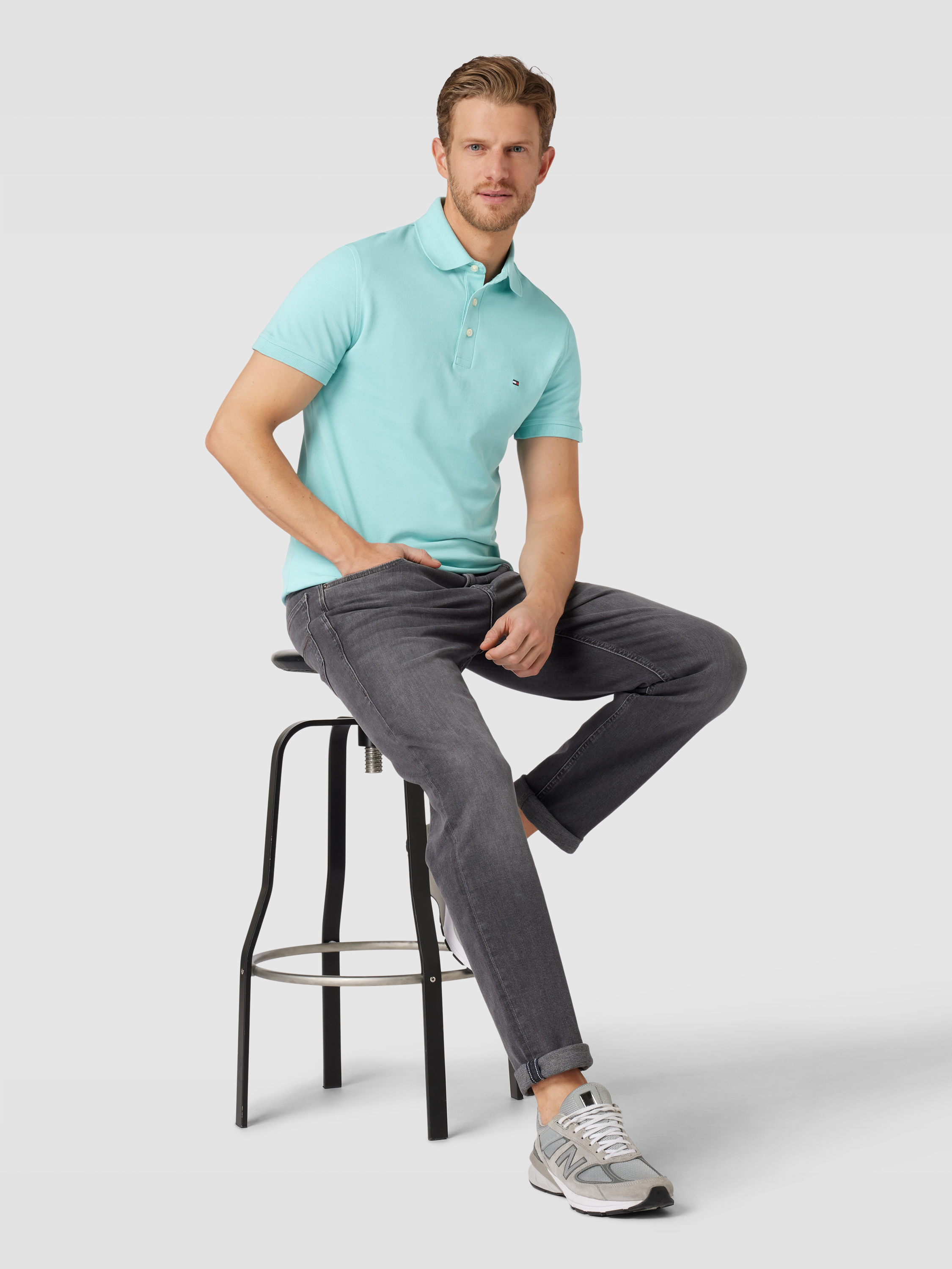 Slim fit poloshirt, model '1985' in lichtturquoise