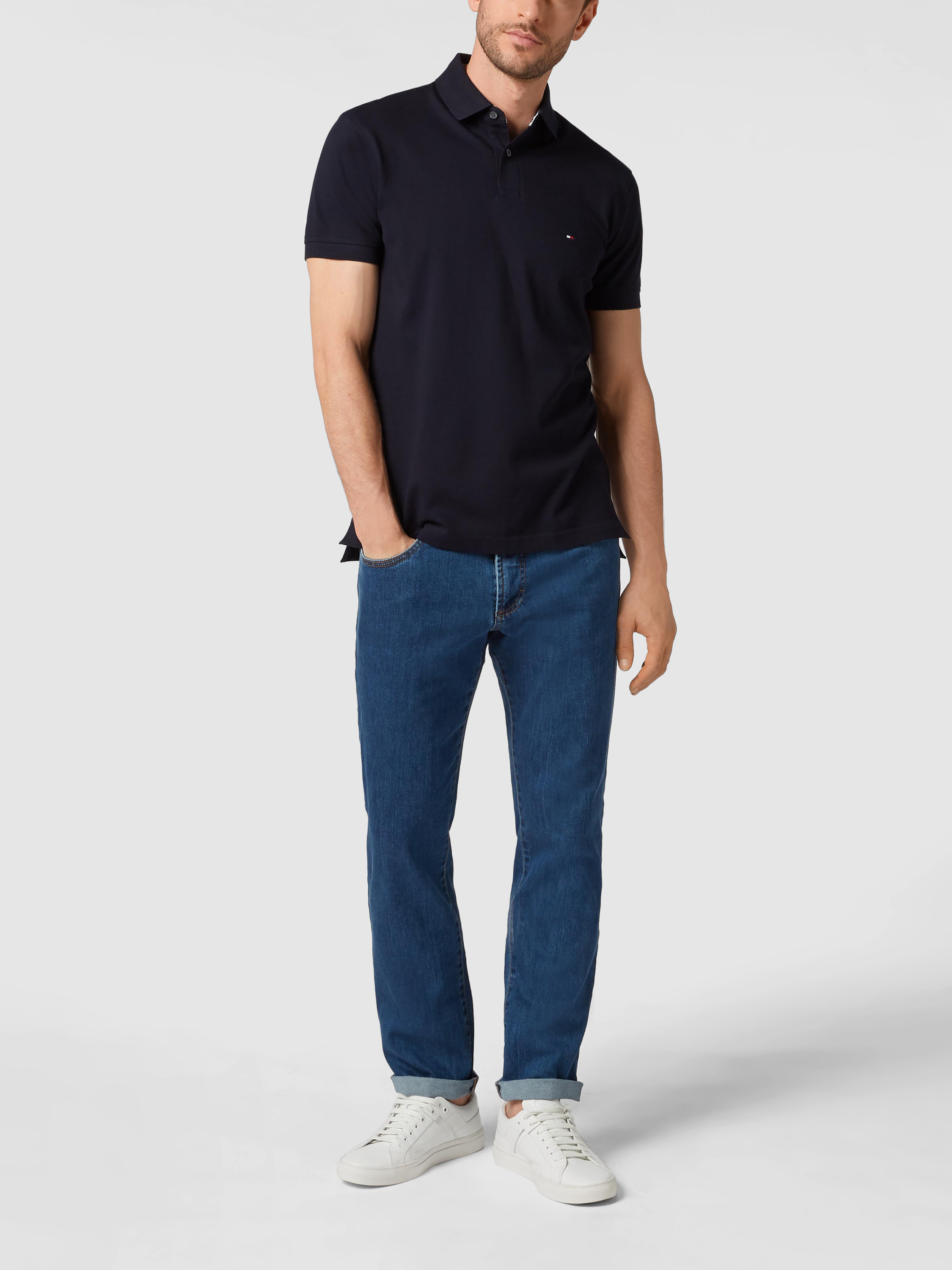 Tommy HilfigerSlim fit poloshirt van piqué in marineblauw