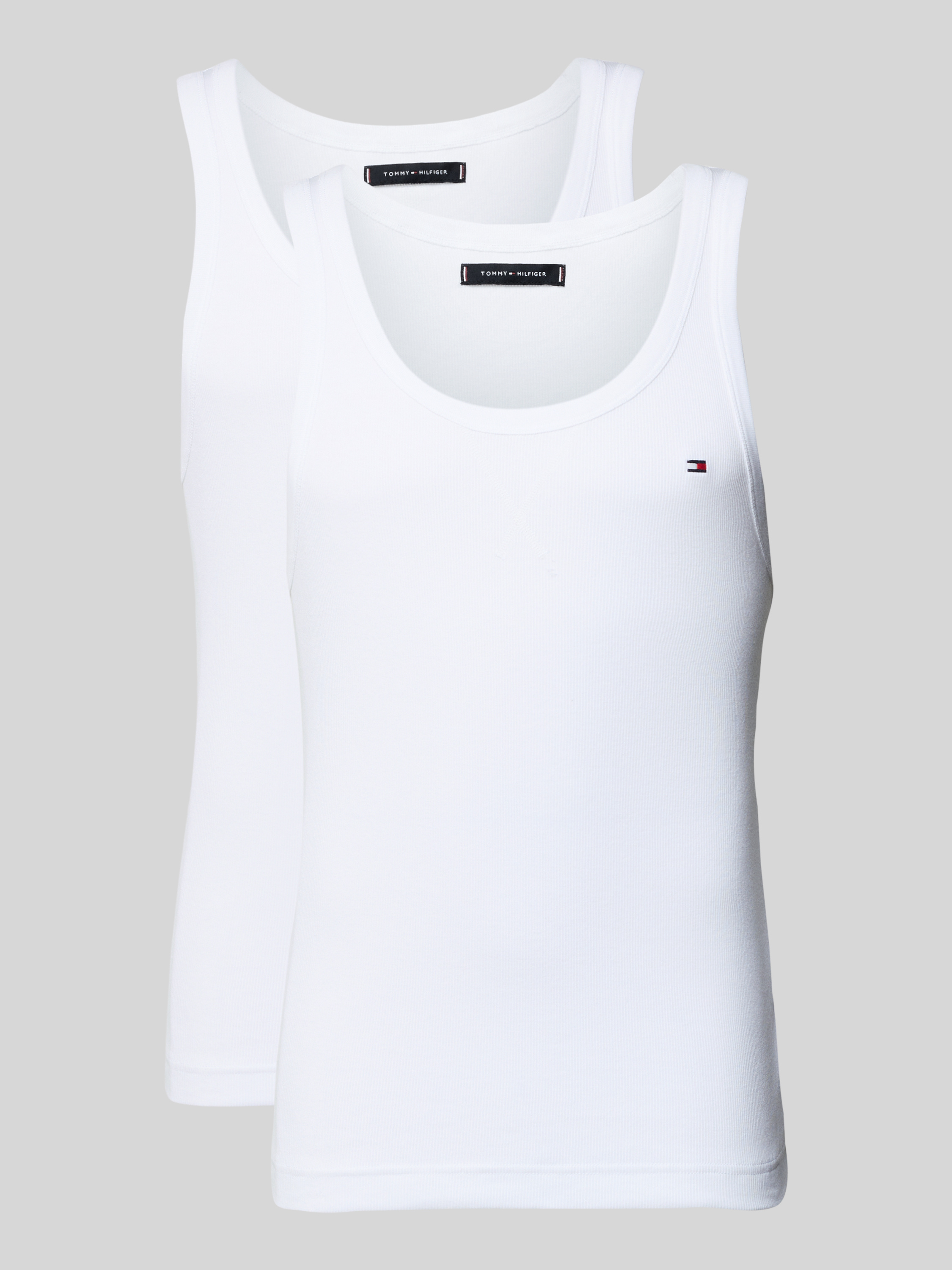Slim fit tanktop van katoenmix in een set van 2 stuks in wit