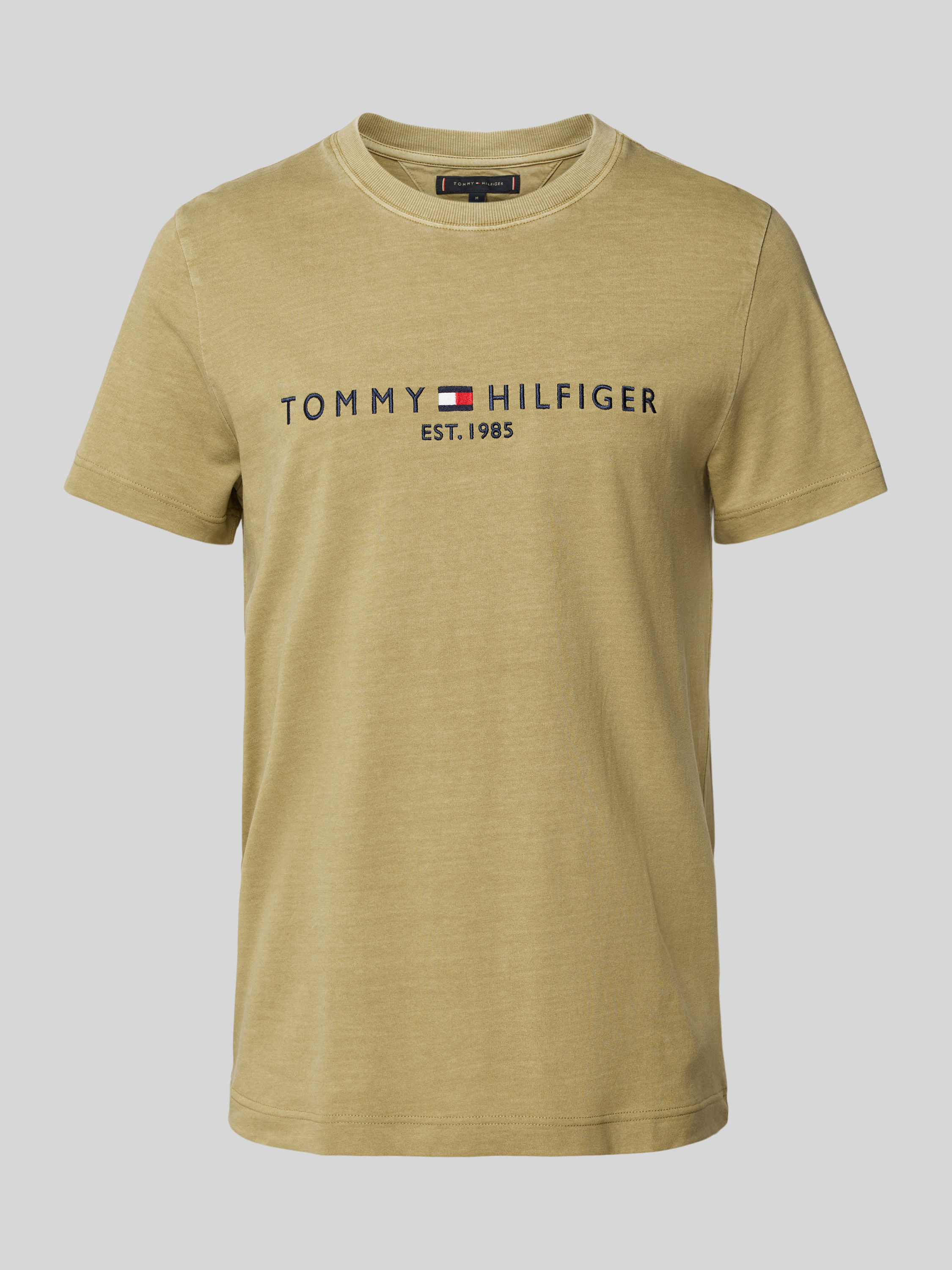T-shirt met labelstitching in olijfgroen